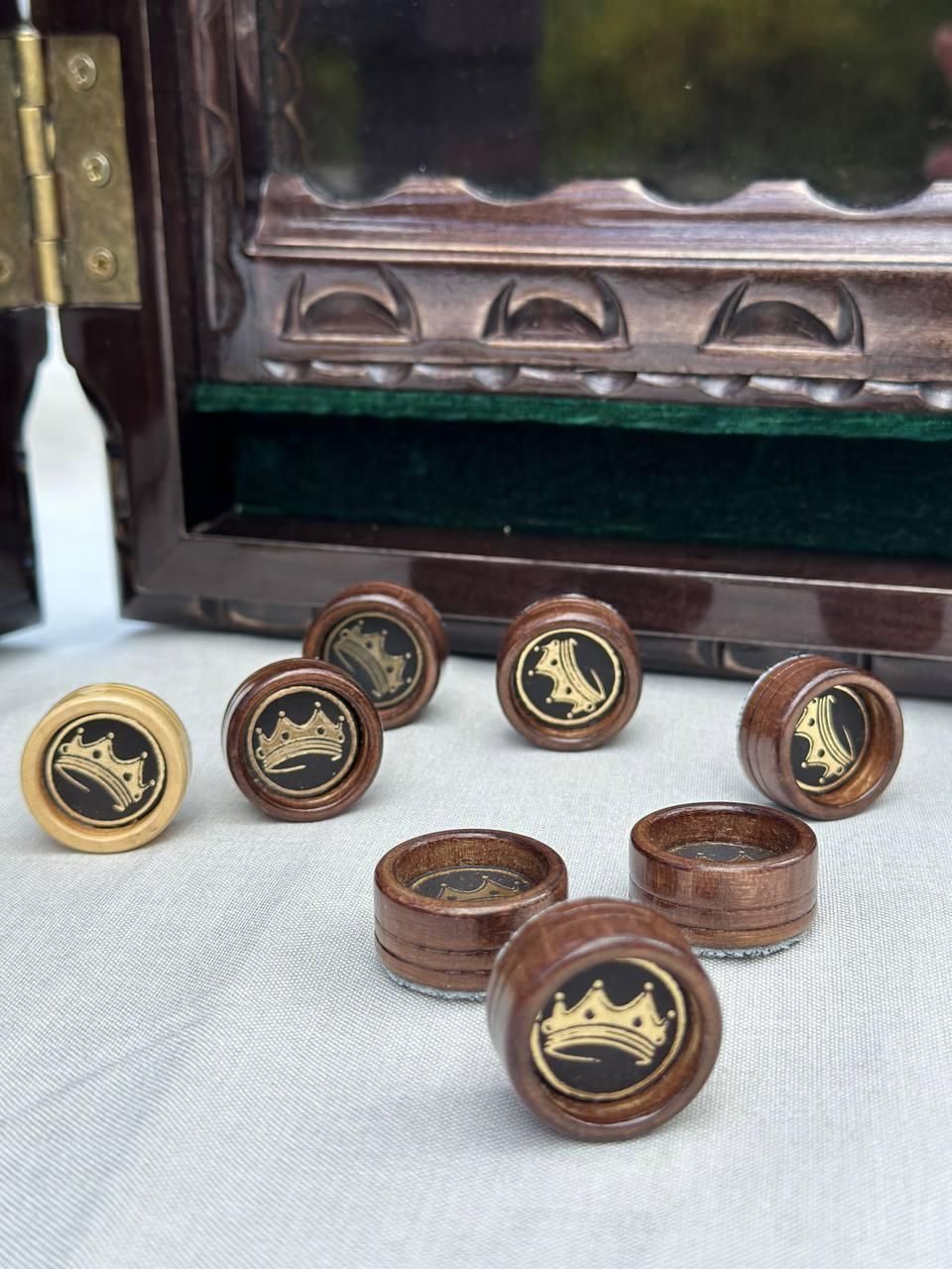 Фишки для игры нарды деревянные 26×12мм кожаная вставка