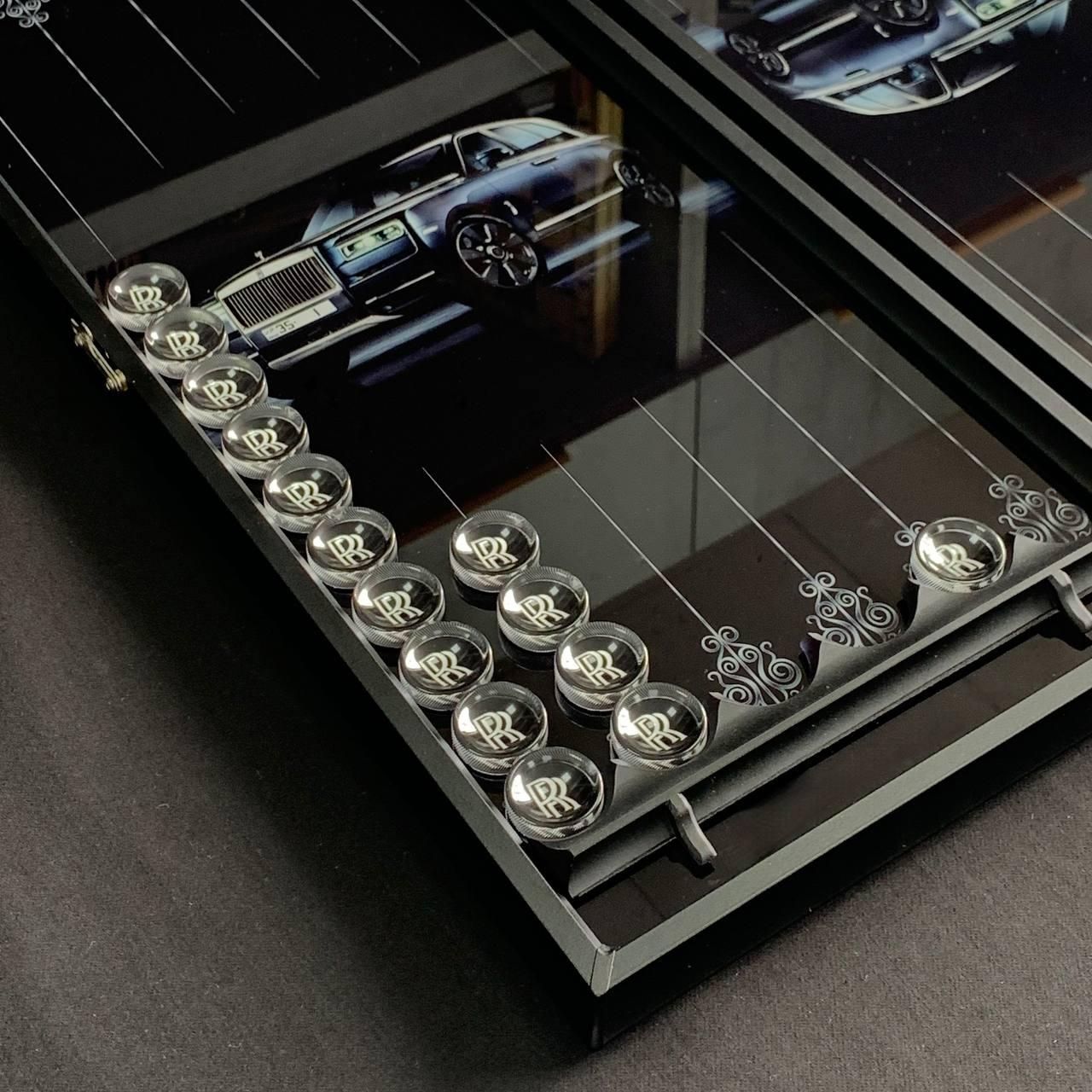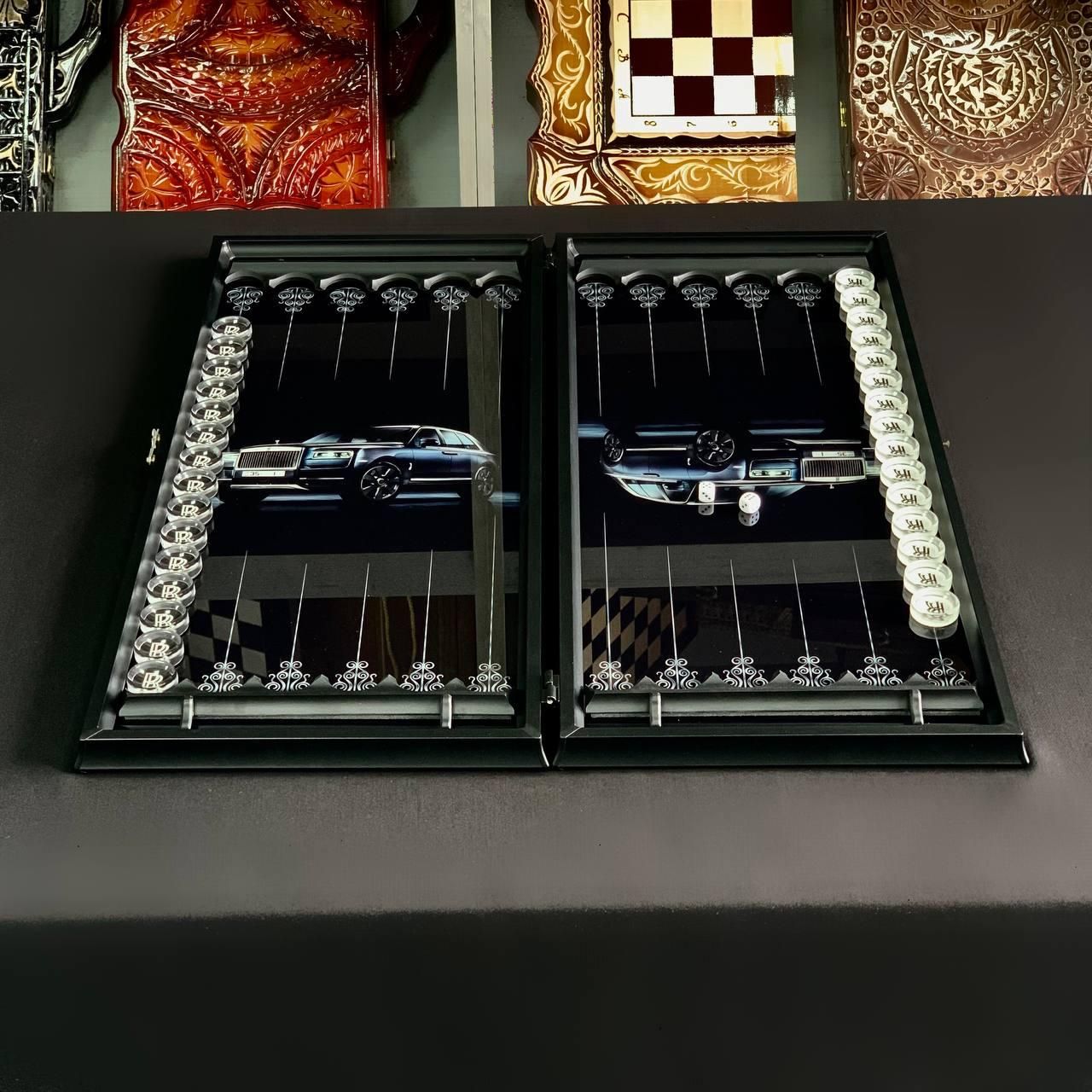 Нарды стеклянные в металлическом каркасе Rolls-Royce 61×27×5см