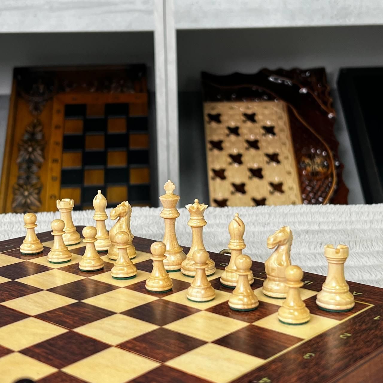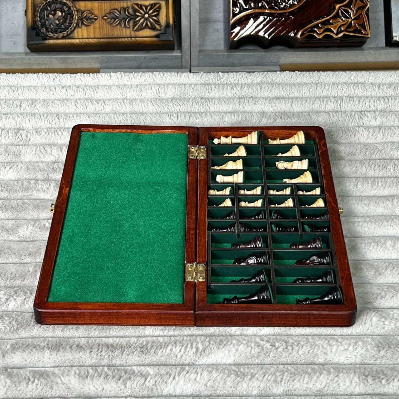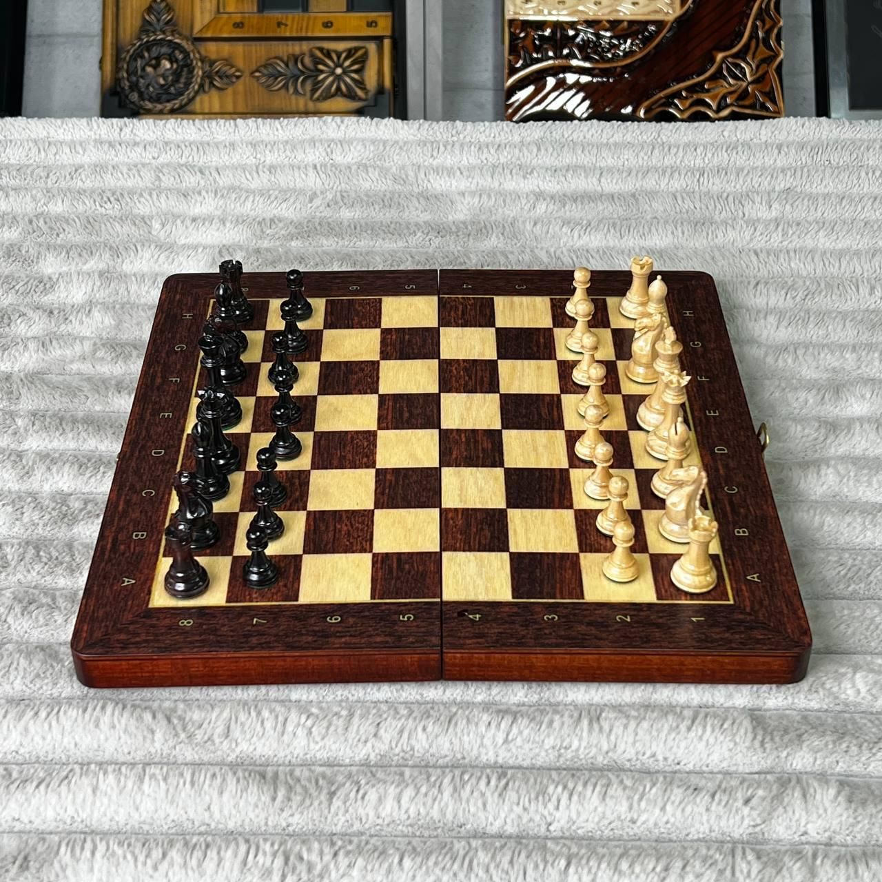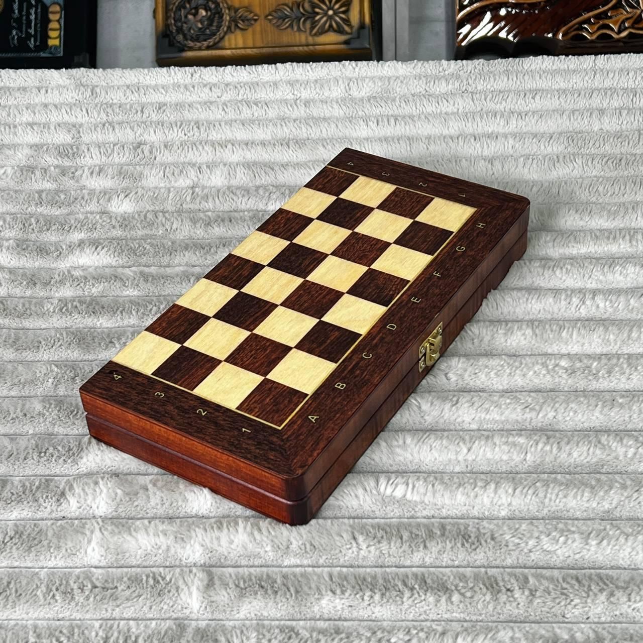 Шахматы деревянные магнитные 30×15 см • Портативные настольные шахматы с ложементом и фигурами из дерева Подробное описание Деревянные магнитные шахматы размером 30×15 см — это компактный и стильный набор для игры дома, в путешествии или в офисе. Благодаря встроенным магнитам фигуры надежно держатся на поле, что позволяет играть в дороге, не опасаясь их смещения. Шахматная доска изготовлена из натурального дерева, имеет аккуратную текстуру и классический дизайн. Внутри – удобный ложемент для каждой фигуры, гарантирующий порядок и сохранение набора. Деревянные фигуры оснащены магнитами: король имеет основу 2,2 см и высоту 5,5 см, пешку – основу 1,5 см и высоту 2,2 см. Это идеальный подарок для детей и взрослых, начинающих и любителей классических настольных игр. Особенности шахмат Магнитные фигуры – удобная игра в дороге или на нестабильной поверхности. Натуральное дерево: экологично, долговечно, приятно на ощупь. Ложемент внутри – каждая фигура имеет свое место. Компактный формат 30х15 см, удобно брать с собой. Надежные магнитики, удерживающие фигуры даже при тряске. Качественный ручной монтаж и аккуратная резьба. Подходят в качестве подарка для детей, взрослых, коллег, друзей. Оптимальное соотношение цена/качество. Характеристики товара Тип игры: шахматы Материал доски: дерево Материал фигур: дерево с магнитами Размер в сложенном виде: 30×15 см Размер в разложенном виде: 30×30 см Фигуры: деревянные, магнитные Король: основа 2,2 см, высота 5,5 см Пешик: основа 1 для фигур Назначение: домашняя игра, обучение, подарок, путешествия Заказывайте деревянные магнитные шахматы уже сегодня! Получите качественный, стильный и удобный набор, который станет отличным подарком и принесет часы увлекательной игры. Выбирайте качество, комфорт и классику, никогда не выходящую из моды. Остались вопросы? Звоните нам. Наши менеджеры всегда на связи и готовы ответить на все интересующие вас вопросы Адрес: Украина г. Стрый, ул. Заньковецкой, дом. 2, второй этаж