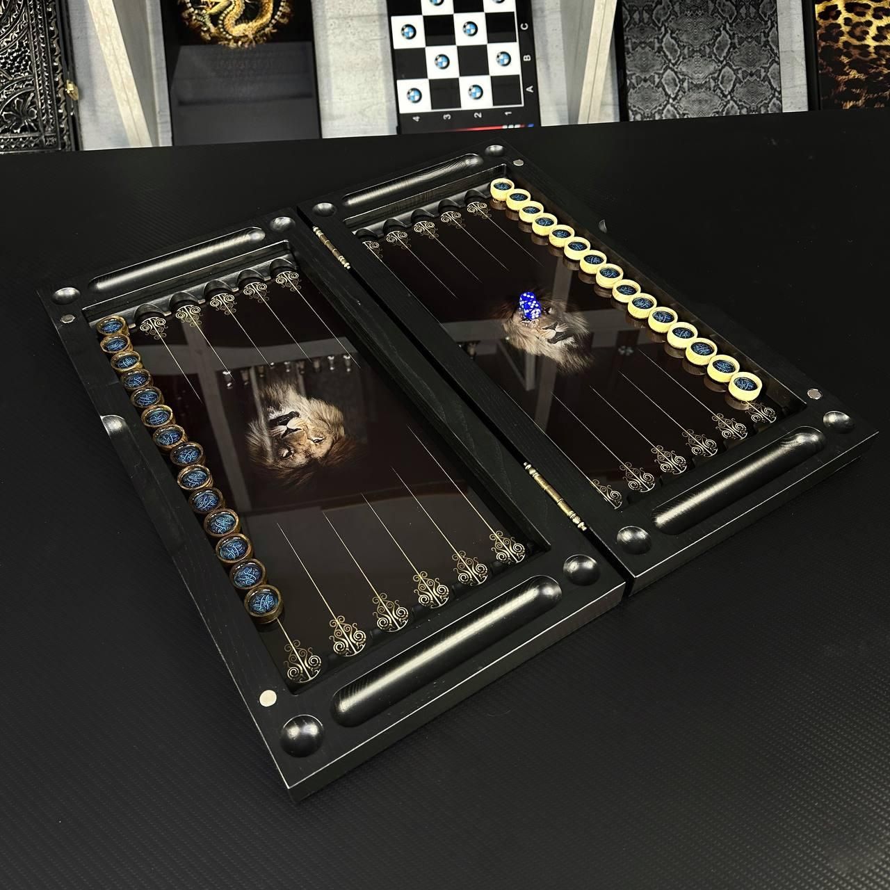 Стеклянные нарды с изображением льва – подарок премиум-класса Подробное описание: Стеклянные нарды с изображением льва – это стильная и практичная настольная игра, которая станет отличным подарком для ценителей интеллектуального досуга. Уникальный дизайн со львом создает атмосферу величества и роскоши. Эта модель идеально подходит для игры в длинные и короткие нарды. Каркас из натурального ясеня обеспечивает прочность, а игровое поле из стекла придает элегантность. Благодаря компактным размерам в сложенном виде (50x24x6 см) и весе 5,6 кг нарды удобно брать с собой или хранить дома. Уникальный дизайн. Изображение льва придает эстетику и изысканность. Качественные материалы. Игровое поле из стекла и каркас из ясеня гарантируют долговечность. Универсальность. Подходит для игры в длинные и короткие нарды. Компактность. Удобные размеры для хранения и транспортировки. Полная комплектация. В наборе: нарды, 30 фишек и 2 кубика. Эти нарды ручной работы – не только игра, но и стильный аксессуар, гармонично впишущийся в любой интерьер. Черный цвет в сочетании с многоцветными элементами подчеркивает современный вид изделия. Фишки диаметром 24 мм изготовлены из качественных материалов, а кубики размером 9 мм придают удобство в игре. Благодаря крепким материалам и профессиональному исполнению эти нарды прослужат вам долгие годы. Технические характеристики: Материал: Стекло, ясень Размер в сложенном виде: 50×24×6 см Цвет: Черный, мультиколор Вес: 5,6 кг Диаметр фишек: 24 мм Кубики: Пластик, 9 мм Комплектация: Нарды, 30 фишек (15 светлых, 15 темных и 15 темных) получите удовольствие от игры на стильном и качественном изделии! Это идеальный подарок, который поразит дизайном и практичностью. Заказывайте с доставкой по Украине – Киев, Харьков, Днепр, Одесса и другие города. Остались вопросы? Звоните нам. Наши менеджеры всегда на связи и готовы ответить на все интересующие вас вопросы Адрес: Украина г. Стрый, ул. Заньковецкой, дом. 2, второй этаж