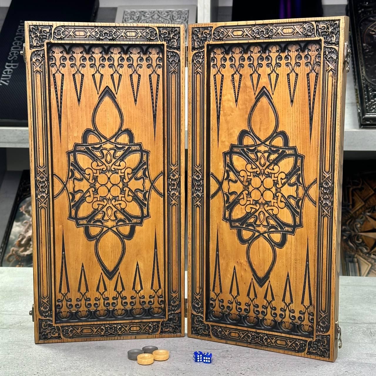 Нарды с резьбой по дереву – престижный подарок для ценителей Ищете уникальный подарок, который удивит? Элитные нарды из натурального ясеня – это утонченность, статус и игра, доставляющая удовольствие. Такой подарок обязательно оценят любители интеллектуальных игр и эксклюзивных вещей. Изящная резьба по дереву на внешней стороне и выжженное игровое поле внутри создают впечатление настоящего произведения искусства. Компактные размеры в сложенном виде (46x23x3 см) позволяют легко сохранять и переносить игру, а в разложенном виде (46x46x1,5 см) она становится идеальным полем для увлекательных партий. Эти нарды – отличный выбор для тех, кому дарить деньги уже банально. Выберите подарок, который вызовет восторг и станет приятным упоминанием на годы! Особенности товара ✔ Эксклюзивный дизайн – ручная резьба и обжиг ✔ Натуральное дерево – ясень премиум-класса ✔ Оптимальные размеры – удобно хранить и транспортировать ✔ Качественные фишки – изготовлены из прочной смолы ✔ Полная комплектация – все необходимое для игры Эта модель нард подходит для игры в усмотрение. Фишки диаметром 23 мм и кубики 12 мм обеспечивают комфортную игру. Роскошный коричнево-бежевый оттенок натурального дерева подчеркивает статус подарка. Вес 1,95 кг делает нарды надежными, но в то же время удобными для транспортировки. Технические характеристики Характеристика Описание Игра Нарды (длинные и короткие) Наружное оформление Резьба по дереву Внутреннее оформление Обжиг по дереву Материал Натуральный десны Размеры в сложенном виде 46×23×3 см Размеры в разложенном виде 46×46×1,5 см Размер игровой Вес 1,950 кг Фишки Смола, диаметр 23 мм Кубики 12 мм Комплектация Нарды (1 шт.), фишки (15 светлых + 15 темных), кубики (2 шт.) Купите сейчас! ???? Это не просто игра – это утонченный подарок, вызывающий восторг! ???? Заказывайте элитные нарды уже сейчас и получите качественный досуговый аксессуар! ???? Доставка по всей Украине – быстро и надежно! Не останавливайтесь на достигнутом представлены и , которые смогут удовлетворить любые ваши вкусы и предпочтения. : Это классическая игра, которая на протяжении веков развлекает людей всех возрастов : Интеллектуальная игра, которая бросит вызов вашему уму Аксессуары для настольных игр: , , и многое другое, что сделает ваши игры еще более комфортными и приятными. Посетите наш и найдите ту игру, которая станет вашим новым любимым досугом! Остались вопросы? Звоните нам. Наши менеджеры всегда на связи и готовы ответить на все интересующие вас вопросы Адрес: Украина г. Стрый, ул. Заньковецкой, дом. 2, второй этаж