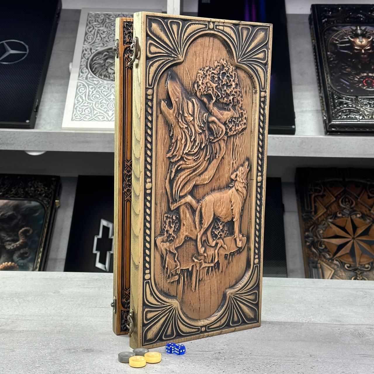 Деревянные нарды Волк 46×23см
