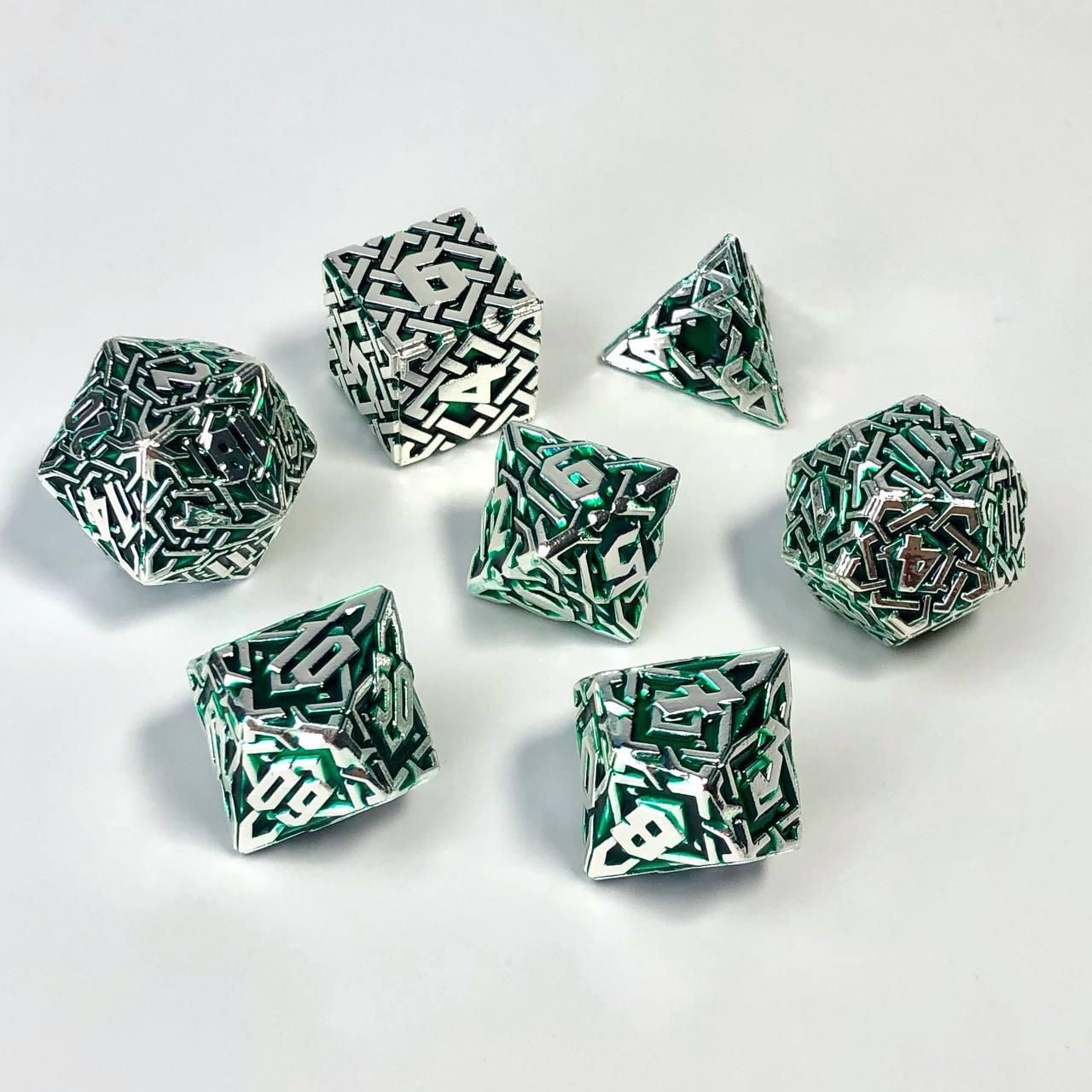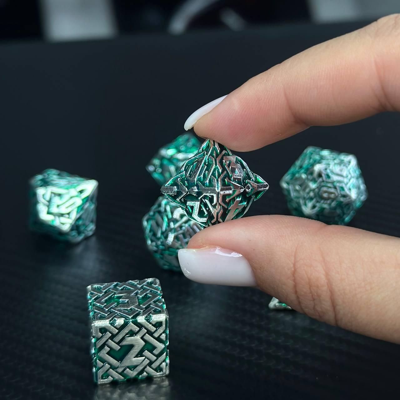Металлические кубики для ролевых игр D&D, бирюзовые (7 шт.)