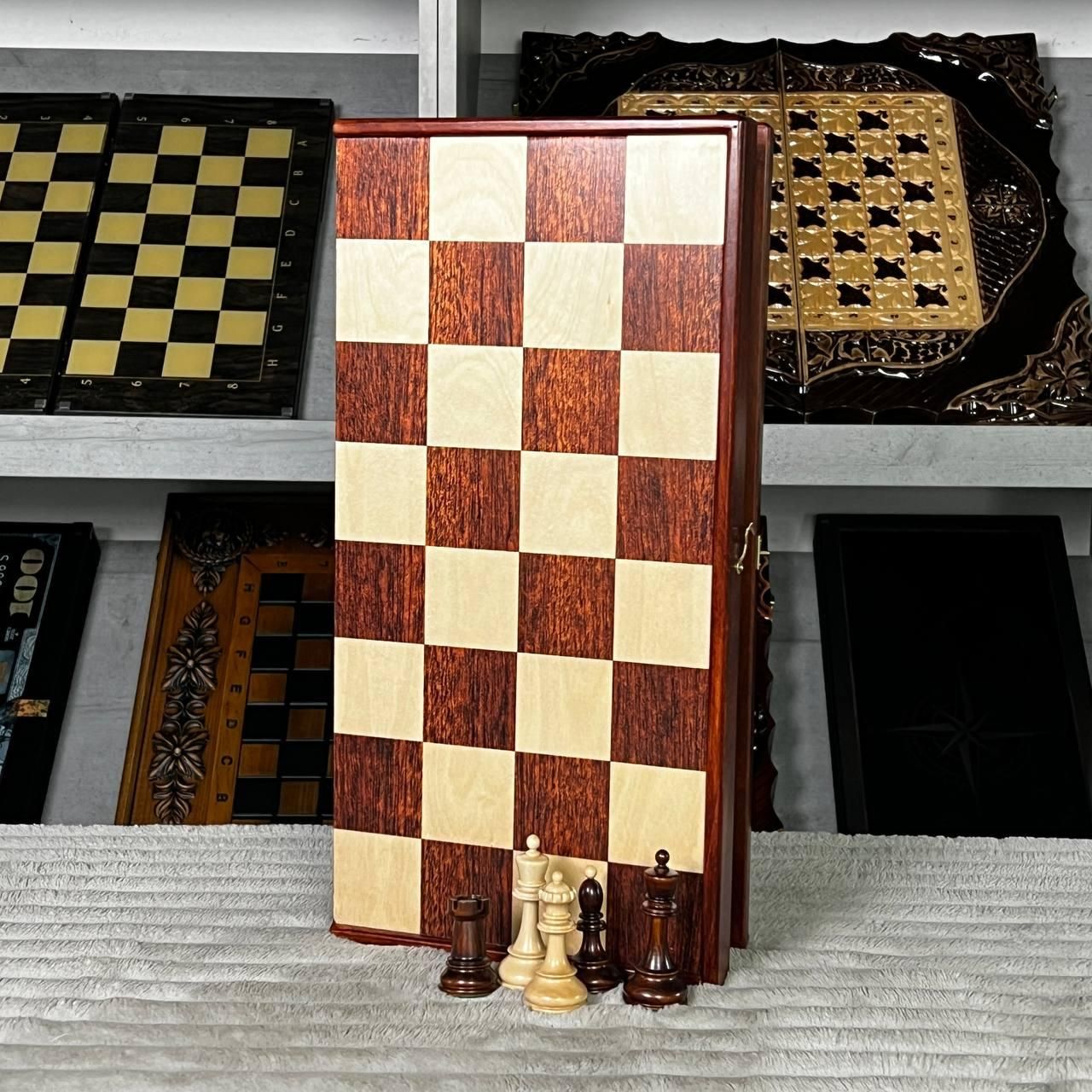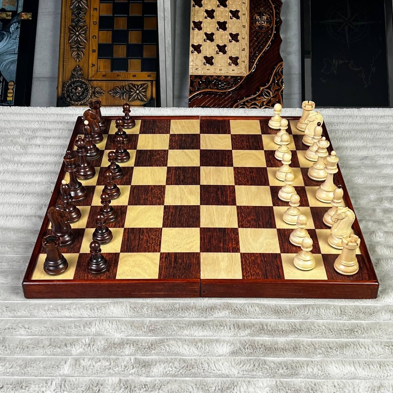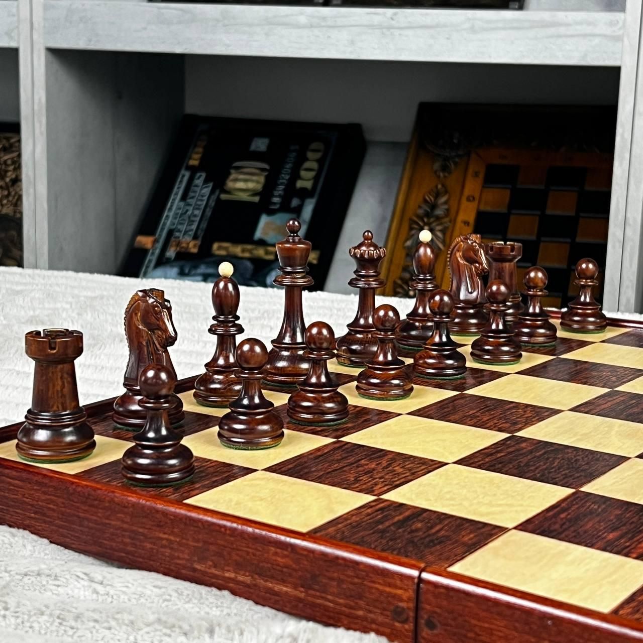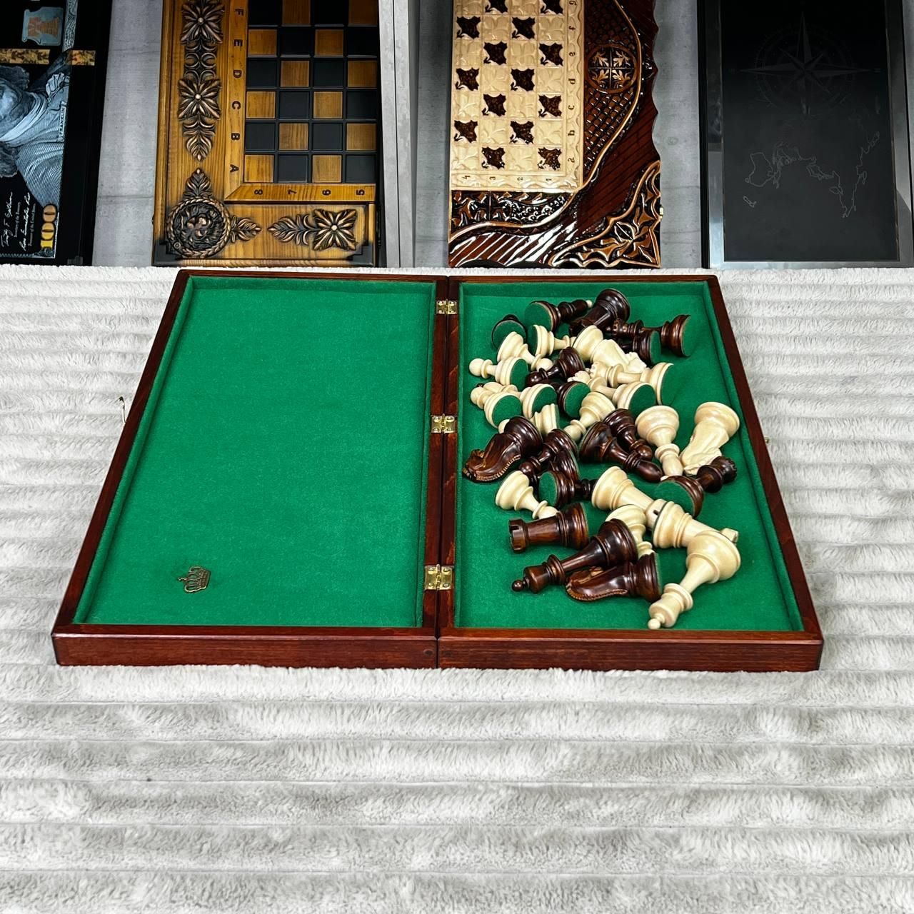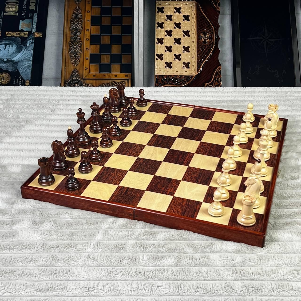 Подарочные шахматы премиум-класса с фигурами с обременителями | купить шахматы / шахматные фигуры Подробное описание товара Премиальные шахматы в стиле Дубровник — легендарный дизайн, появившийся в 1950-х годах и получивший мировое признание благодаря минималистичной форме, удобству и идеальной балансировке фигур. Именно такими шахматами увлекался Бобби Фишер, называя их лучшими, на которых он когда-либо играл. Эта модель сочетает классическую историю и современное исполнение: деревянные фигуры с металлическими обременителями обеспечивают стабильность при каждом ходу, а доска из высококачественного древесного композита премиум-сегмента (изысканнее, чем фанера) делает комплект долговечным и приятным на ощупь. Рисунок на доске нанесен УФ-печатью, что гарантирует четкость, насыщенность цветов и износостойкость. Шахматы соответствуют стандартам FIDE, потому подходят как для домашних партий, так и для турнирной игры. Это отличный подарок для ценителей интеллектуальных игр, коллекционеров, спортсменов и всех, кто ценит качество. Особенности шахмат Дубровник – легендарный исторический дизайн 1950-х годов; деревянные фигуры с металлическими обременителями - стойкие и сбалансированные; большая и удобная доска в формате 50х25 см; игровое поле 48×48 см с ячейкой 6×6 см – идеально для серьезных партий; премиальная текстура материала и тактильный комфорт; фигуры сбалансированы по высоте: король 9,5×4 см, пешка 5×3 см; изображение нанесено устойчивой УФ-печатью; стиль «Дубровник» – минимализм, элегантность и узнаваемость; шахматы турнирные, подарочные, подходят для клубов и дома. Технические характеристики Тип игры: шахматы / шахматные фигуры Стиль: Dubrovnik (Дубровник) Материал фигур: натуральное дерево с металлическими обременителями Материал доски: деревянный премиум-композит высокой плотности Размер доски в сложенном виде: 50×25 см Размер игрового поля: 48×48 см Размер клеток Пешок: 5×3 см Тип нанесения: УФ-печать Категория: шахматы турнирные / подарочные шахматы Соответствие стандартам: FIDE Почему стоит купить именно эти шахматы одна из самых известных моделей в мире; сочетание традиций и современной технологии; идеальные для подарка; оптимальный выбор для клубов, тренеров, новичков и профессионалов; долговечность и высокий уровень детализации. Заказывайте шахматы Дубровник прямо сейчас – получите качественный подарочный набор, подчеркивающий статус и доставляющий настоящее удовольствие от игры. Быстрая отправка по Украине. Остались вопросы? Звоните нам. Наши менеджеры всегда на связи и готовы ответить на все интересующие вас вопросы Адрес: Украина г. Стрый, ул. Заньковецкой, дом. 2, второй этаж