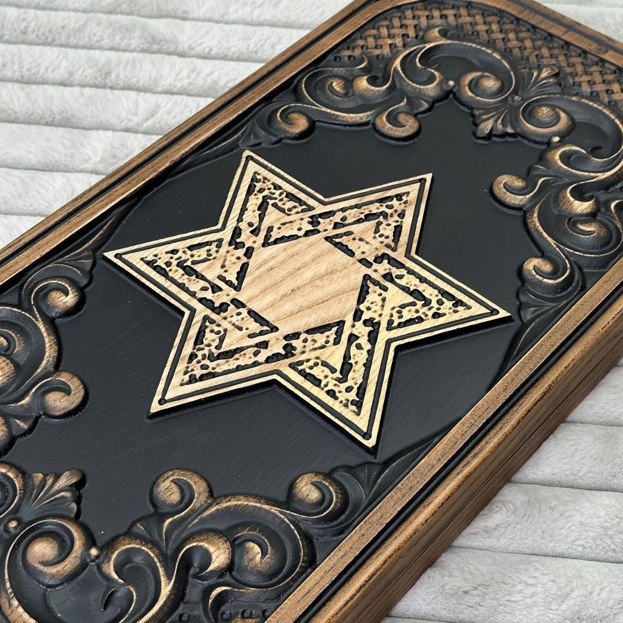 Нарды деревянные с изображением Звезды Давида – стильный подарок и настольная игра Ищете изысканный подарок или элегантную настольную игру для душевного отдыха дома или офиса? Деревянные нарды с изображением звезды Давида – это идеальное сочетание традиций, эстетики и игры. Изготовленные из натурального ясеня эти нарды поражают детализацией, глубоким содержанием и премиальным внешним видом. Гравировка как снаружи, так и внутри создает гармоничный и стильный образ, а качественные материалы гарантируют долговечность игры. Размер 48×23 см делает набор удобным для транспортировки и хранения. ???? Особенности и характеристики Изготовлены из натурального дерева (ясень) – прочные и долговечные Изображения Звезды Давида снаружи и внутри – символически и эстетически Универсальный формат – идеально подходят как подарок, настольная игра или элемент интерьера Размер доски: 48×23 см – компактные и удобные Фишки из эп и долговечные Кубики пластиковые, 10 мм – легкие и удобные в игре Ручная работа – каждое изделие уникально???? Подробное описание Этот набор нардов сочетает в себе глубокую символику, эстетический дизайн и комфорт игры. Изображение Звезды Давида придает изделию не только визуальную привлекательность, но и философскую глубину, делая его идеальным подарком на особое событие. Благодаря качественному исполнению и использованию натуральных материалов эти нарды станут украшением любого интерьера – от домашнего кабинета до стильного офиса. Это не просто игра – это атмосфера, создающая настроение. ✅ Покупайте сейчас – подарите стиль и содержание! Заказывайте деревянные нарды с изображением звезды Давида уже сегодня! Это отличный вариант для подарка, декора или интеллектуального досуга. На те "Купить", чтобы получить качество, стиль и удовольствие в одном наборе. ???? Доставка и оплата: Быстрая доставка по всей Украине Оплата при получении или онлайн Надежная упаковка гарантирует целостность товара Остались вопросы? Звоните нам. Наши менеджеры всегда на связи и готовы ответить на все интересующие вас вопросы Адрес: Украина г. Стрый, ул. Заньковецкой, дом. 2, второй этаж