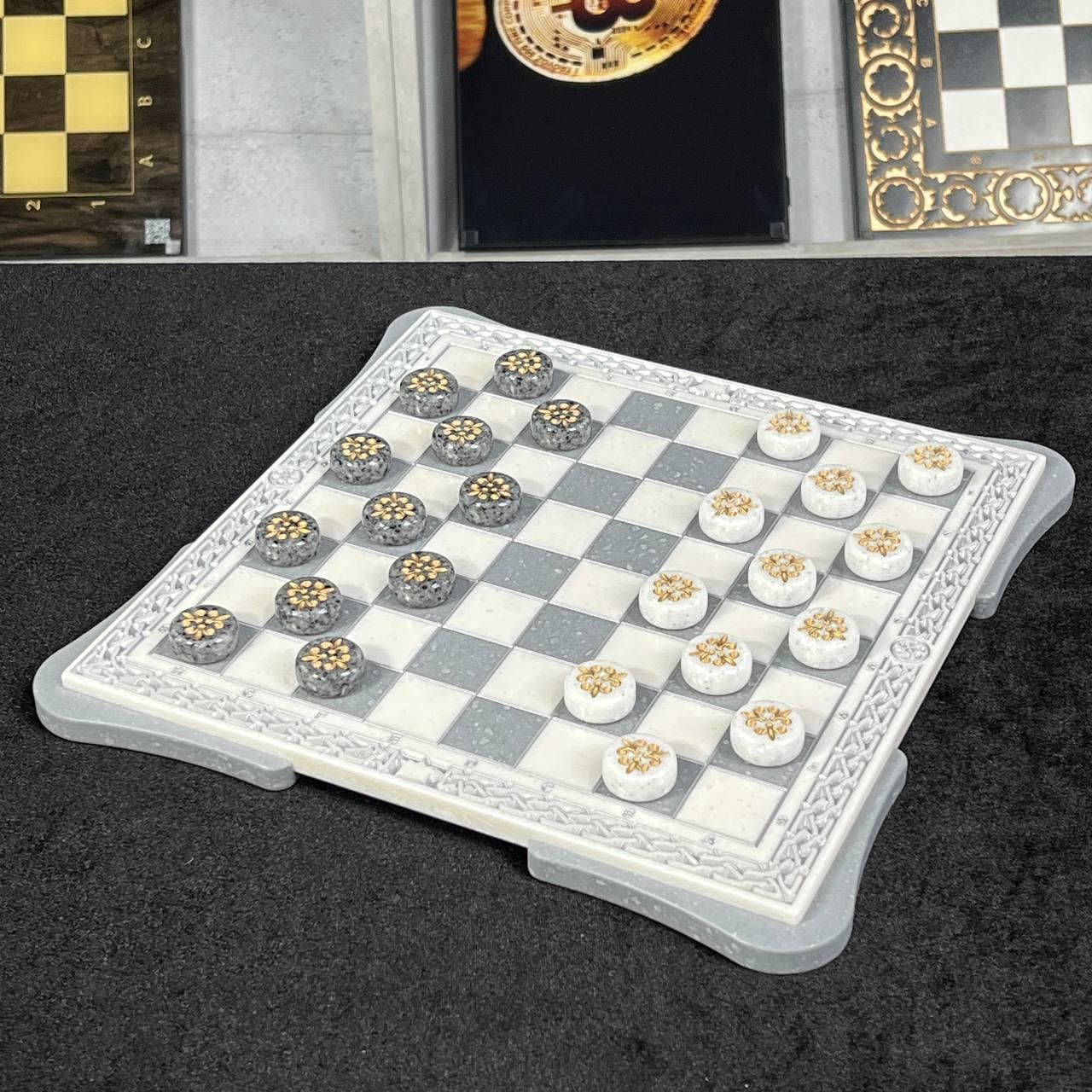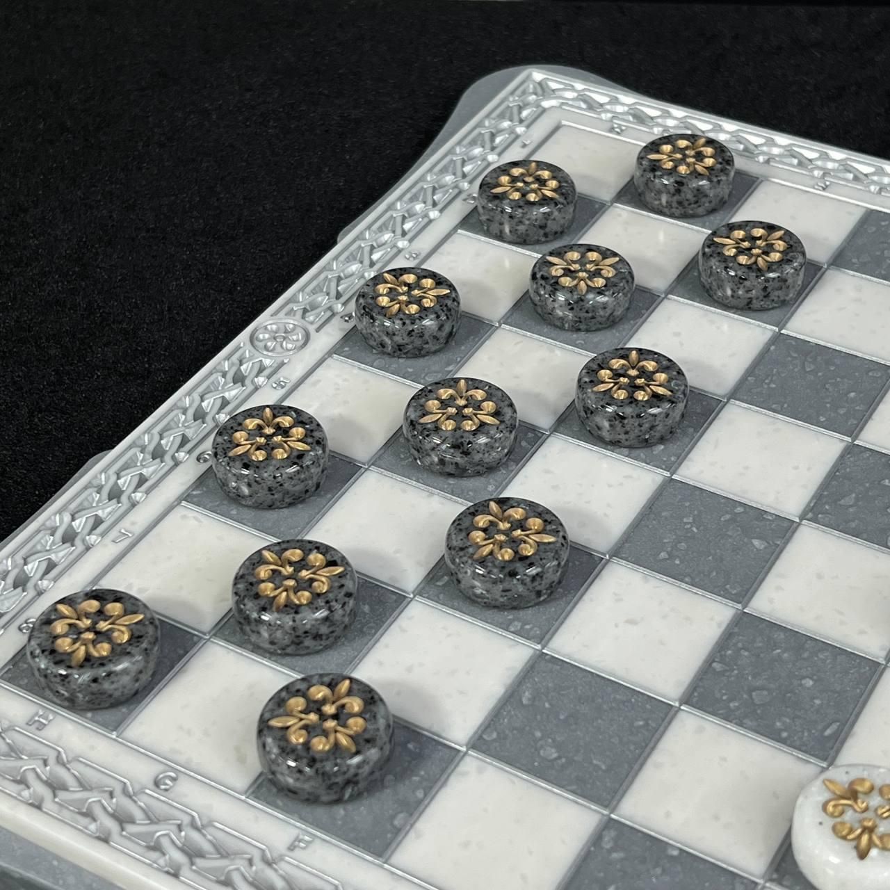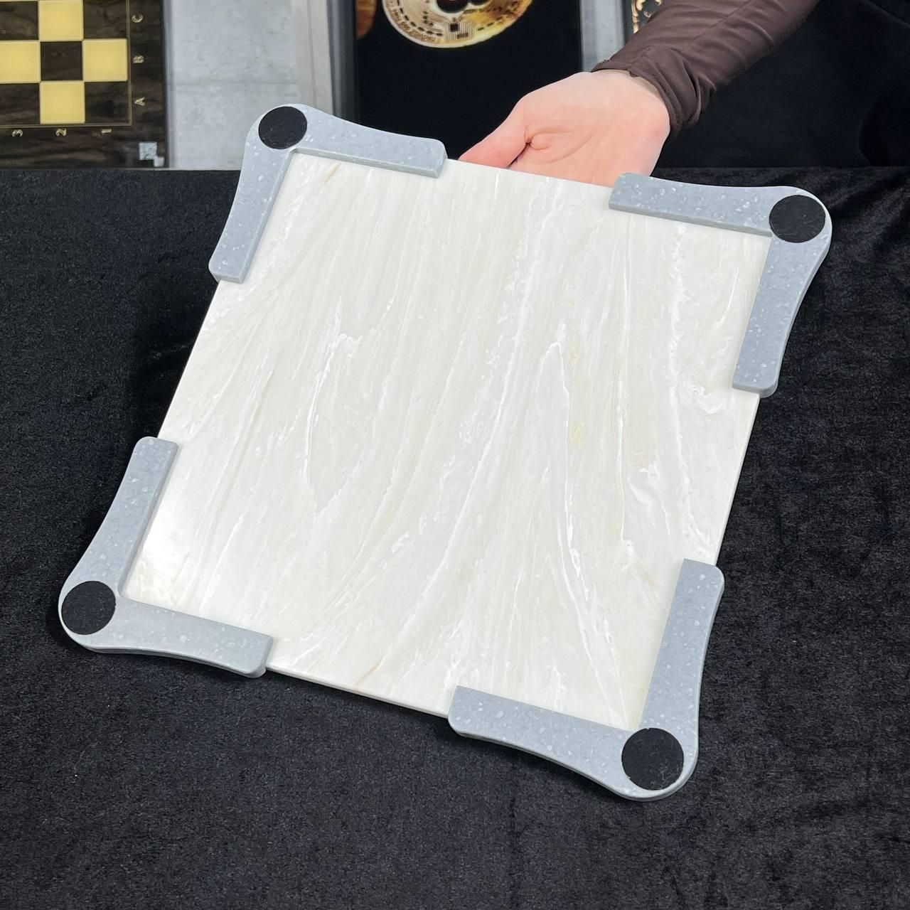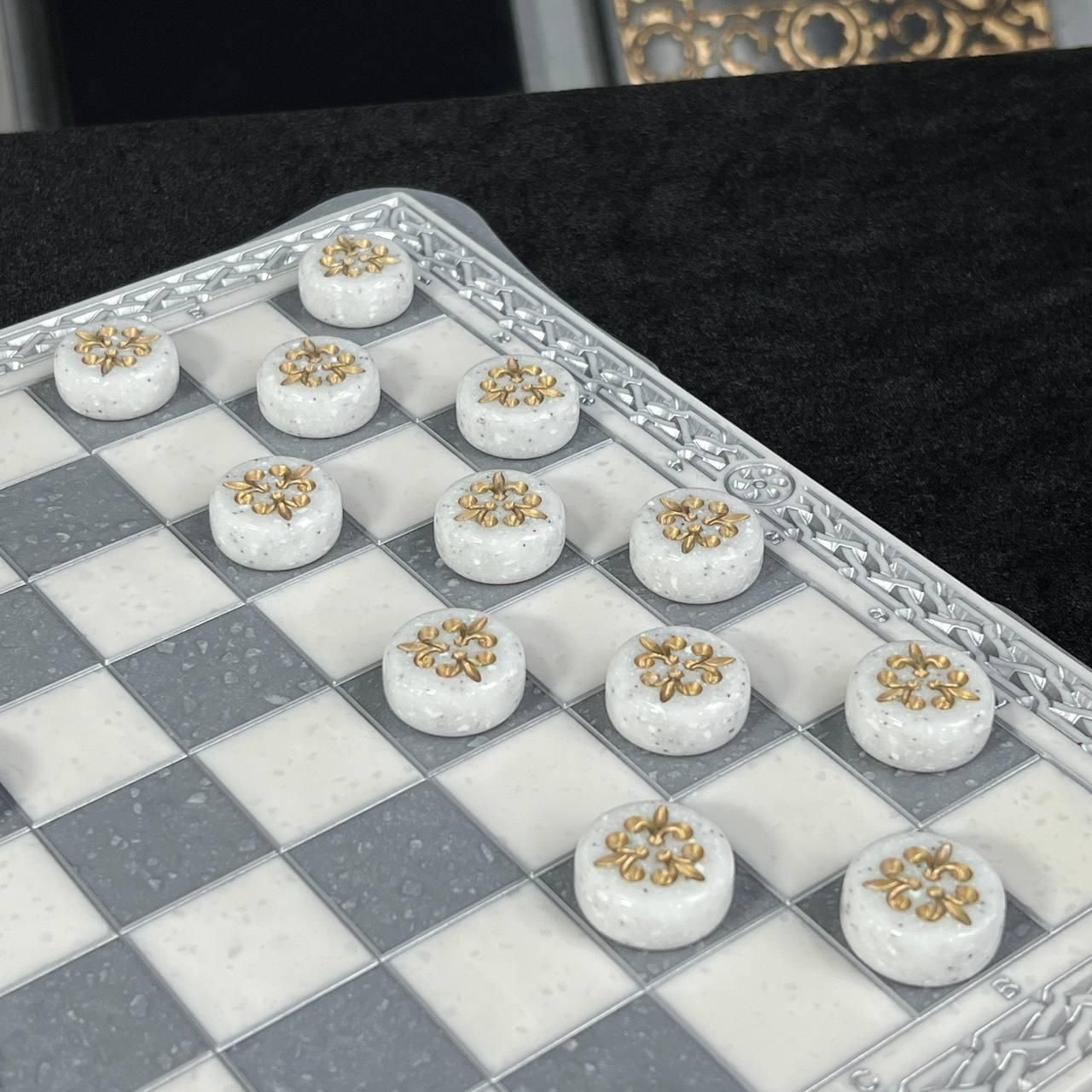 Шашки из камня с фактурой белого мрамора 30х30см