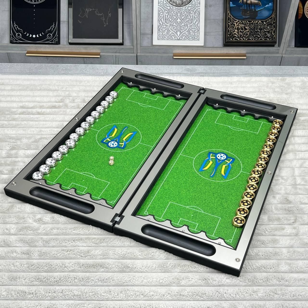 Премиальные нарды – больше, чем игра: часть интерьера, подарок с содержанием, символ статуса Эти нарды — изысканная настольная игра, сочетающая в себе функциональность, эстетику и глубокий смысл. Изготовленные из ясеня и украшенные нержавеющей сталью с покрытием из нитрида титана, они не только радуют глаз, но и дарят невероятные ощущения от игры. Внешняя часть декорирована классическим узором, а внутри – изображение Звезды Давида на закаленном стекле, что делает их идеальным выбором для подарка или коллекции. Фишки выполнены из латуни с прозрачным лаком, а кубики – из бильярдного шара. Изысканность в каждой детали! Особенности товара Каркас из массива ясеня — крепкая древесина с красивой текстурой Борты из металла с покрытием нитрид титана и алькантарой — премиальная эстетика и долговечность износа, приятные на ощупь Элитный дизайн со Звездой Давида — для ценителей символизма Универсальность игры — подходит как для длинных, так и коротких нард Изысканная отделка для эстетов Эта модель сочетает лучшие материалы современности с традиционными техниками обработки: дерево ясеня обеспечивает прочность и теплоту. Стеклянное игровое поле с художественной печатью отличается яркими цветами, стойкостью к царапинам и совершенным внешним видом. Алькантара на бортах придает мягкость и премиальное чувство во время игры. Технические характеристики Тип игры: длинные и короткие нарды Каркас: массив ясеня Наружное оформление: полированная, нержавеющая сталь с УФ-печатью Внутреннее оформление: каленое стекло с изображением Размеры в сложенном виде: 64×30×6 см Размеры в разложенном виде: 64× латунные, Ø 30 мм Кубики: из пластика, 9 мм Комплектация: нарды – 1 шт, фишки – 30 шт (15 светлых + 15 темных), кубики – 2 шт. Заказывайте нарды уже сейчас! Испытайте истинное удовольствие от игры и эстетики. Закажите элитные нарды уже сегодня – для себя, для подарка, статуса. Торопитесь, количество ограничено! Не останавливайтесь на достигнутом представлены и , которые смогут удовлетворить любые ваши вкусы и предпочтения. : Это классическая игра, которая на протяжении веков развлекает людей всех возрастов : Интеллектуальная игра, которая бросит вызов вашему уму Аксессуары для настольных игр: , , и многое другое, что сделает ваши игры еще более комфортными и приятными. Посетите наш и найдите ту игру, которая станет вашим новым любимым досугом! Остались вопросы? Звоните нам. Наши менеджеры всегда на связи и готовы ответить на все интересующие вас вопросы Адрес: Украина г. Стрый, ул. Заньковецкой, дом. 2, второй этаж