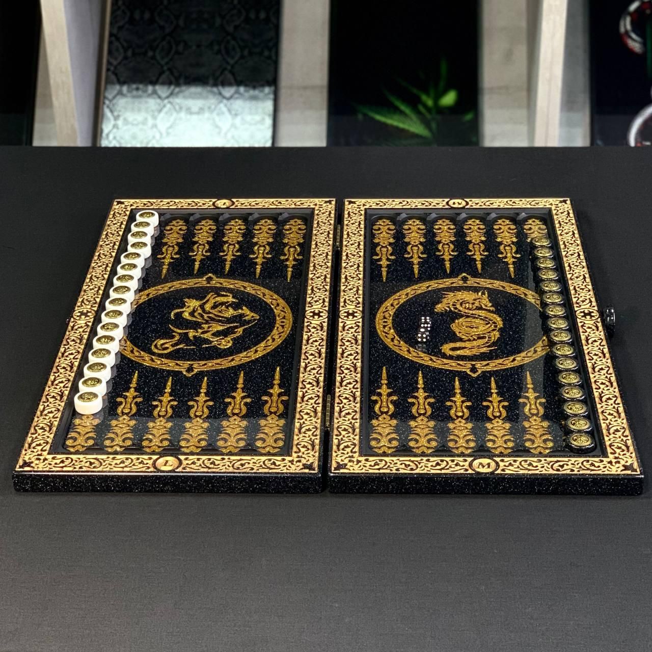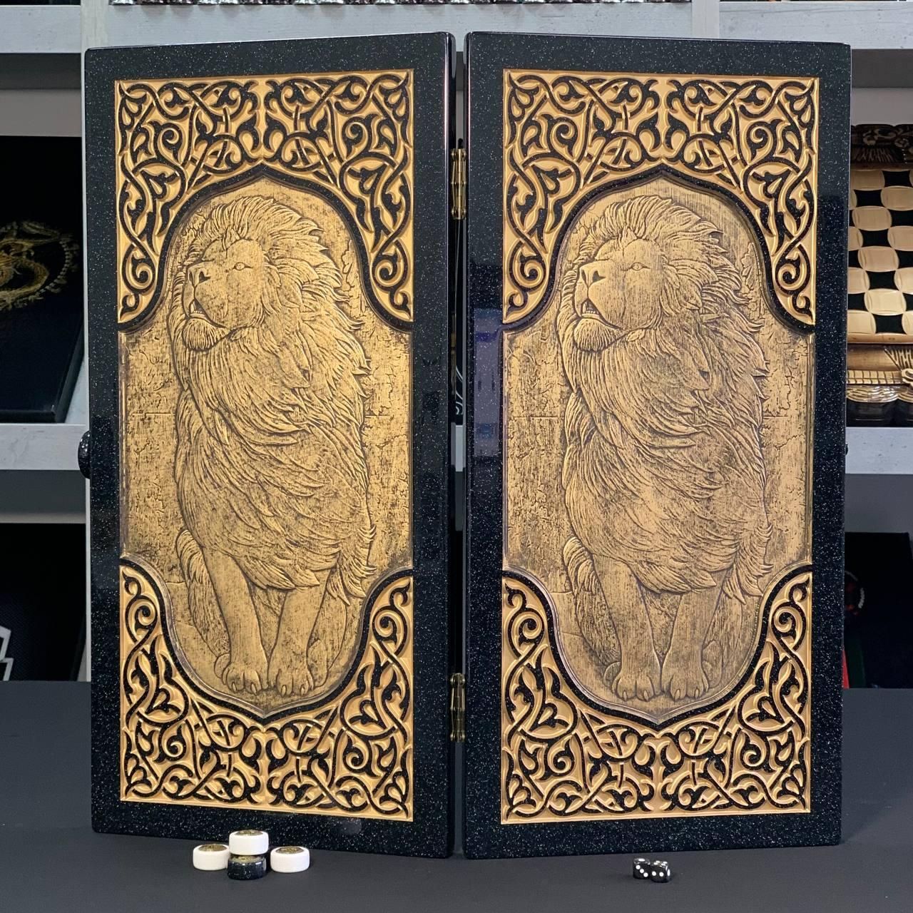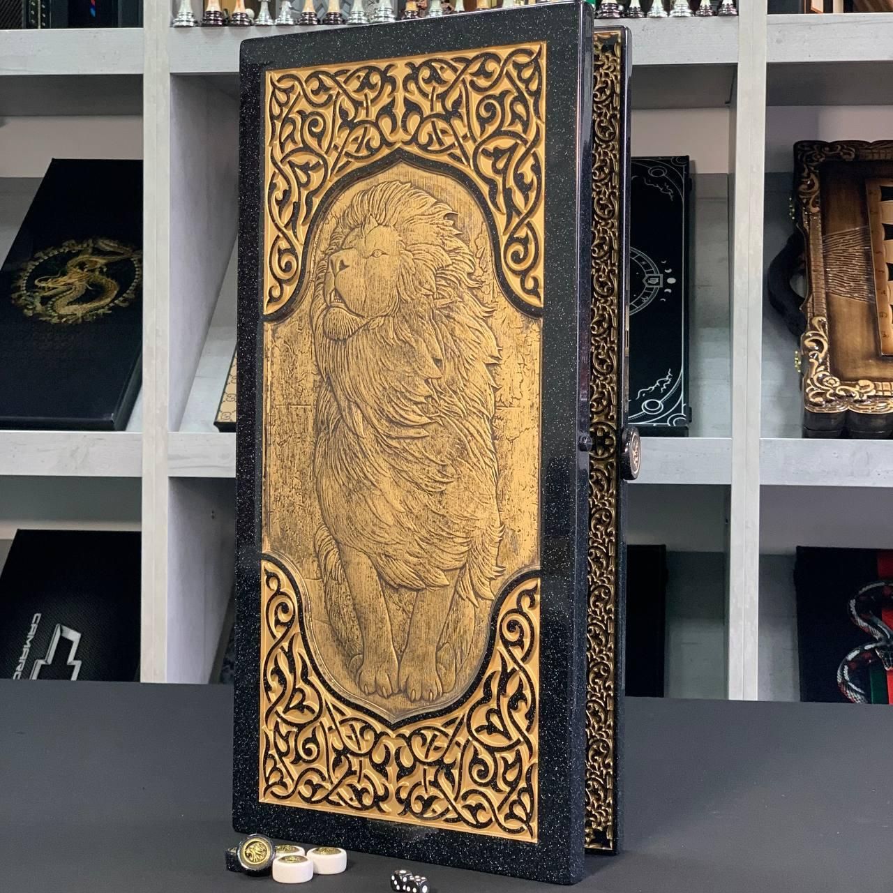 Нарды из черного акрилового камня "Лев": сила и величие в Ваших руках, 58×28×5 см, арт.190633 Шикарность, эксклюзивность, оригинальность, богатство – все эти слова характеризуют нарды из акрилового камня, оформленные ручной резьбой. Если Вы хотите показать свой оригинальный вкус, сделать лучший презент, подарить незабываемые эмоции, то это роскошные нарды, которые позволят получить самые острые ощущения играя партию. Игровое поле покрыто ювелирной смолой, а особый шар изделия придает серебряное наполнение, которое выполнено краской для атикварных изделий. Описание изделия: Игра – нарды (играть можно в длинные и в короткие нарды) Наружное оформление – резьба по акриловому камню, викинг. Внутреннее оформление – резьба по акриловому камню, геометрический орнамент. Размеры в сложенном виде - 58*28*5см Размеры в разложенном виде - 58*56*2,5см Материал - акриловый камень Размер игрового поля - 52*26см Цвет - черный Вес -8 кг Фишки - акриловый камень Диаметр фишек - 27мм Кубики/зары поставки: - нарды (1шт) - фишки (15шт светлых + 15шт темных) - кубики (2шт) Не сомневайтесь, что такие нарды – это беспроигрышный вариант подарка для бизнес-партнера, а так же для дорогого Вам человека. Не останавливайтесь на достигнутом представлены и , которые смогут удовлетворить любые ваши вкусы и предпочтения. : Это классическая игра, которая на протяжении веков развлекает людей всех возрастов : Интеллектуальная игра, которая бросит вызов вашему уму Аксессуары для настольных игр: , , и многое другое, что сделает ваши игры еще более комфортными и приятными. Посетите наш и найдите ту игру, которая станет вашим новым любимым досугом! Остались вопросы? Звоните нам. Наши менеджеры всегда на связи и готовы ответить на все интересующие вас вопросы Адрес: Украина г. Стрый, ул. Заньковецкой, дом. 2, второй этаж