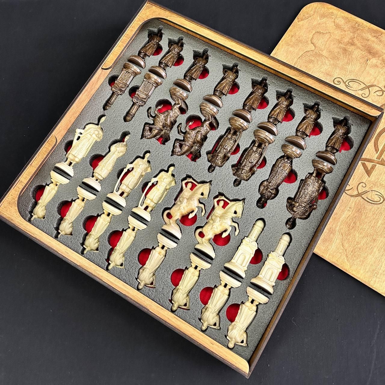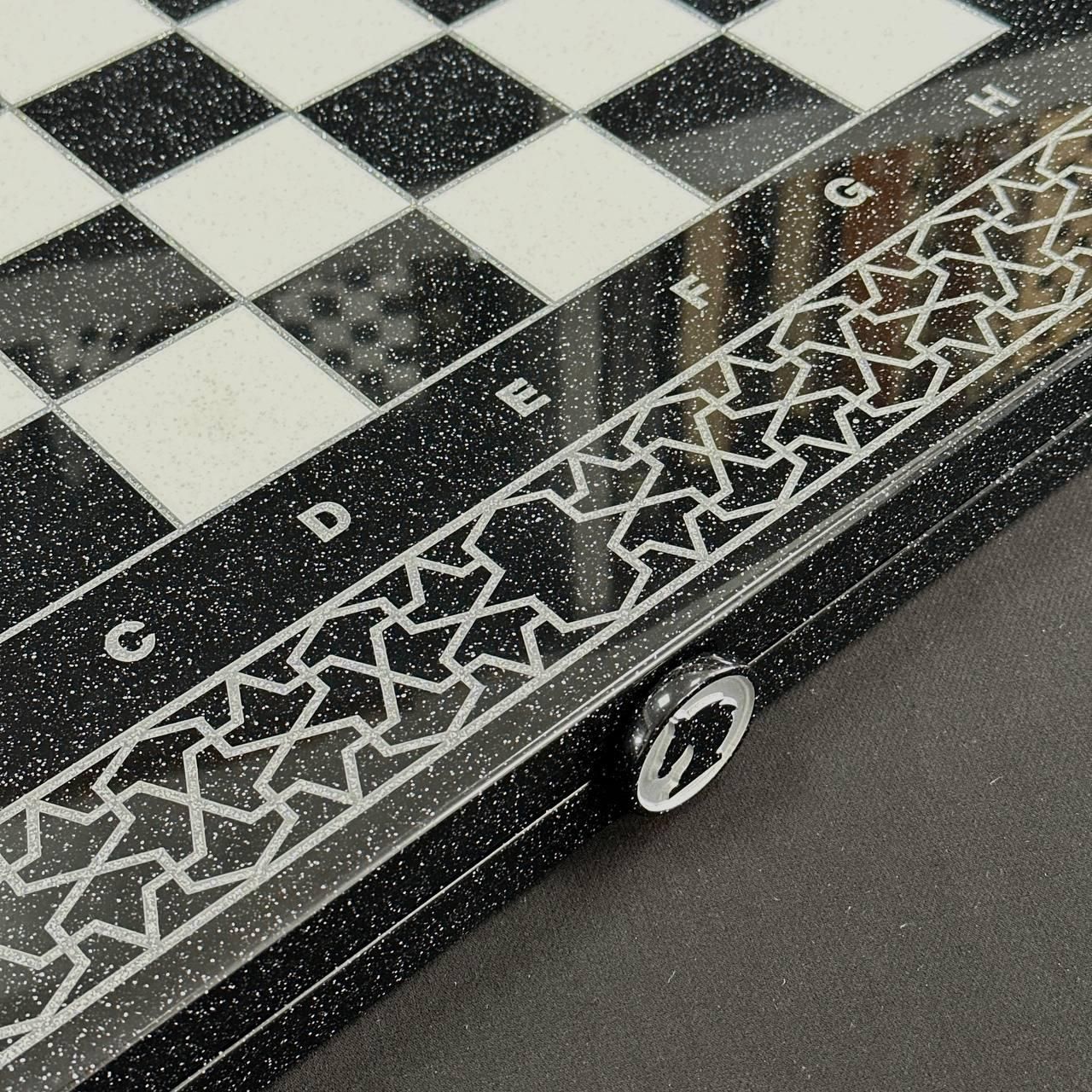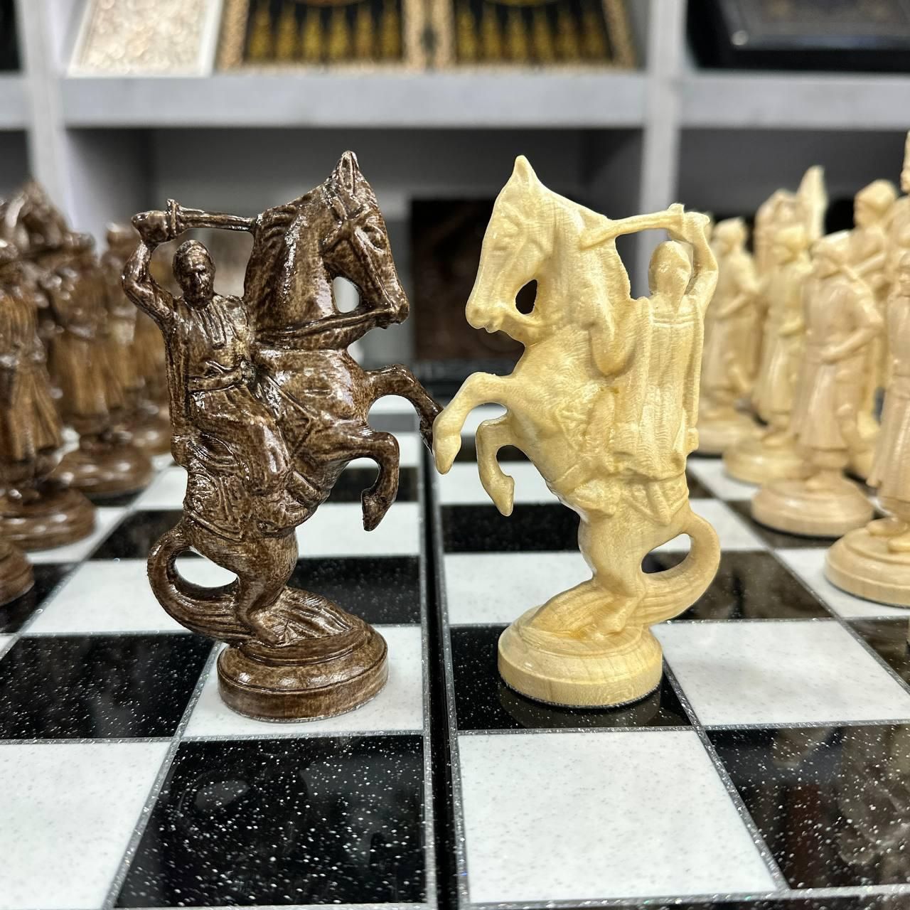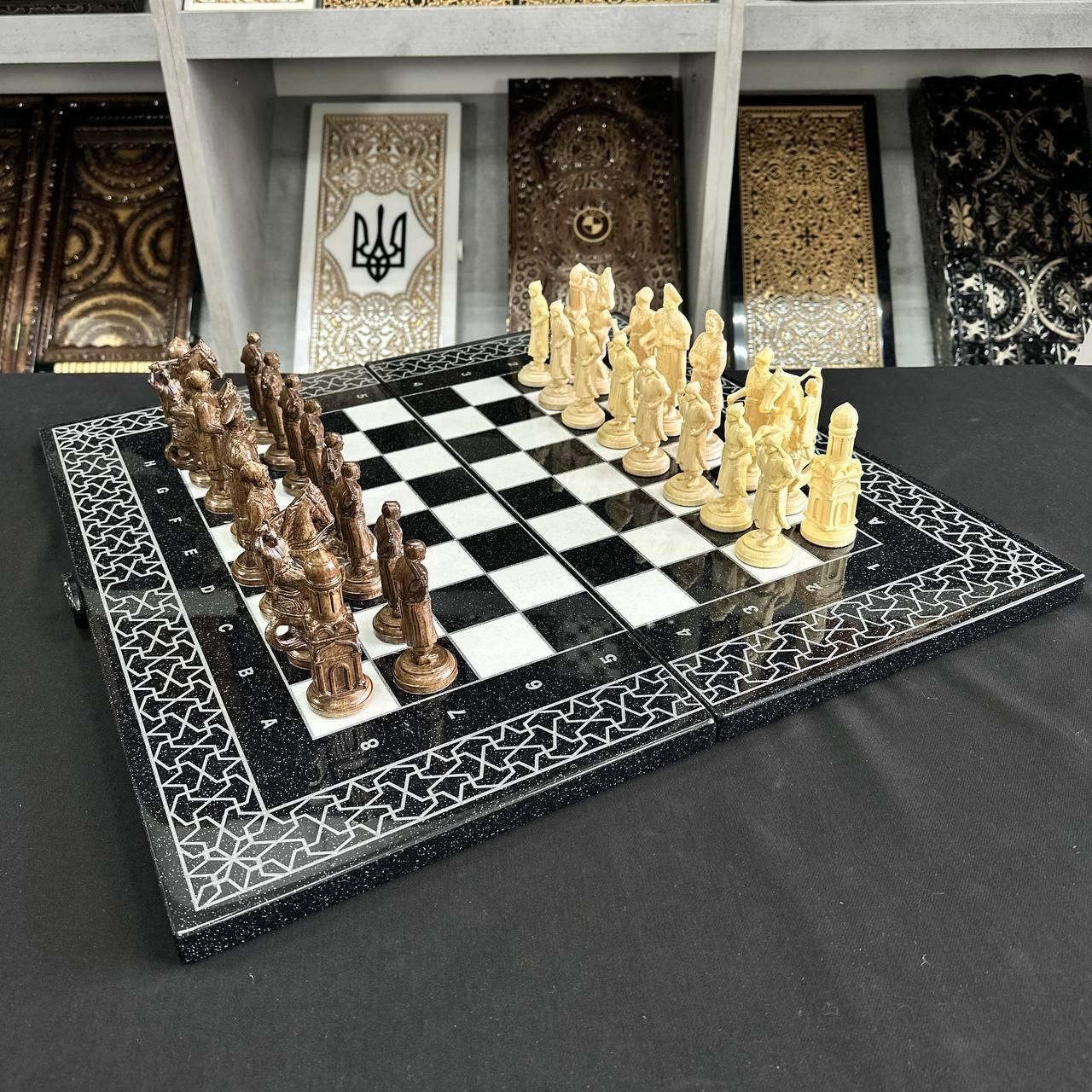 Эксклюзивный набор 3в1: Шахматы, Шашки, Нарды из акрилового камня (60х30 см) – Арт. 190635 Подарок, перехватывающий дыхание. Роскошь, воплощенная в камне. Шикарность, эксклюзивность и богатство – эти слова частично описывают величие данного набора. Если вы хотите продемонстрировать безупречный вкус или сделать незабываемый презент человеку, у которого есть все, этот комплект станет идеальным решением. Игра в такие шахматы или нарды превращается в особый ритуал, доставляя эстетическое удовольствие от каждого шага. Почему этот набор особенный? Материал будущего: Акриловый камень сочетает в себе крепость и благородный вес. Он устойчив к царапинам, приятен на ощупь и выглядит как дорогой монолит. Ювелирная обработка: Игровое поле покрыто высококачественной ювелирной смолой, что создает эффект глубины и идеального глянца. Золотое наполнение: Особый шарм и антикварный вид изделия придает ручное наполнение золотой краской, которая используется для реставрации ценных антикварных вещей. Коллекционные фигуры «Гетманское войско»: Набор комплектуется уникальными шахматными фигурами, придающими игре патриотического и исторического контекста. Уникальность: Текстура акрилового камня никогда не повторяется – каждый набор имеет свой неповторимый узор. Характеристики изделия: Параметр Значение Вид игр Шахматы, шашки, нарды (3 в 1) Размеры (ДхШхВ) 60 см х 30 см х 5 см Материал корпуса Акриловый камень (черно-белая классика) Отделка Ювелирная смола, золотое наполнение Диаметр фишек 2 Комплектация: Универсальная игровая доска (шахматы/нарды). Набор фишек для нард и шашек (15 светлых + 15 темных). Премиальный набор шахматных фигур «Гетманское войско». Зари (кубики) для игры в нарды. Не упустите шанс стать обладателем этого уникального комплекта! Закажите набор прямо сейчас и подарите себе и своим близким незабываемые моменты радости, интеллектуального азарта и эстетического наслаждения. Не останавливайтесь на достигнутом представлены и , которые смогут удовлетворить любые ваши вкусы и предпочтения. : Это классическая игра, которая на протяжении веков развлекает людей всех возрастов : Интеллектуальная игра, которая бросит вызов вашему уму Аксессуары для настольных игр: , , и многое другое, что сделает ваши игры еще более комфортными и приятными. Посетите наш и найдите ту игру, которая станет вашим новым любимым досугом! Остались вопросы? Звоните нам. Наши менеджеры всегда на связи и готовы ответить на все интересующие вас вопросы Адрес: Украина г. Стрый, ул. Заньковецкой, дом. 2, второй этаж