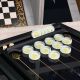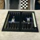 Стеклянные нарды в алюминиевом каркасе 61х27 см. Эксклюзивные нарды с УФ-печатью и фишками из эпоксидной смолы.