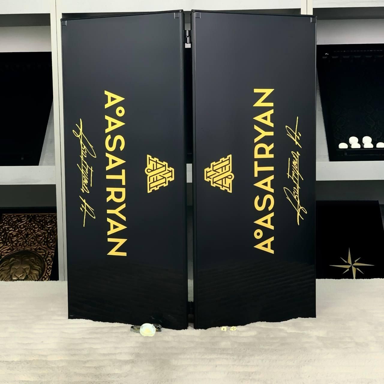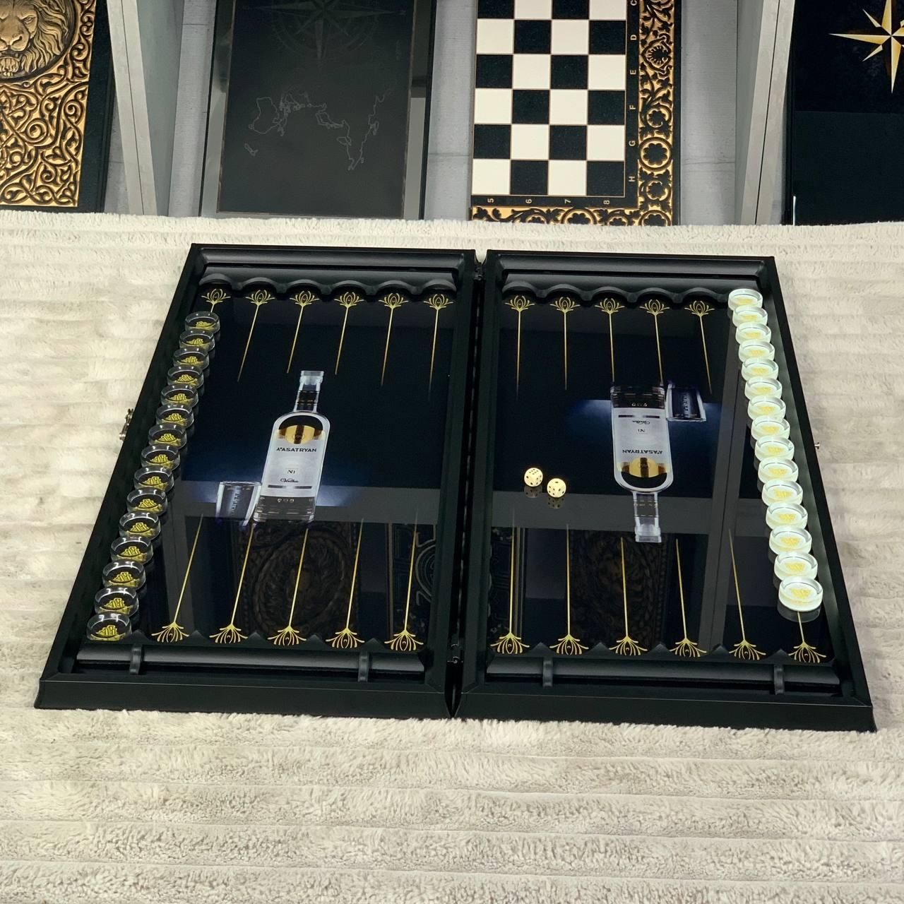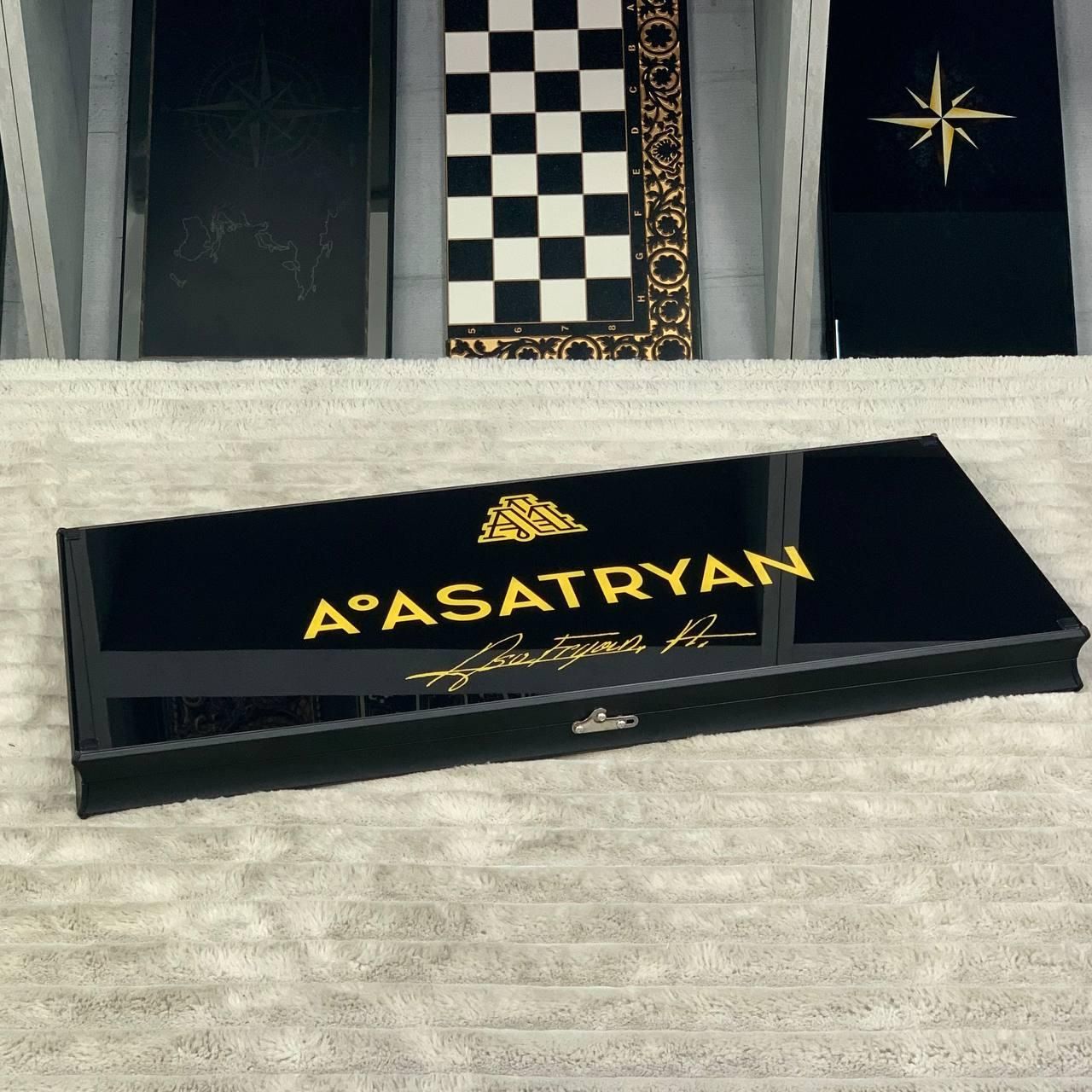Стеклянные нарды в алюминиевом каркасе 61х27 см. Эксклюзивные нарды с УФ-печатью и фишками из эпоксидной смолы.