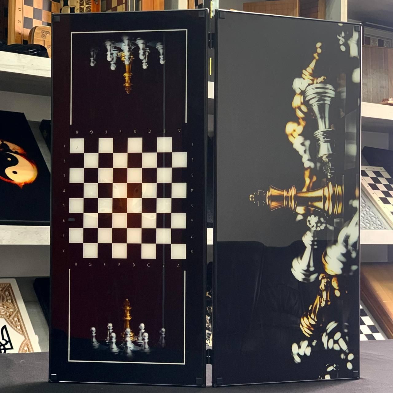 Эксклюзивные шахматы и нарды из стекла 2в1 (61×27×5 см) — набор шахматных фигур и доска (арт. 250061) Хотите поразить человека, у которого есть все? Эксклюзивные шахматы и нарды из стекла 2в1 – это сочетание современного искусства и интеллектуальной игры. Это не просто доска, а статусная вещь, которая подчеркнет ваш изысканный вкус и подарит незабываемые эмоции. Если вы ищете подарок для мужчины, папы или бизнес-партнера, то эта модель станет идеальным выбором. Почему стоит купить эти шахматы и нарды? Этот набор выгодно отличается от классических моделей. Вместо привычных деревянных шахмат вы получаете высокотехнологичное изделие: Уникальные материалы: Игровое поле выполнено из стекла и защищено 2 мм поликарбонатом, что обеспечивает долговечность и невероятный блеск. Высокая детализация: Шахматные фигуры в классическом стиле имеют идеальную балансировку. Вы почувствуете силу каждой фигуры: будь то могущественный король, стратегический конь (шахматы) или быстрая ладья. Ручная работа: Фишки для нард изготовлены из прозрачной эпоксидной смолы с индивидуальным принтом – настоящие шахматы ручной работы. Функциональность 2в1: возможность играть в классические шахматы, а также в длинные или короткие нарды. Интересная справка: Где изобрели шахматы? Для настоящих ценителей игры напомним, что шахматы изобрели в Древней Индии примерно в VI веке. Первоначальная игра называлась «Чатуранга». Со временем правила менялись, и сегодня мы имеем совершенную игру, где каждая фигура — ферзь, слон или пешка — играет свою уникальную роль. Характеристики набора: Параметр Значение Материал Стекло, алюминиевый композит Размер в разложенном виде 61×54×2,5 см Оформление УФ-печать чернилами (мультиколор) Фишки Эпоксидная смола (диаметр 27 мм) Комплектация Доска, 30 фишек, 2 кубики, набор любимый, роскошный подарок на свадьбу или солидный презент для профессионального игрока. Купить шахматы с доставкой по Украине (Киев, Львов, Винница и другие города) можно прямо сейчас. Возможная персонализация – гравировка на стекле по вашему желанию! Не останавливайтесь на достигнутом представлены и , которые смогут удовлетворить любые ваши вкусы и предпочтения. : Это классическая игра, которая на протяжении веков развлекает людей всех возрастов : Интеллектуальная игра, которая бросит вызов вашему уму Аксессуары для настольных игр: , , и многое другое, что сделает ваши игры еще более комфортными и приятными. Посетите наш и найдите ту игру, которая станет вашим новым любимым досугом! Остались вопросы? Звоните нам. Наши менеджеры всегда на связи и готовы ответить на все интересующие вас вопросы Адрес: Украина г. Стрый, ул. Заньковецкой, дом. 2, второй этаж