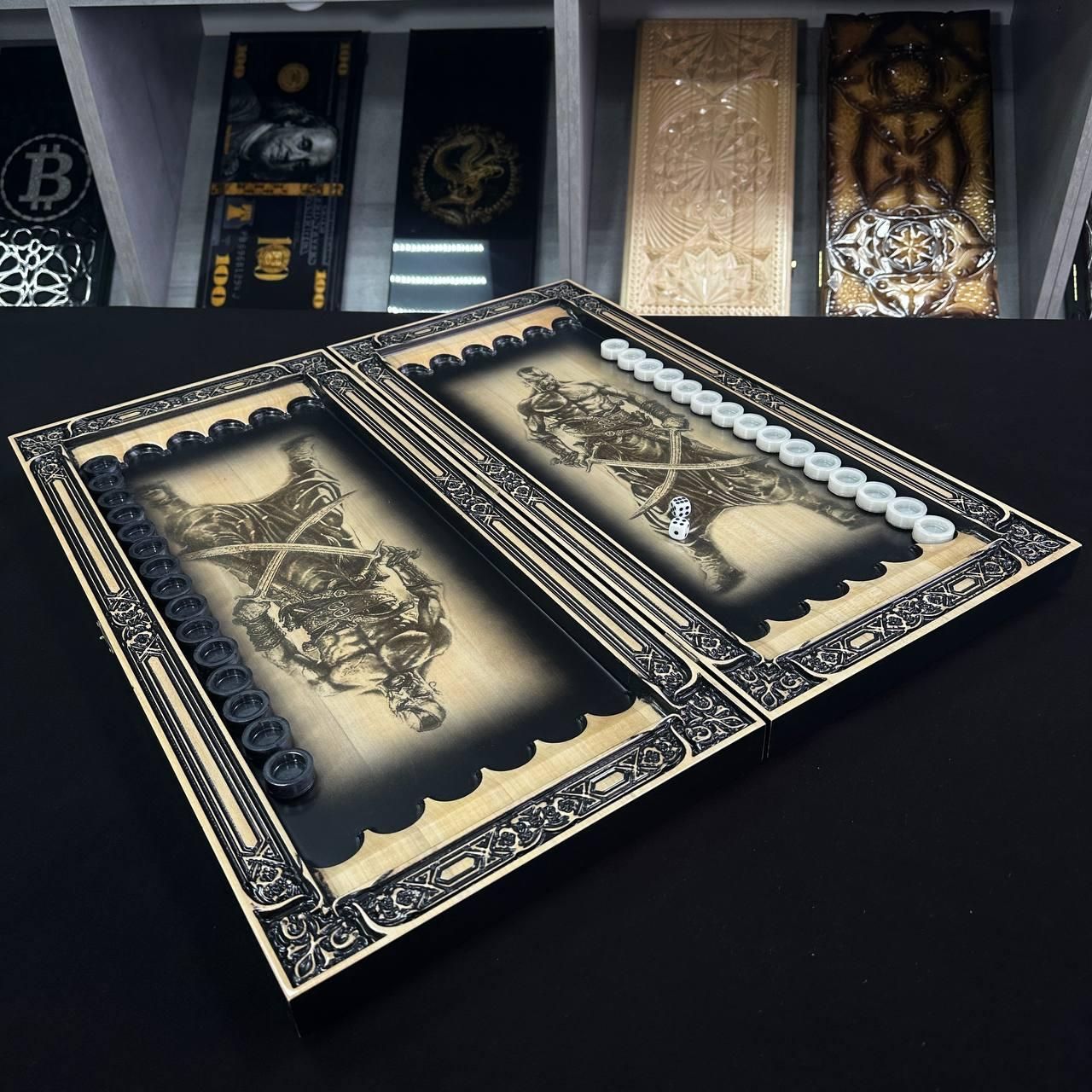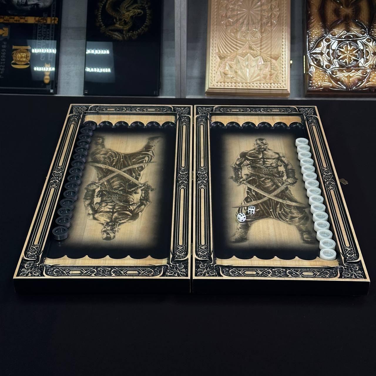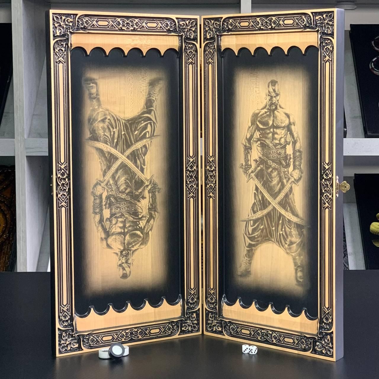 Нарды деревянные ручной работы Трезубец 60×28см