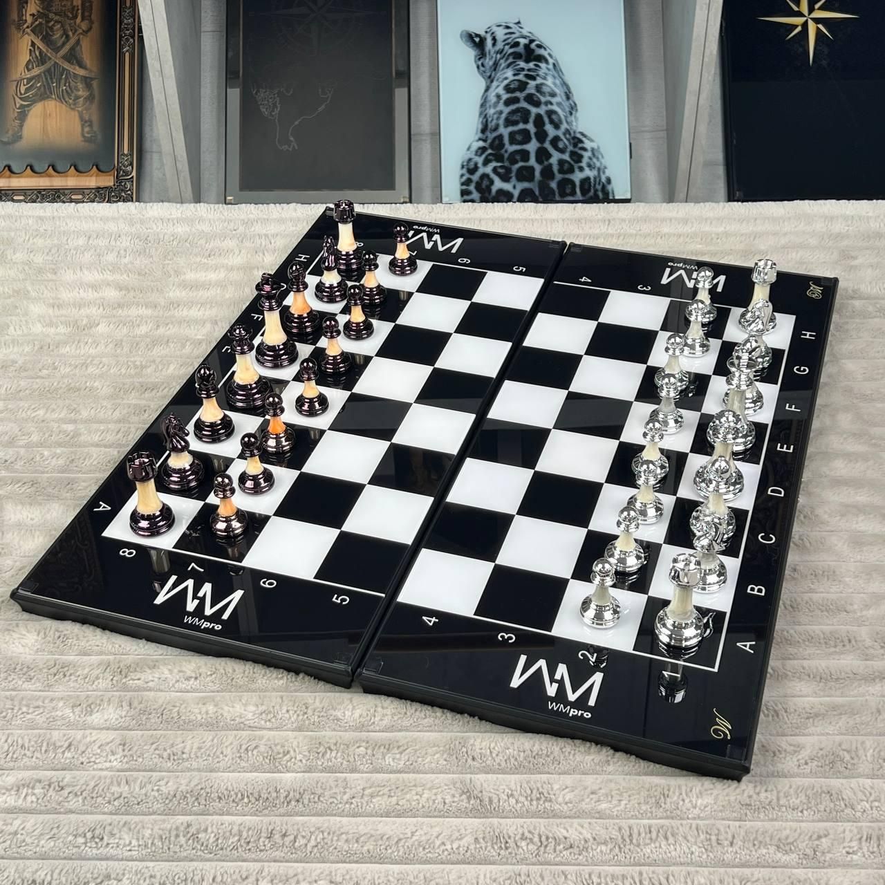 Эксклюзивные шахматы и нарды из стекла 2в1 с индивидуальным дизайном (61×27 см) — подарочный набор (арт. 250077) Ищете действительно уникальный презент, который вызовет восторг? Эксклюзивные шахматы и нарды из стекла 2в1 – это изысканное сочетание современных технологий и классической игры. Благодаря возможности нанесения индивидуального дизайна (логотипа футбольной команды, марки авто или личного бренда) этот набор становится настоящим шедевром. Это идеальный подарок для мужчины, папы или бизнес-партнера, который подчеркнет ваш безупречный вкус. Почему следует выбрать эти персонализированные шахматы? В отличие от стандартных деревянных шахмат, эта модель выглядит футуристично и дорого: Двойная игра: Вы получаете шахматы и нарды в одном наборе. Играть можно как в длинные, так и в короткие нарды. Материалы премиум-класса: Наружная часть – крепкий алюминиевый композит, игровое поле – закаленное стекло с УФ-печатью. Детализация фигур: В комплект входят классические шахматные фигуры. Каждая позиция - король, стратегический ферзь, скорая ладья или грациозный конь (шахматы) - выполнена с вниманием к деталям. Эксклюзивные фишки: Изготовлены из прозрачной эпоксидной смолы с уникальным принтом – настоящие шахматы ручной работы. Интересная справка: где изобрели шахматы? Для настоящих интеллектуалов напомним: шахматы изобрели в Индии в VI веке (игра Чатуранга). Впоследствии она трансформировалась, и сегодня шахматные фигуры на стеклянном поле — символ успеха и стратегического мышления. Технические характеристики: Параметр Характеристика Вид игры Шахматы + Нарды (2в1) Размер в сложенном виде 61×27×5 см Размер в разложенном виде 61×54×2,5 см Материал доски Стекло, алюминиевый композит Оформление УФ-чернил, мультиколор Фишки для нард Эпоксидная смола, фигуры, фишки, кубики (9 мм) Это солидный подарок мужчине, оригинальный подарок на свадьбу или сюрприз для фаната футбола с логотипом любимого клуба. Заказывайте шахматы с доставкой по Украине (Киев, Львов, Одесса, Винница) и создавайте свою историю побед! Остались вопросы? Звоните нам. Наши менеджеры всегда на связи и готовы ответить на все интересующие вас вопросы Адрес: Украина г. Стрый, ул. Заньковецкой, дом. 2, второй этаж