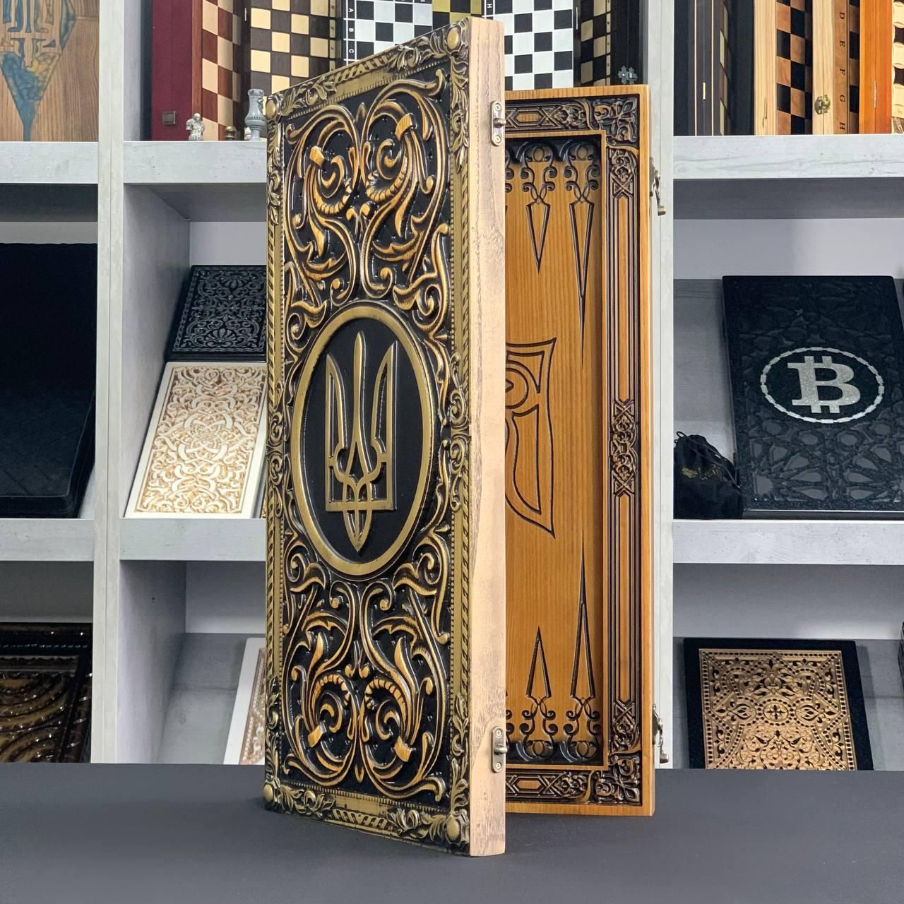 Деревянные нарды "Тризуб" 64×32 см – элитный подарок для ценителей игры Представляем эксклюзивные деревянные нарды "Тризуб", сочетающие традиции, эстетику и качество. Этот набор станет идеальным подарком для любителей интеллектуальных игр и национальной символики. Корпус выполнен из натурального ясеня, что гарантирует долговечность и изящный вид. Наружное оформление украшено искусной резьбой по дереву, а внутренняя часть – художественным обжигом, придающим уникальности. Набор подходит для длинных и коротких нард, а качественные фишки и кубики обеспечивают комфортную игру. Особенности нард ✔ Элитный дизайн – ручная резьба и обжиг придают изысканный вид ✔ Натуральное дерево – корпус из прочного ясеня обеспечивает долговечность ✔ Сбалансированные фишки – идеальны для плавного перемещения по доске Нарды "Тризуб" - это не просто игра, а произведение искусства, которое станет достойным элементом интерьера. Благодаря высококачественным материалам и ручной работе набор прослужит долгие годы, сохраняя свой эстетический вид. Модель оснащена фишками из смолы (15 светлых + 15 темных) и двумя кубиками (зарами). Оптимальные размеры позволяют удобно хранить и транспортировать набор. Технические характеристики Тип игры: длинные и короткие нарды Материал: натуральный ясень Наружное оформление: резьба по дереву Внутреннее оформление: обжиг по дереву Размер в сложенном виде: 64×32 см Размер в разложенном виде: 64×64 см Вес: 7,3 кг Фишки: с купить эти нарды? ???? Уникальный подарок – для любителей качественных вещей и интеллектуальных игр ???? Статусный аксессуар – подчеркнет утонченный вкус владельца???? Искусное исполнение – эксклюзивная ручная работа???? Долговечность – качественные материалы и надежная конструкция. Заказывайте прямо сейчас! Подарите себе или близким роскошные нарды "Тризуб"! Оформляйте заказы сегодня и получите быструю доставку по всей Украине! Не останавливайтесь на достигнутом представлены и , которые смогут удовлетворить любые ваши вкусы и предпочтения. : Это классическая игра, которая на протяжении веков развлекает людей всех возрастов : Интеллектуальная игра, которая бросит вызов вашему уму Аксессуары для настольных игр: , , и многое другое, что сделает ваши игры еще более комфортными и приятными. Посетите наш и найдите ту игру, которая станет вашим новым любимым досугом! Остались вопросы? Звоните нам. Наши менеджеры всегда на связи и готовы ответить на все интересующие вас вопросы Адрес: Украина г. Стрый, ул. Заньковецкой, дом. 2, второй этаж