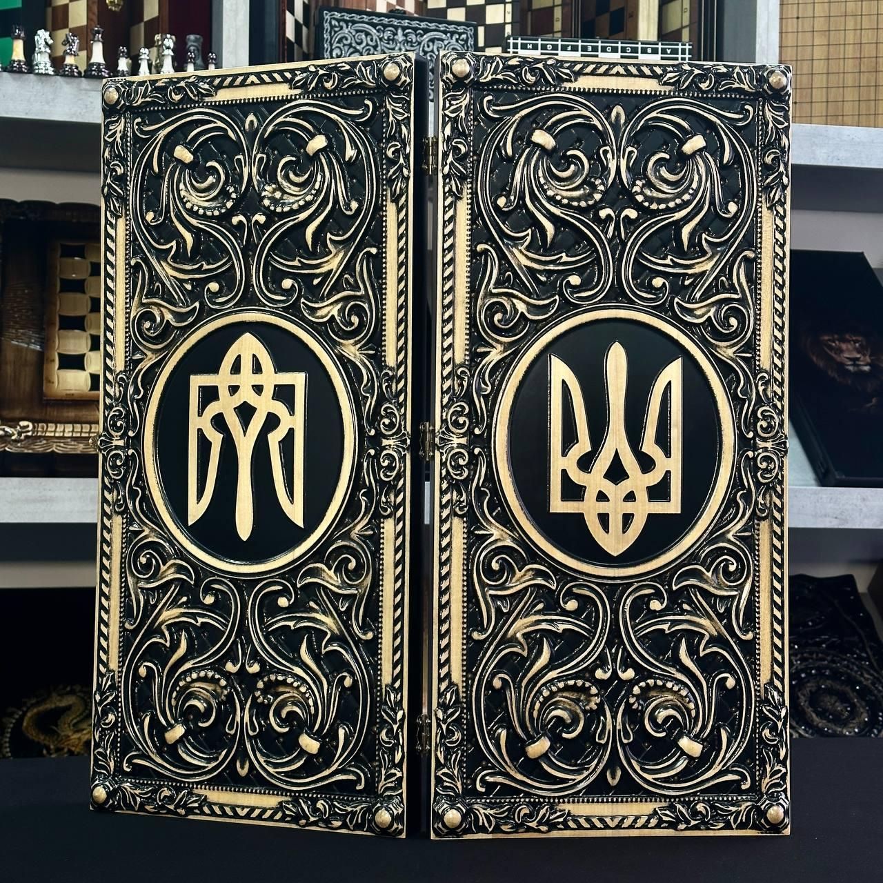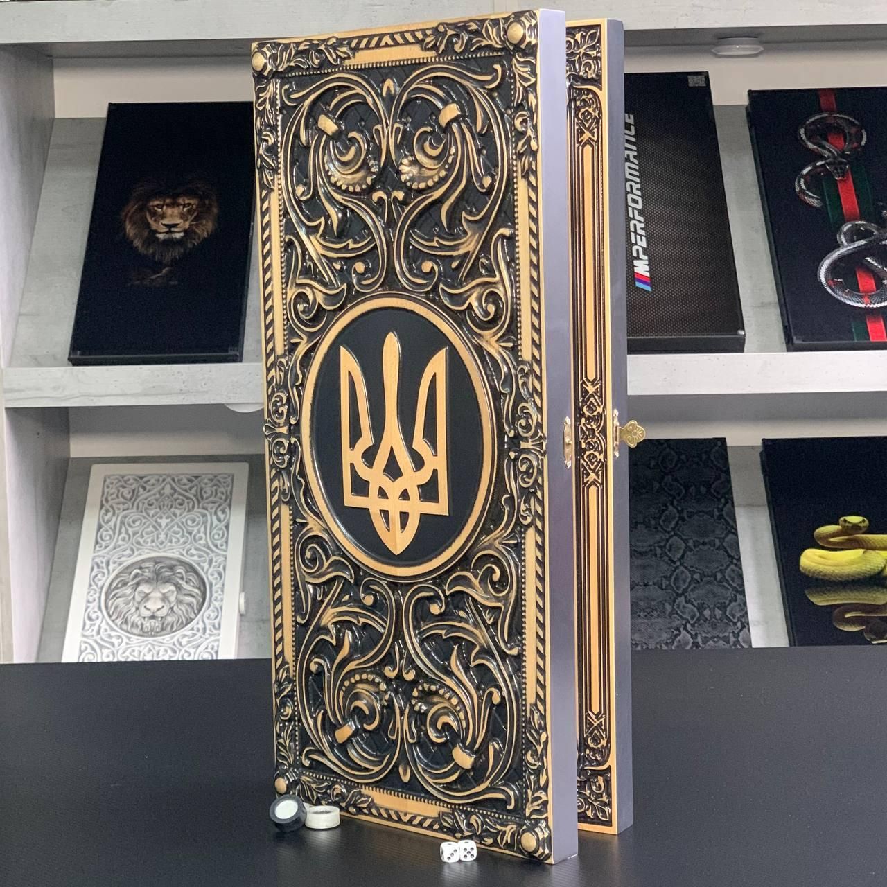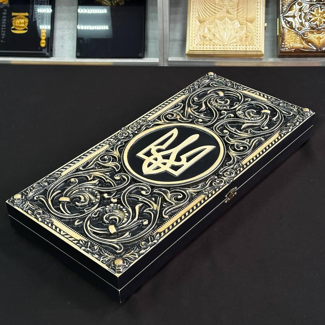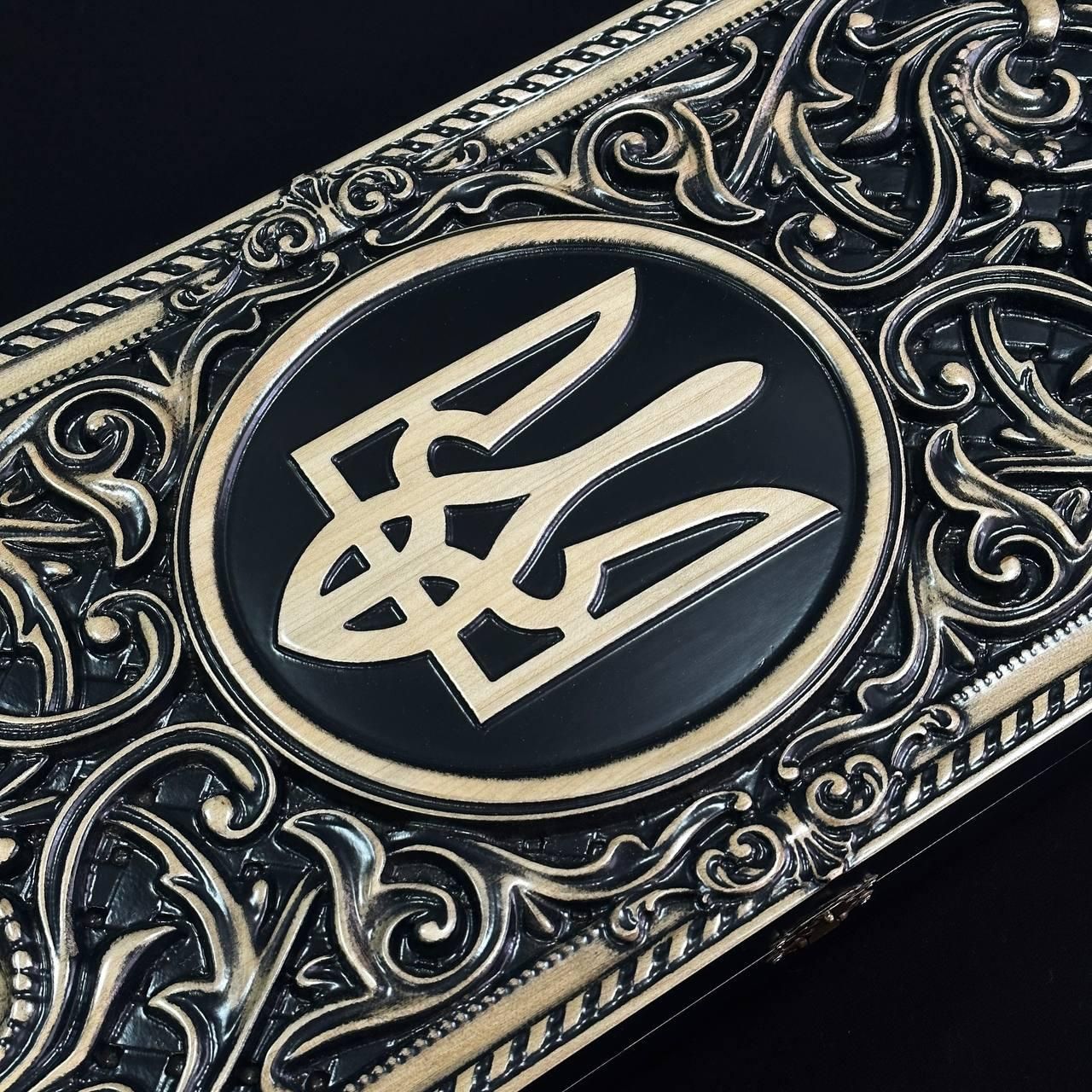 Деревянные нарды 60×28, арт.193014, "Тризуб" внутри с обжигом - патриотический подарок Откройте для себя мир увлекательной игры с этими изысканными деревянными нардами "Тризуб"! Особенности: Изготовленные из высококачественного дерева клен: крепкая доска и гладкие фишки гарантируют долгие годы удовольствия от игры. Уникальный дизайн "Тризуб": элегантный рисунок на доске и фишках создаст атмосферу тайны и азарта. Стандартный размер: 60х28 см – удобен для хранения и транспортировки. Комплект на все готово: доска, 30 фишек (15 черных и 15 белых) и 2 кубика. Идеальный подарок: эти нарды станут отличным подарком для любого любителя настольных игр, а также для тех, кто ценит изысканные вещи. Персонализация: Вы можете персонализировать нарды, заказав гравировку на игровом поле или изменить рисунок. Это отличный способ сделать нарды уникальными и неповторимыми (для уточнения деталей свяжитесь с нами удобным для Вас способом) Характеристики: Материал: клен Размер: 60х28 см Комплектация: доска, 30 фишек, 2 кубика Закажите нарды деревянные "Тризуб" 60х28 см уже и позволяйте! Достоинства: Развивает стратегическое мышление и логику. Тренирует внимательность и концентрацию. Подходит для всех возрастов. Сближает людей и дарит эмоции. Станет отличным дополнением к вашему интерьеру. Эта игра не просто развлечение, это целый мир, где каждый ход может стать ключевым к победе. Не останавливайтесь на достигнутом представлены и , которые смогут удовлетворить любые ваши вкусы и предпочтения. : Это классическая игра, которая на протяжении веков развлекает людей всех возрастов : Интеллектуальная игра, которая бросит вызов вашему уму Аксессуары для настольных игр: , , и многое другое, что сделает ваши игры еще более комфортными и приятными. Посетите наш и найдите ту игру, которая станет вашим новым любимым досугом! Остались вопросы? Звоните нам. Наши менеджеры всегда на связи и готовы ответить на все интересующие вас вопросы Адрес: Украина г. Стрый, ул. Заньковецкой, дом. 2, второй этаж