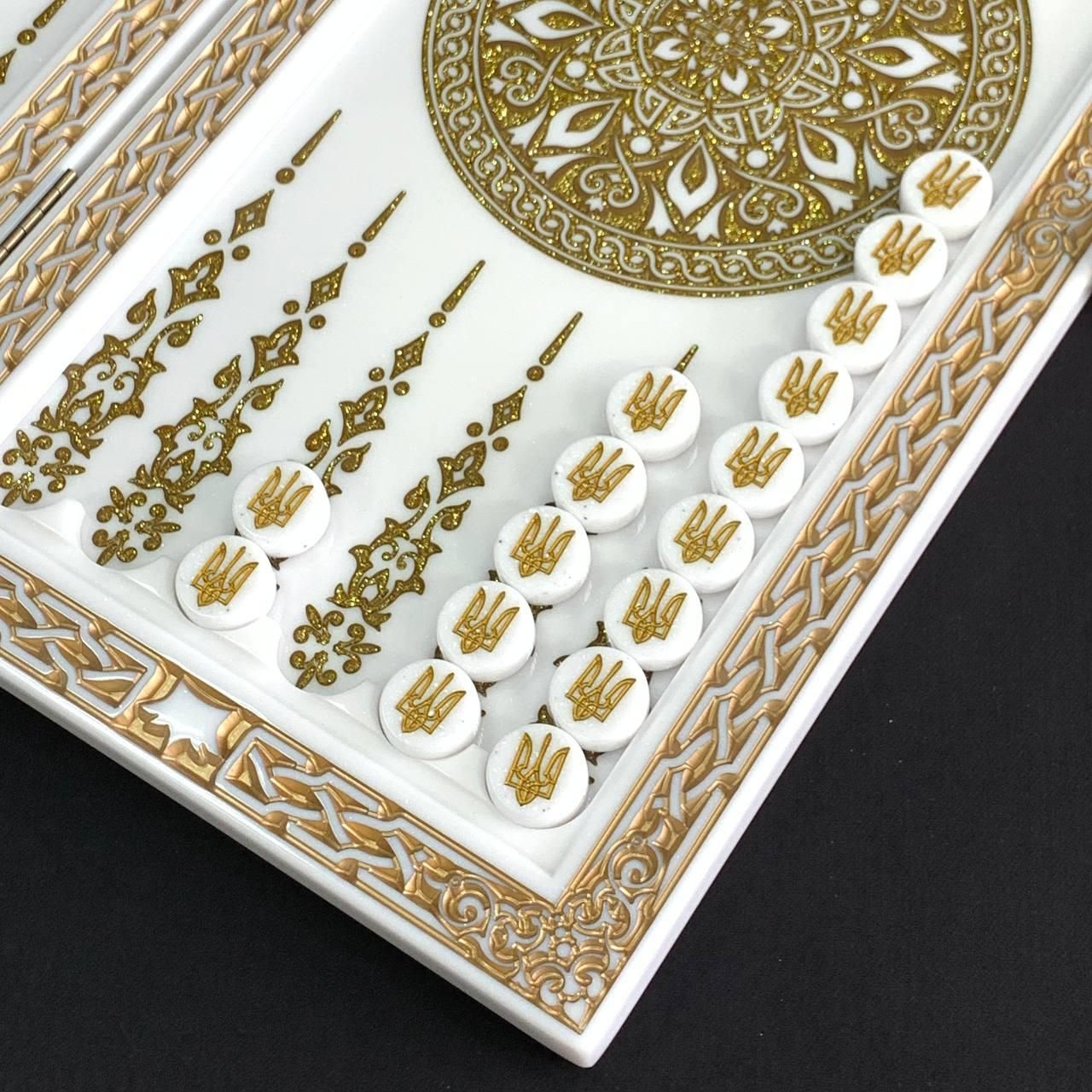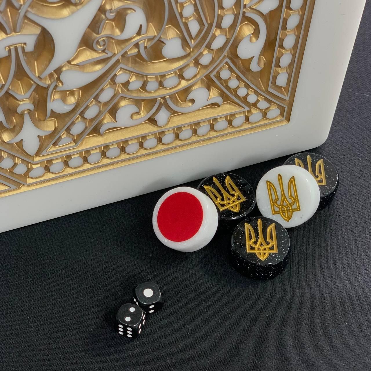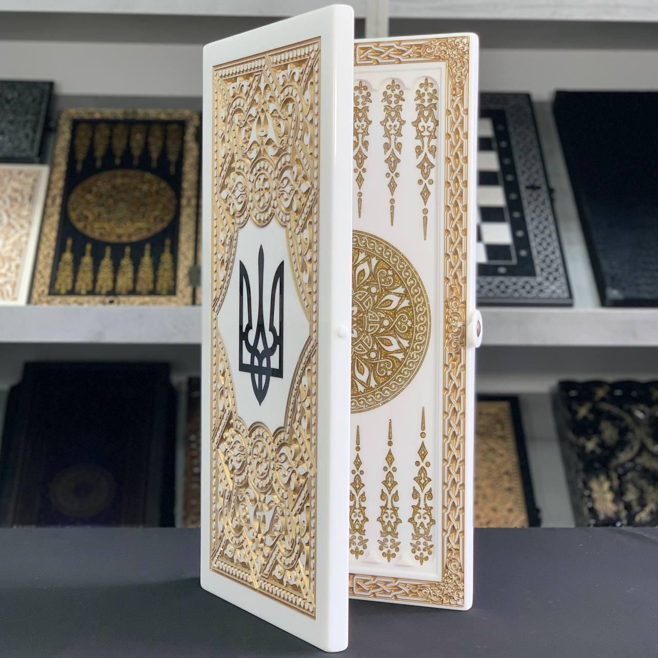 Нарды из белого акрилового камня "Черный трезубец": Игровой шедевр с украинским колоритом, 58×28×5 см, арт.190605 Эти нарды из акрилового камня сочетают в себе искусство и функциональность, становясь идеальным подарком и украшением любого интерьера. Вы можете выбрать камень белого или черного цвета, что подчеркнет ваш стиль и статус. Играйте в длинные или короткие нарды на просторном игровом поле, которое можно персонализировать – выбрать классический орнамент или создать свой дизайн на заказ. Особенности и технические характеристики Материал: акриловый камень, доступный в белом или черном варианте () Оформление: изящная резьба с классическим или индивидуальным орнаментом Декор: антикварная краска золотая, серебряная или по вашему желанию. Размер: 58х28х5 см. длинные и короткие нарды Фишки и кубики: изготовлены из акрилового камня, что подчеркивает целостность дизайна Комплектация: набор включает нарды, 15 светлых и 15 темных фишек, 2 кубика. Возможность полной персонализации - создание уникального дизайна под заказ. Акриловый камень, белого или черного цвета, придает изделию благородный вид, а антикварное окрашивание золотом или серебром делает дизайн особенным и элегантным. Благодаря резьбе по камню, орнамент может быть как классическим, так и выполненным по индивидуальному заказу. Это делает каждый набор уникальным и уникальным. Такой комплект нард станет отличным подарком, а также оригинальным дополнением интерьера дома, офиса или ресторана. Выбирайте и заказывайте нарды из акрилового камня с уникальной резьбой прямо сейчас! Создайте свой персональный дизайн или выберите классический орнамент. ???? Звоните: ???? Оперативная доставка по Украине и за границу???? Удобная оплата онлайн или при получении Остались вопросы? Звоните нам. Наши менеджеры всегда на связи и готовы ответить на все интересующие вас вопросы Адрес: Украина г. Стрый, ул. Заньковецкой, дом. 2, второй этаж