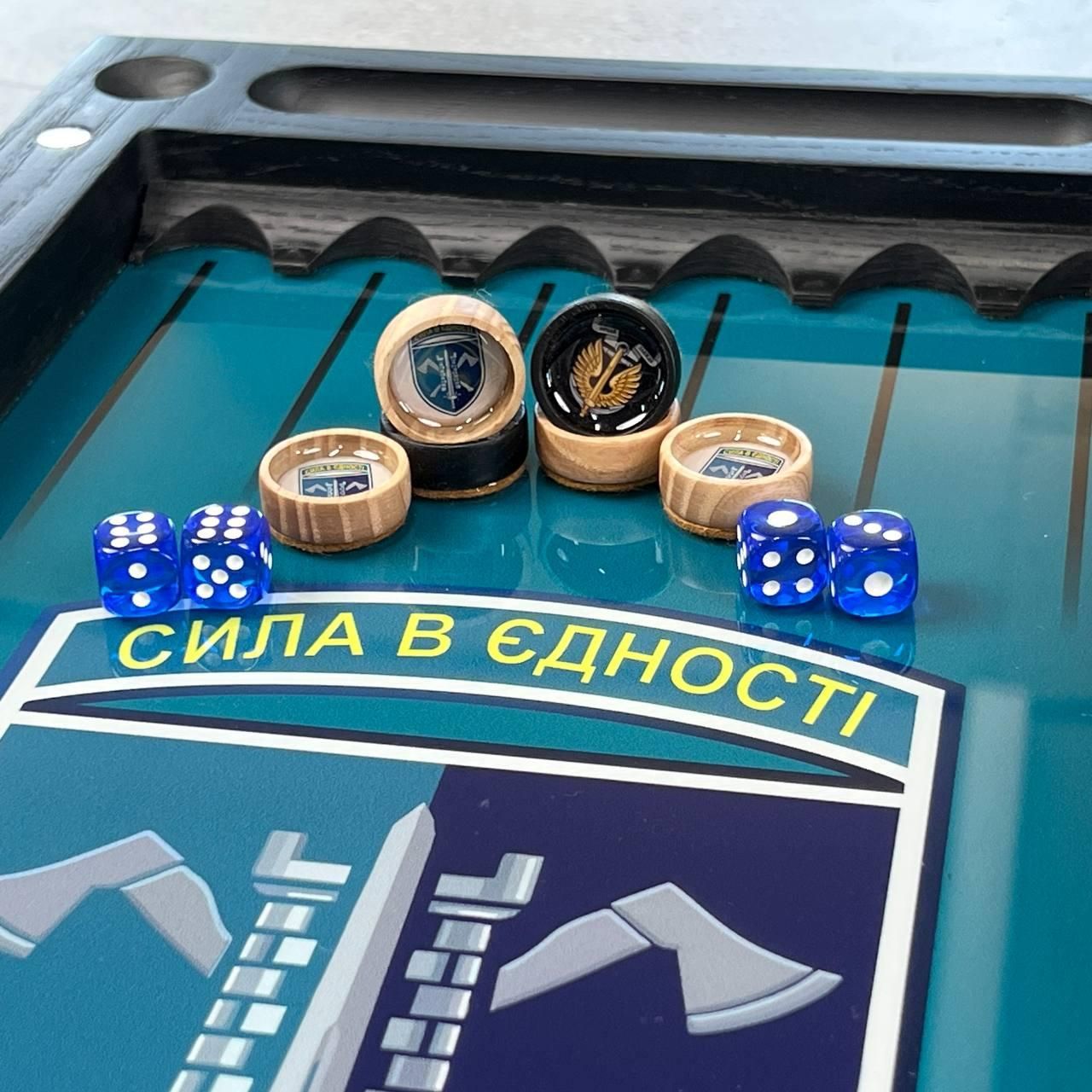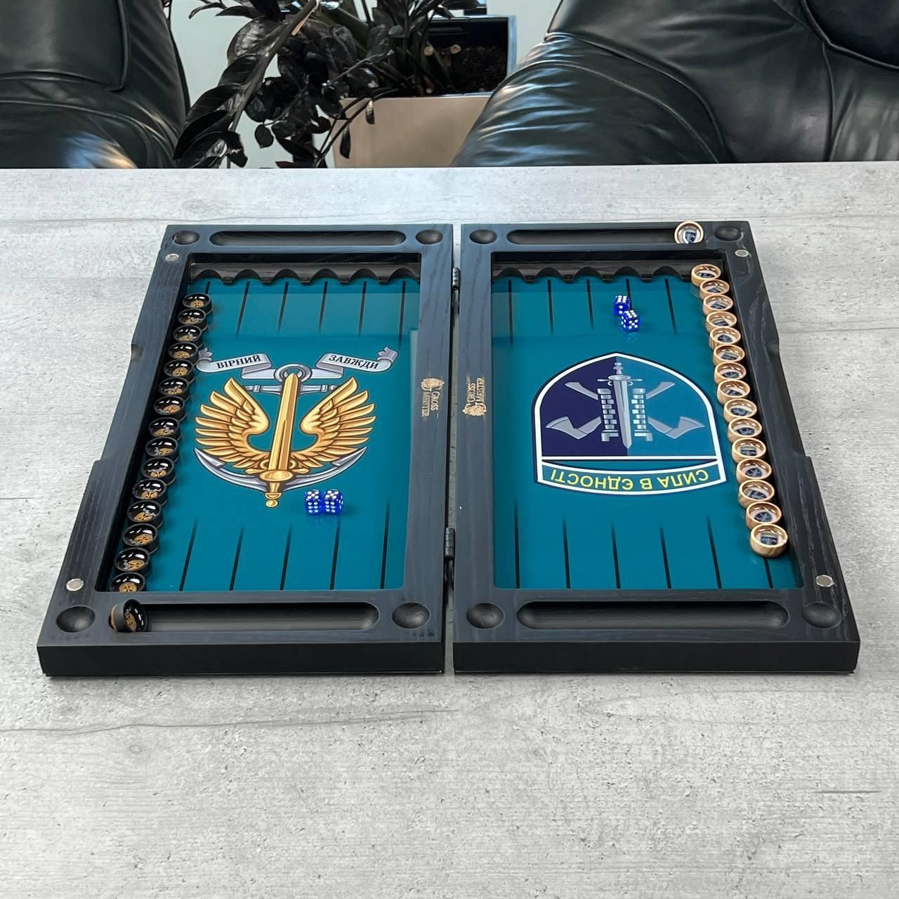 Нарды деревянные ручной работы Трезубец 68×32см патриотическиеНарды деревянные ручной работы Трезубец 68×32см патриотические