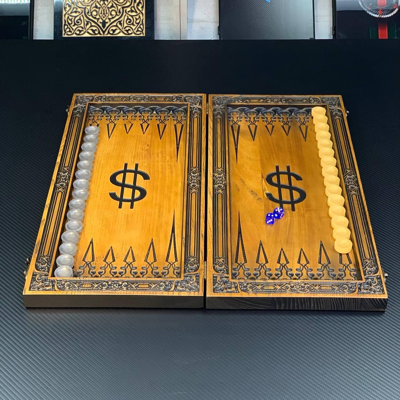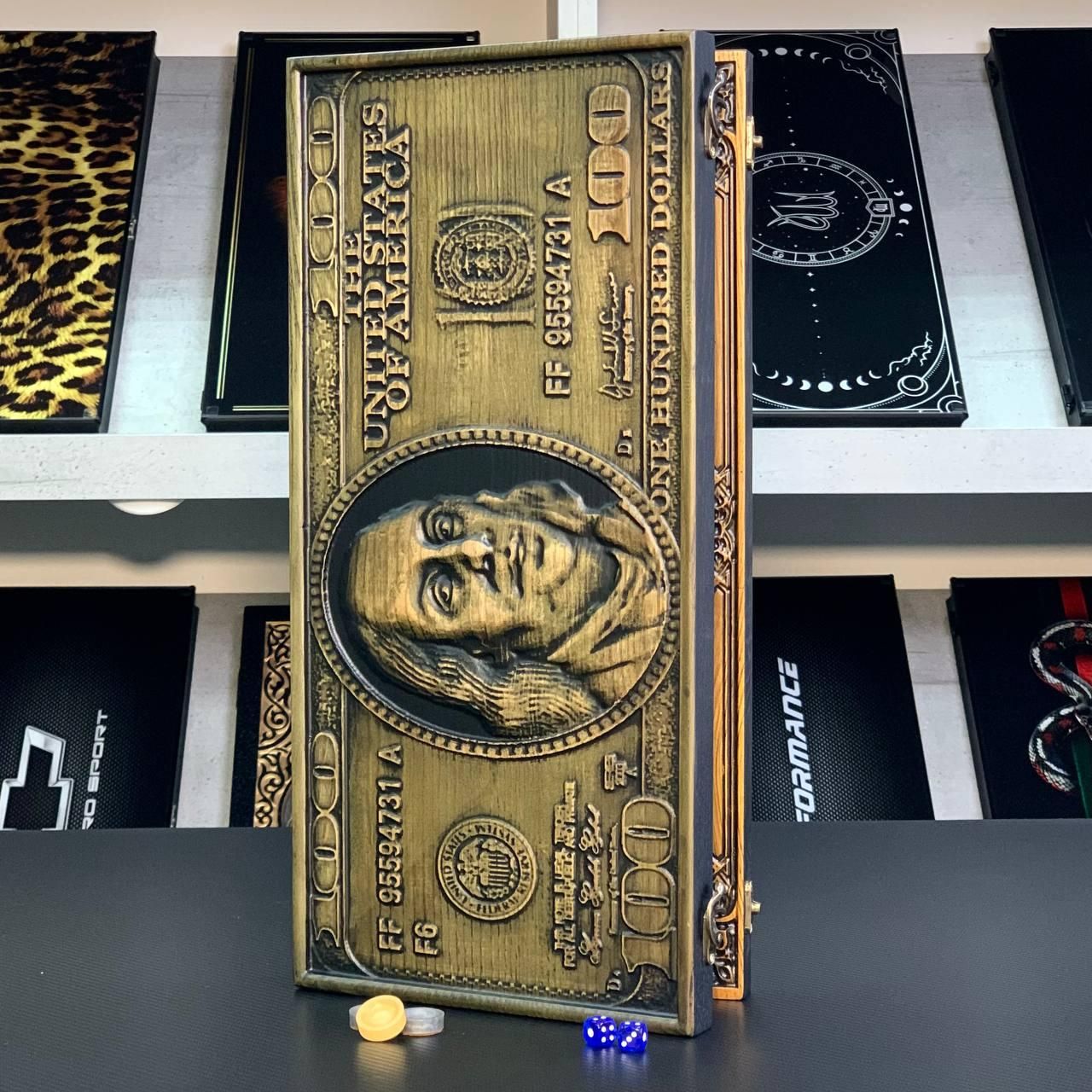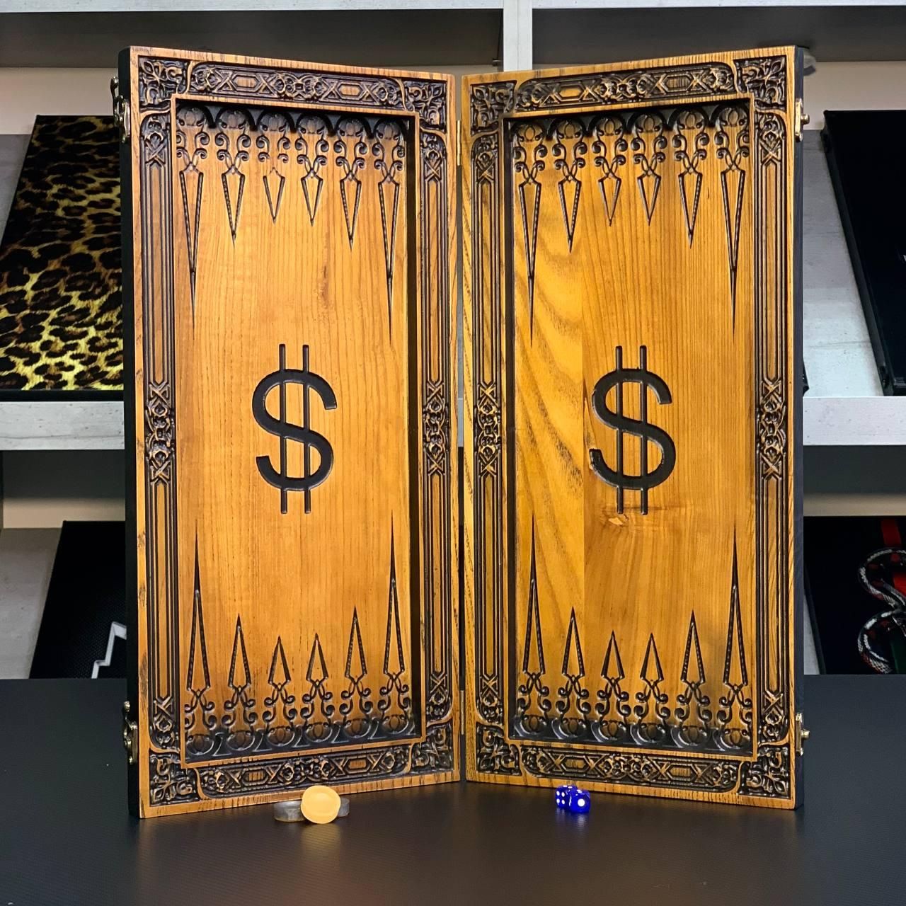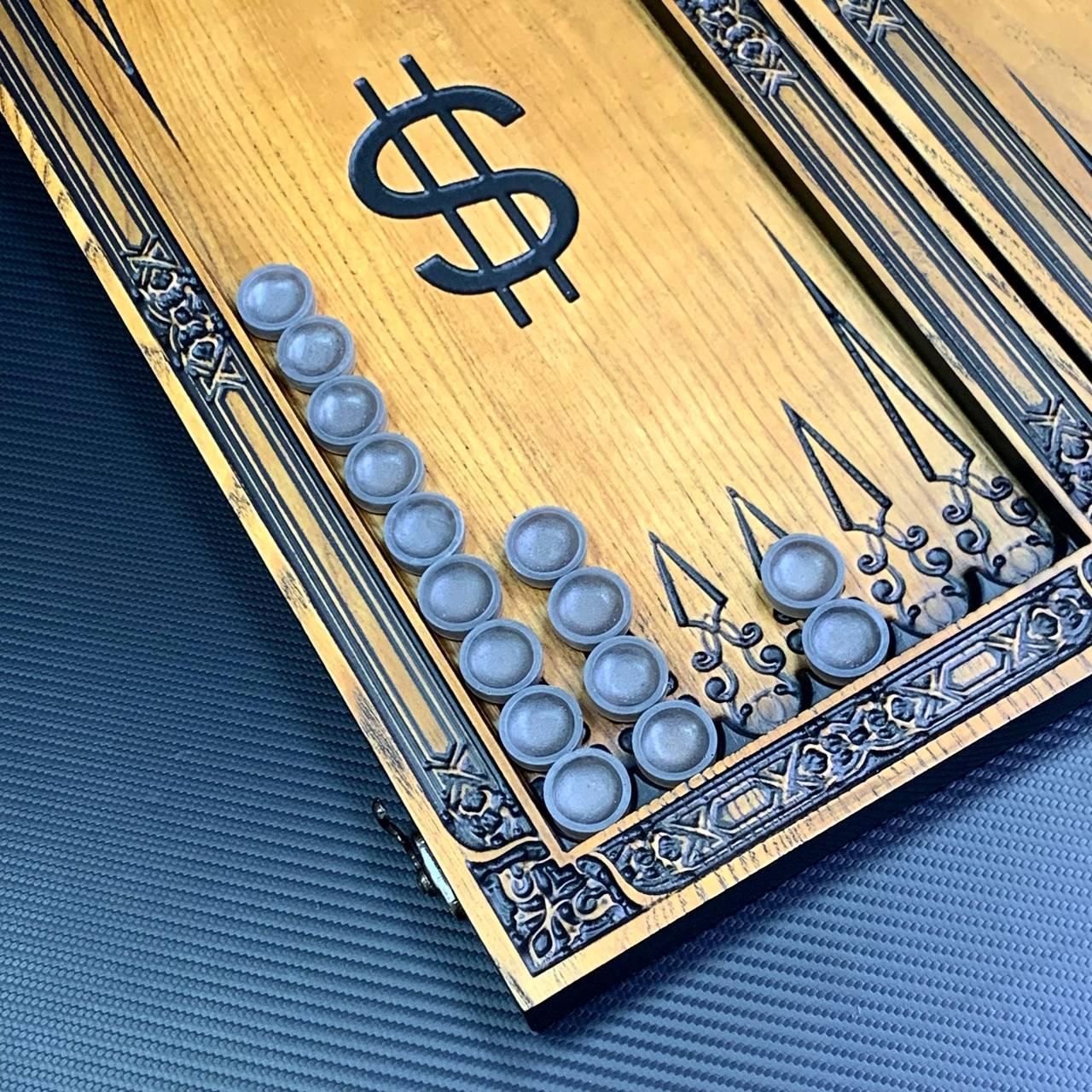 Деревянные нарды "Доллар" – роскошная настольная игра Деревянные нарды "Доллар" – идеальное сочетание классики и изысканного стиля. Наружное оформление привлекает внимание символом доллара, вырезанным на качественном ясеневом дереве. Внутреннее поле украшено тонкой резьбой, придающей игре элегантности и уникальности. Эта игра станет отличным подарком для поклонников настольных развлечений, а также отличным дополнением к вашему досугу. Изделие создано из высококачественного ясеня, имеет компактный размер в сложенном виде (46х23х3 см), что позволяет легко брать игру с собой в путешествие или на встречу с друзьями. Эксклюзивный дизайн: Резьба с символом доллара на внешней стороне. Материал: Ясеневая древесина – гарантия прочности и долговечности. Качественная комплектация Смоляные фишки и кубики с точными пропорциями для комфортной игры. Универсальность: Подходит для игры в длинные и короткие нарды. Игровое поле размером 40х42 см, что обеспечивает удобство игры даже для двух игроков с высоким уровнем опыта. Теплые коричнево-бежевые оттенки дерева гармонично дополняют стиль изделия. Вес игры – всего 1,95 кг, что делает его легким для транспортировки. Нарды "Доллар" станут отличным подарком для бизнес-партнеров, друзей или родственников. Они не только добавляют нотку роскоши к любому дому, но и обеспечивают приятный отдых с пользой для ума. Технические характеристики Размеры в сложенном виде: 46х23х3 см Размеры в разложенном виде: 46х46х1,5 см Размер игрового поля: 40х42 см Материал: Дерево (ясень) Фишки: Смола (15 светлых + 15 темных) Диаметр фишек: 23 мм кг Не упускайте возможность стать обладателем нард премиум-класса! Закажите деревянные нарды "Доллар" уже сегодня и порадуйте себя или своих близких увлекательной игрой, которая станет украшением любого досуга. Не останавливайтесь на достигнутом представлены и , которые смогут удовлетворить любые ваши вкусы и предпочтения. : Это классическая игра, которая на протяжении веков развлекает людей всех возрастов : Интеллектуальная игра, которая бросит вызов вашему уму Аксессуары для настольных игр: , , и многое другое, что сделает ваши игры еще более комфортными и приятными. Посетите наш и найдите ту игру, которая станет вашим новым любимым досугом! Остались вопросы? Звоните нам. Наши менеджеры всегда на связи и готовы ответить на все интересующие вас вопросы Адрес: Украина г. Стрый, ул. Заньковецкой, дом. 2, второй этаж