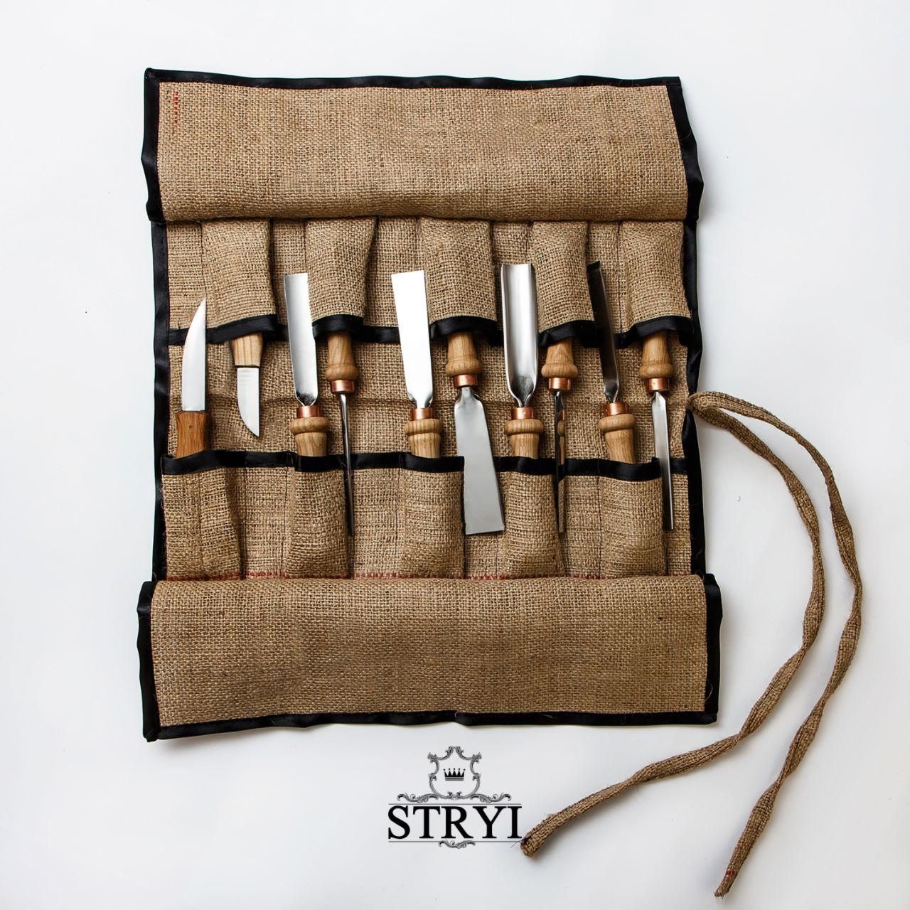 Чехол для 10 стамесок STRYI (высота 30 см), мешковина