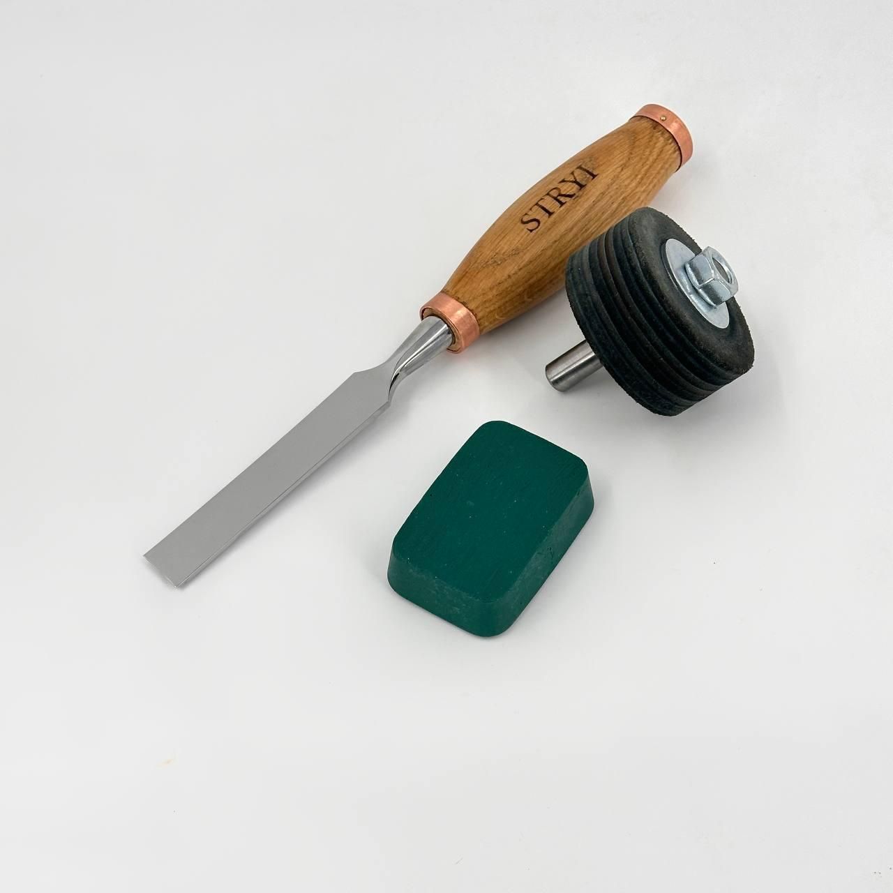Набор для вырезания культи из дерева STRYI — 3 инструмента и заготовка из липы.