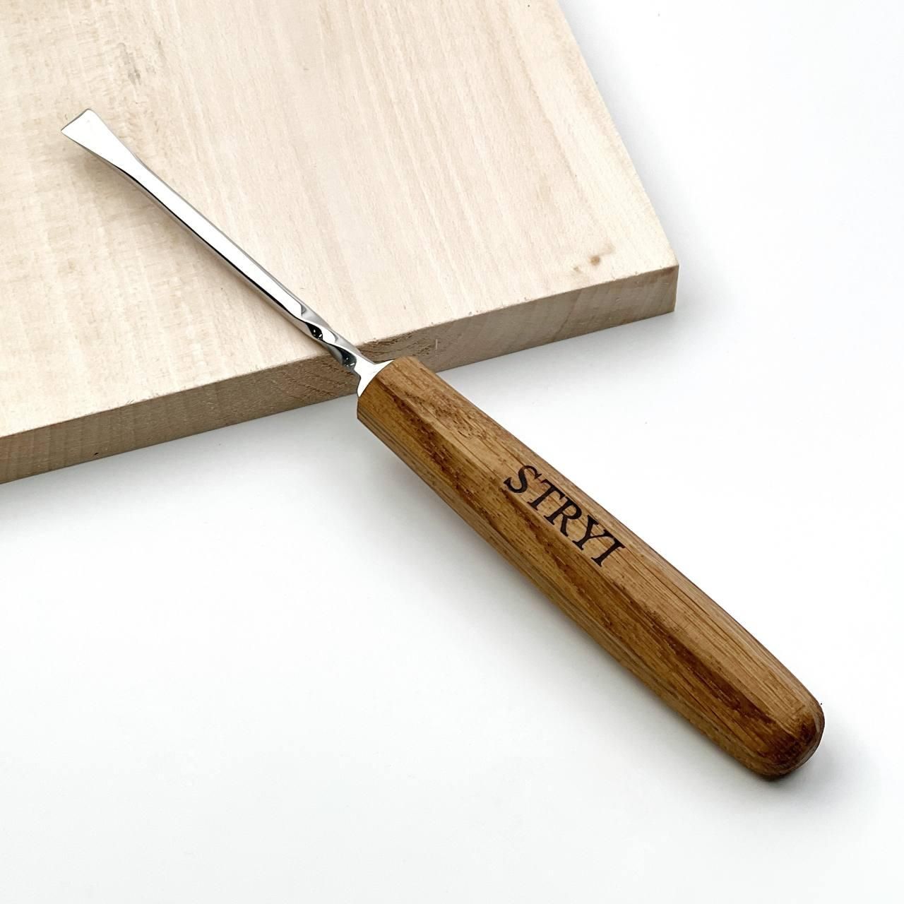 Плоская стамеска кованая для резьбы по дереву, форма Рыбий хвост, размер 10 мм №1, бренда STRYI Maestro