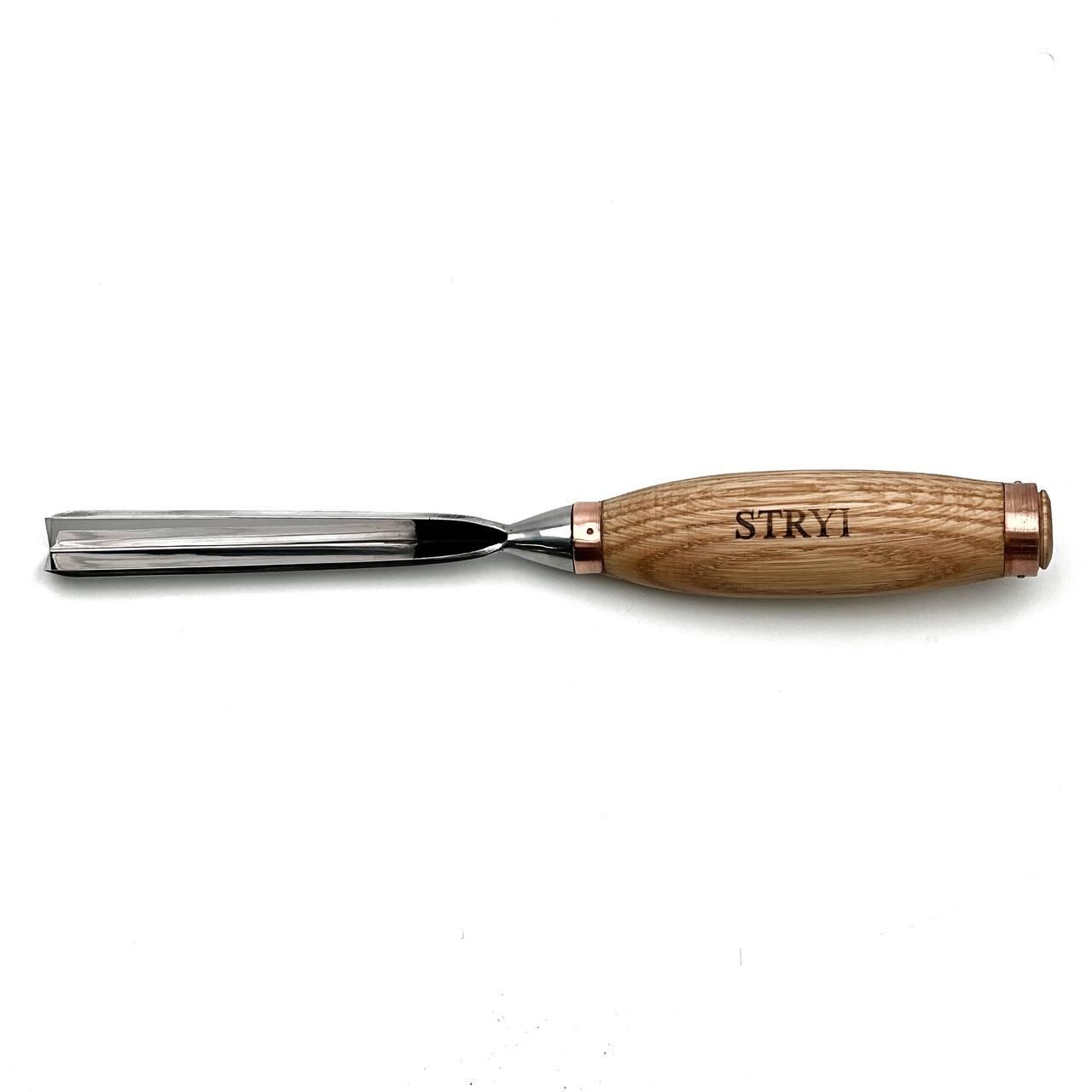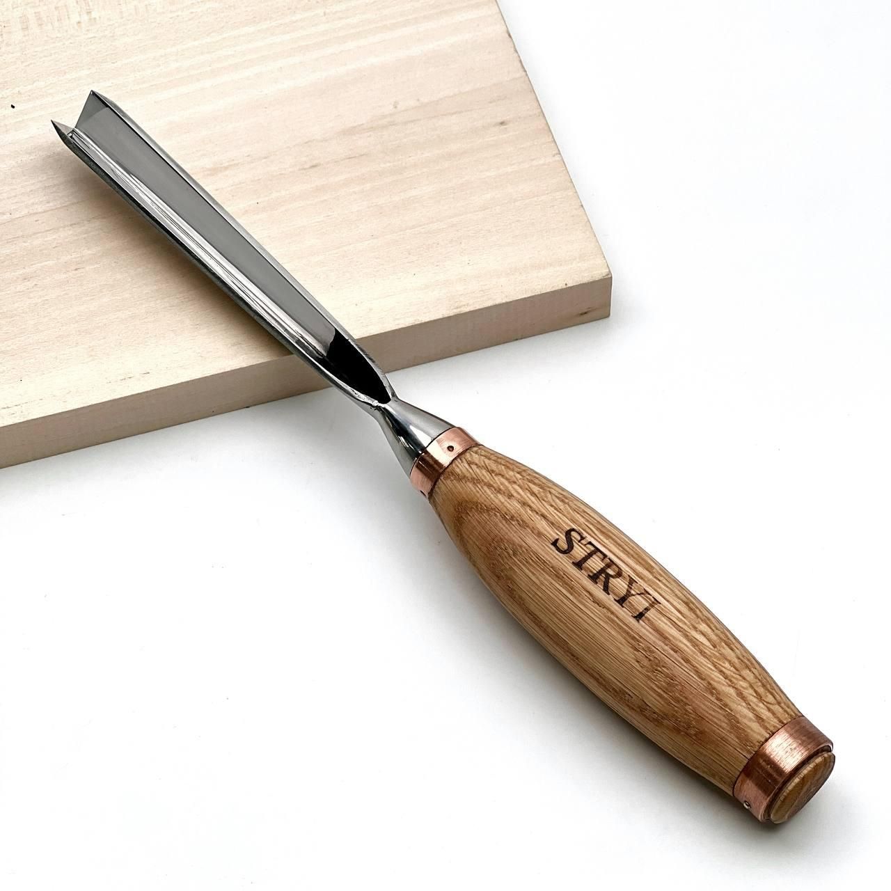 Ударная угловая стамеска 60°, 15мм STRYI Profi для объемной и скульптурной резьбы по дереву.