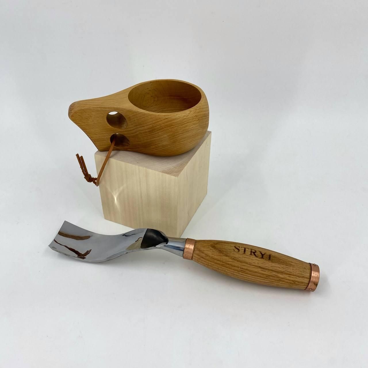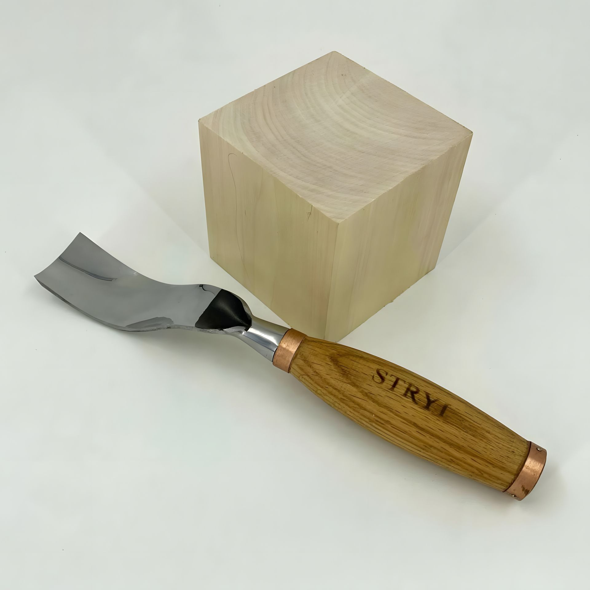 Набор для вырезания культи из дерева STRYI — 3 инструмента и заготовка из липы.