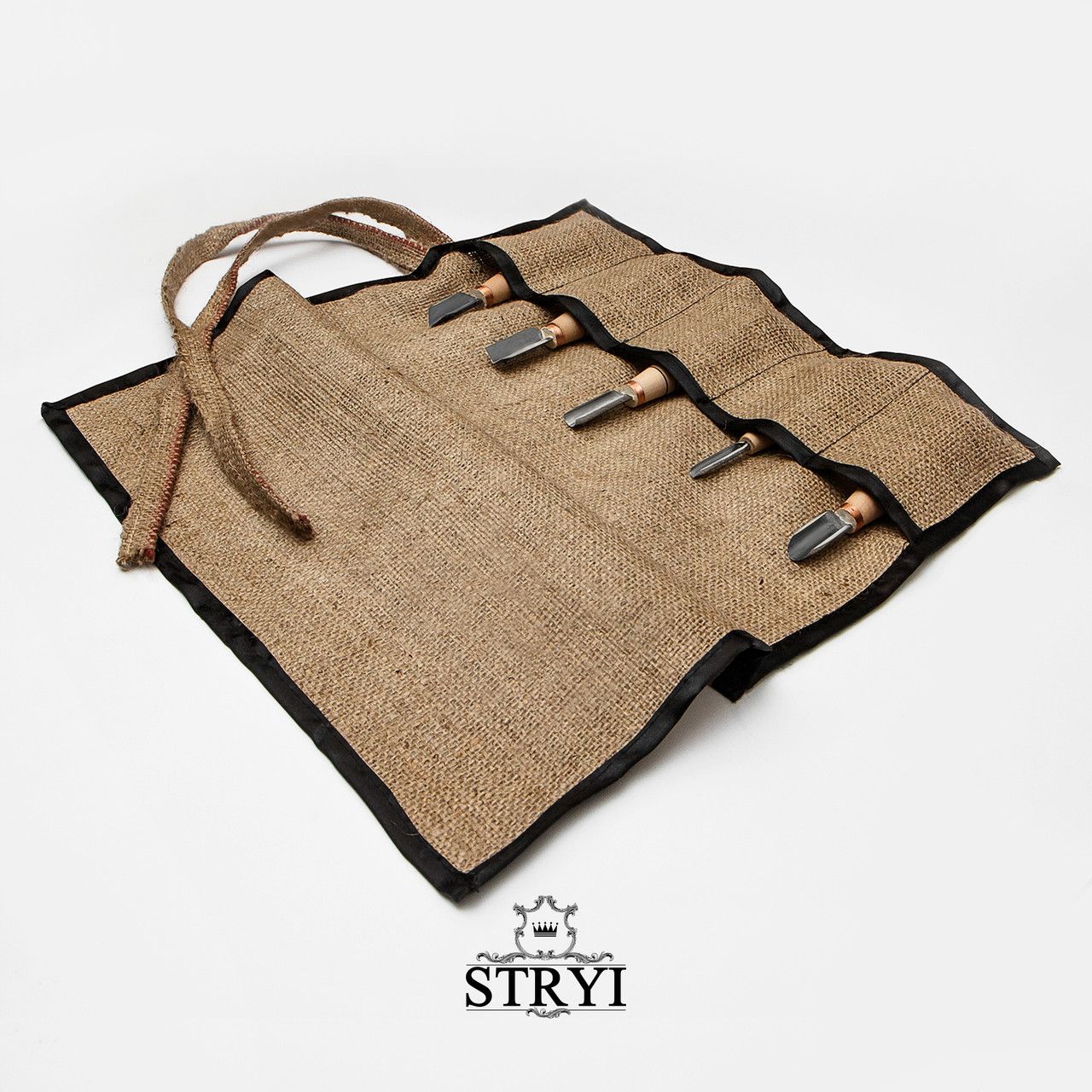Чехол для 5 стамесок STRYI (высота 26см), мешковина