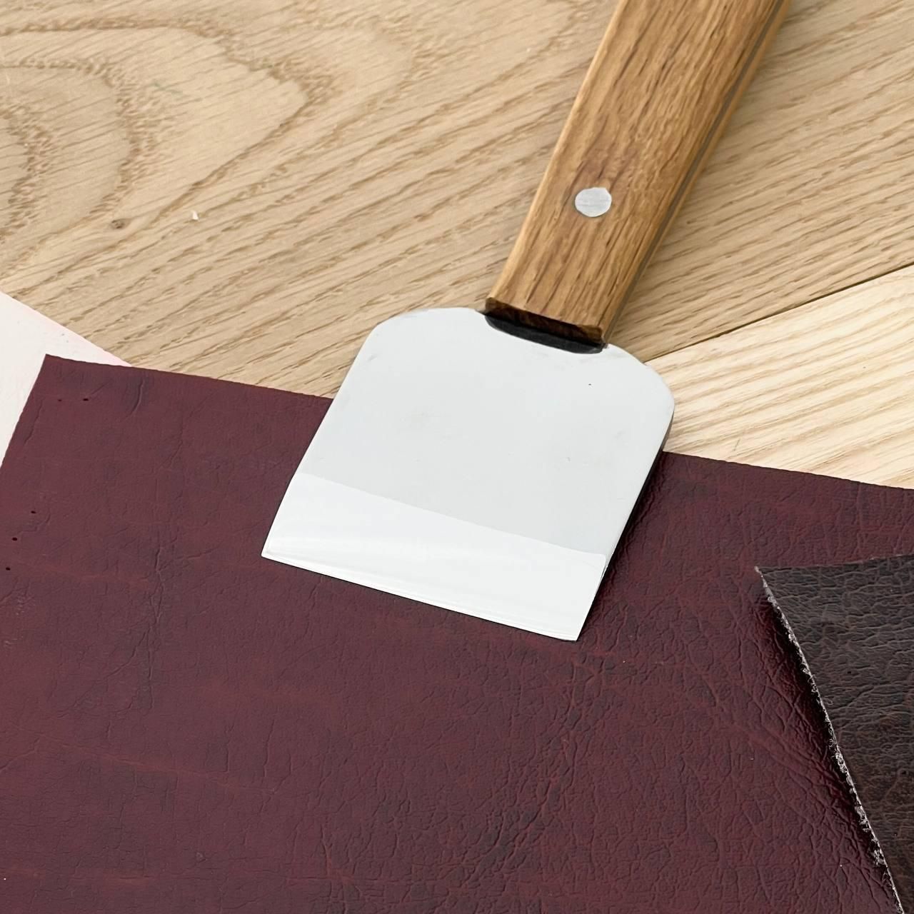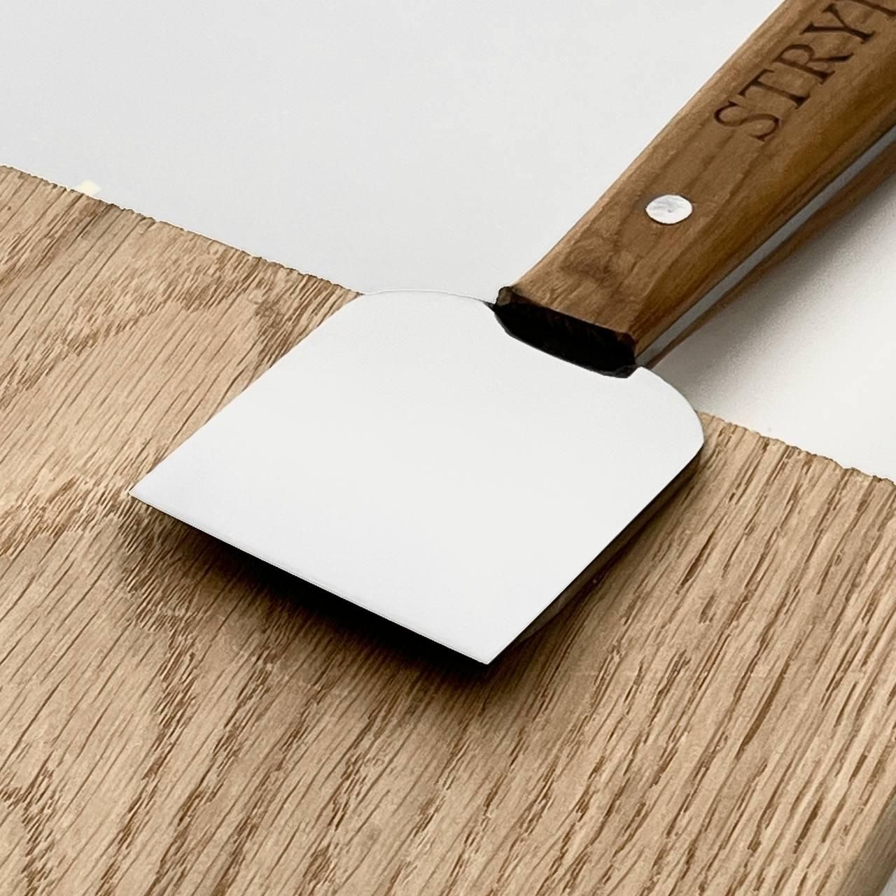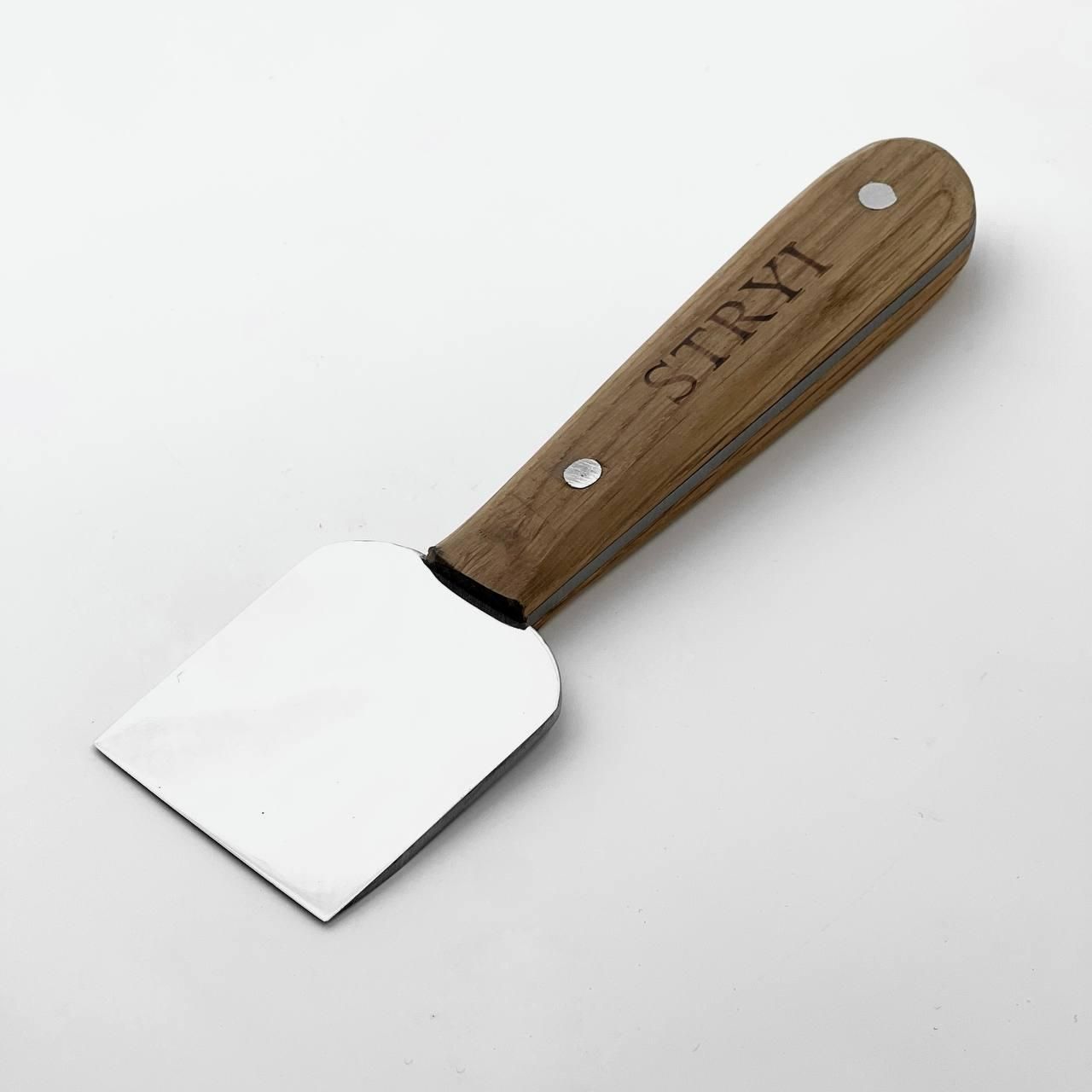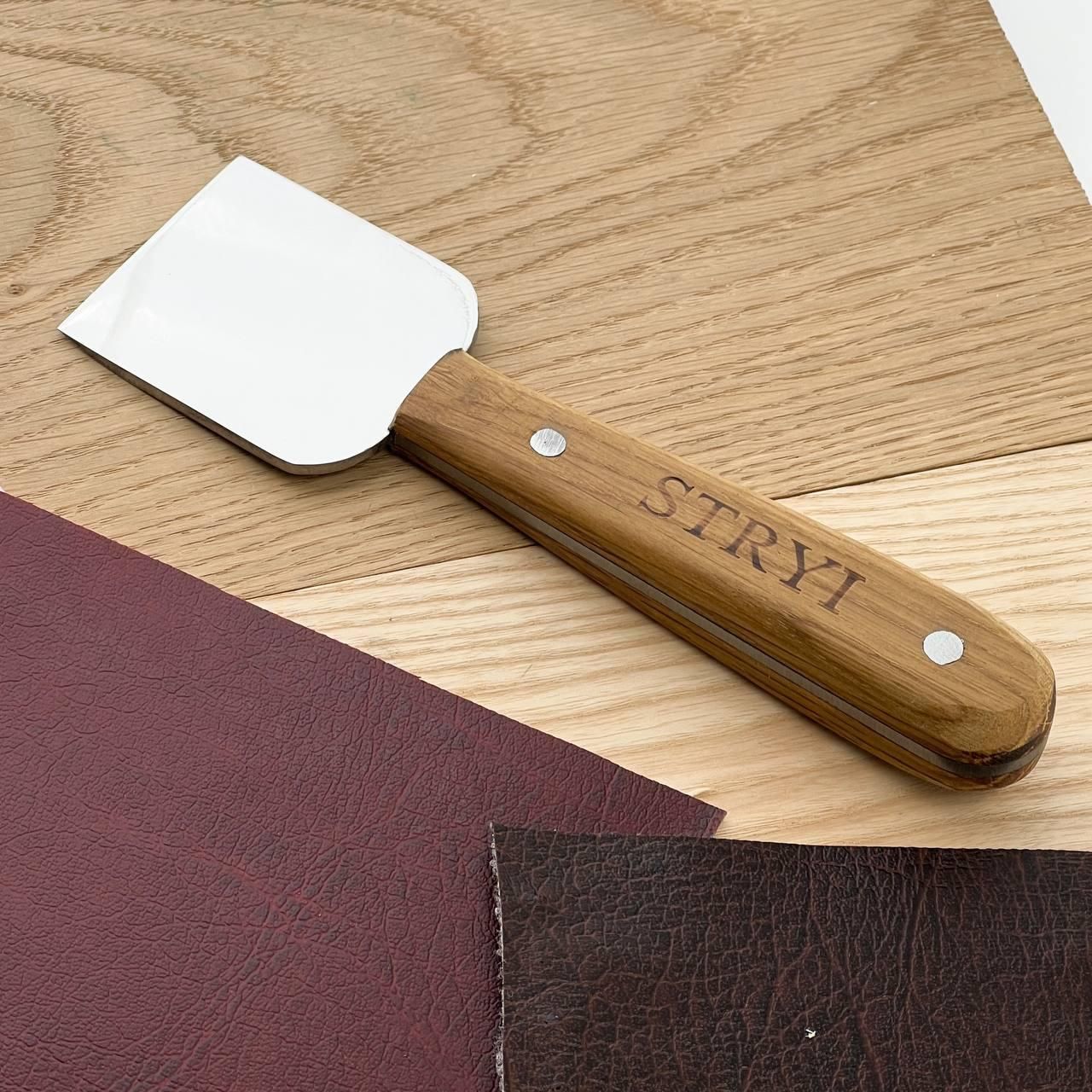 Нож для срезки кожи STRYI Profi 50мм, арт. 181012С Нож для кожи с широкой металлической частью. Этот нож идеально подходит для раскроя и шерфования кожи. Главное преимущество – острота лезвия, не требующая частой правки, а соответственно высококачественная сталь, из которой изготовлен нож. Вид инструмента – нож шерфяный. Назначение ножа – раскрой и шерфование кожи. Артикул - 181012С Металл - У8 Твердость металла – 58 – 62 HRC Толщина металла – 3 мм Длина лезвия – 6.5 см Ширина лезвия – 5 см Длина ручки – 13 см Общая длина инструмента – 18 см Наличие заточки фабричного инструмента Серия инструмента - Profi (полированная) Ручка – дуб Покрытие рукоятки – льняное масло Вес – 130 г Гарантийное обслуживание – весь период эксплуатации инструмента (минимальный период эксплуатации 20 лет). Контроль каждого процесса производства STRYI, а особенно правильная термообработка обеспечивает длительный срок службы инструмента без частой дополнительной перезаточки в процессе работы. Также обращаем Ваше внимание, что STRYI является единственным производителем, предоставляющим услугу бесплатного обслуживания инструмента на весь период его эксплуатации (реставрация инструмента, повторная заточка или переточка инструмента). Наличие профессиональной заточки при покупке инструмента позволяет сразу приступить к работе по любому виду кожи, а удобная форма рукоятки убережет руки от усталости в процессе длительного использования. Совершив покупку у нас, Вы получаете: Перед отправкой инструмент проверяется на заточку, закалку и жесткость металла, чтобы обеспечить длительное и комфортное использование инструмента STRYI Выбирая STRYI, Вы всегда можете рассчитывать на помощь и консультацию. Наши консультанты помогут Вам с выбором инструмента, а также всегда учтут Ваши пожелания и предложения! Смотрите другие виды ножей STRYI: Остались вопросы? Звоните нам. Наши менеджеры всегда на связи и готовы ответить на все ваши вопросы. Наши координаты: Адрес: Украина г. Стрый, ул. Заньковецкой, дом. 2, второй этаж