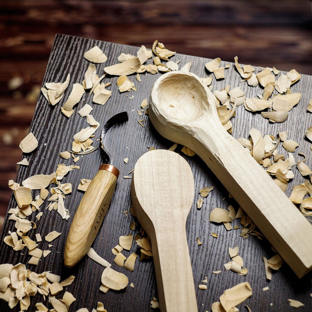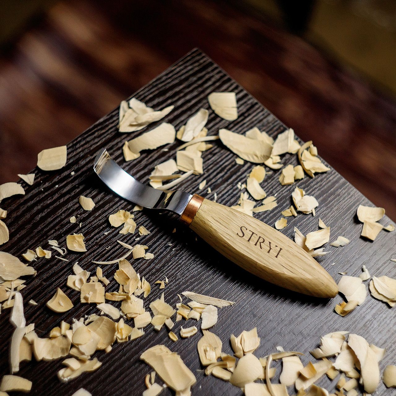 Набор для вырезания культи из дерева STRYI — 3 инструмента и заготовка из липы.