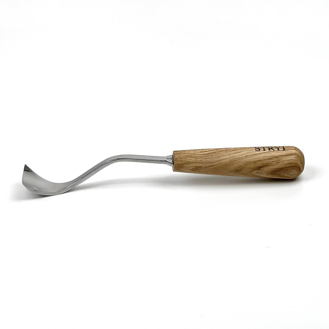 Кованая клюкарза-выборка STRYI Maestro №5 (50 мм) — профессиональный инструмент для массивных глубоких выборок в дереве Кованая клюкарза STRYI Maestro профиль №5 шириной 50 мм — это мощный профессиональный инструмент для работы с массивной древесиной, созданный для глубоких выборок, форм чаш, и больших объемных форм. Ширина 50 мм позволяет быстро снимать большой слой материала, сохраняя чистоту реза и стабильный контроль. Инструмент изготовлен из сертифицированной стали STRYI с жесткостью 60–62 HRC, что обеспечивает длительное удержание острой кромки даже под значительными нагрузками. Усиленная ковка делает клюкарзу выносливой и устойчивой к выкрашиванию во время ударной работы. Профиль №5 позволяет формировать плавный, но глубокий радиус – оптимальный для массивных чаш, глубоких углублений и средней по округлости выемки. Инструмент уверенно работает в любых породах древесины: от мягких до жестких, без ограничений. Рабочая часть имеет длину 170 мм и толщину 5 мм, что обеспечивает максимальную жесткость при больших усилиях. Отсутствие фаски вдоль полотна дает чистый, контролируемый рез без вибраций. Общая длина инструмента составляет 320 мм – оптимально для работы киевлянкой и ручного ведения. Дубовая рукоятка длиной 150 мм пропитана льняным маслом и оснащена усилительным металлическим кольцом, что предотвращает раскол во время ударов. Благодаря массивности и эргономичной форме рука не переутомляется даже при продолжительных выборках. Это инструмент, рассчитанный на десятилетия работы. STRYI предоставляет пожизненное бесплатное сервисное обслуживание: повторная заточка, формирование кромки, реставрация. Преимущества клюкарзы STRYI Maestro №5 (50 мм): Усиленная ковка для больших глубоких выборок. Ширина 50 мм – быстрое снятие большого количества материала. Сталь STRYI 60–62 HRC – длительная острота. Профиль №5 – оптимальный глубокий плавный радиус. Стабильная работа в любой древесине. Отсутствие фаски = чистый и контролируемый рез. Дубовая рукоятка с металлическим кольцом для работы киевлянкой. Общая длина 320 мм – комфорт и рычаг при выборке. Готова к работе с коробкой. Пожизненный сервис STRYI. Если вам нужен инструмент для массивных выборок, чаш, культей, посуды и глубокой рельефной работы – выбирайте STRYI Maestro №5 (50 мм). Заказывайте сейчас и почувствуйте разницу профессионального кованого инструмента премиум-класса. Остались вопросы? Звоните нам. Наши менеджеры всегда на связи и готовы ответить на все ваши вопросы. Наши координаты: Адрес: Украина г. Стрый, ул. Заньковецкой, дом. 2, второй этаж