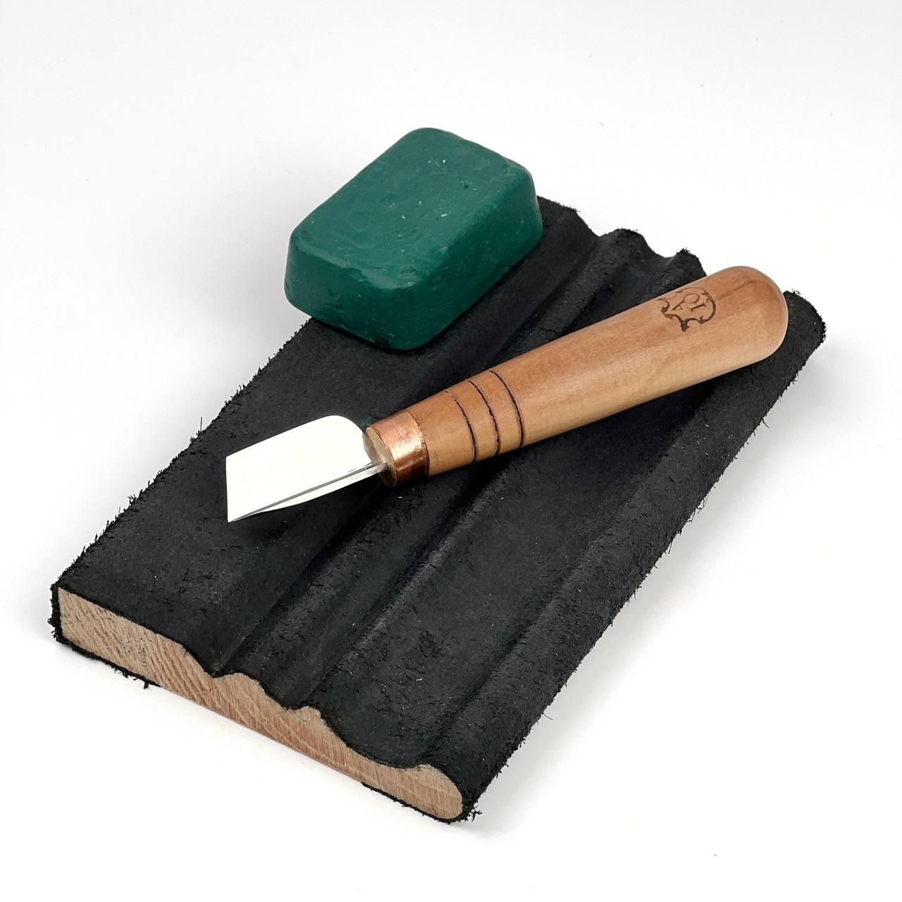 Набор для вырезания культи из дерева STRYI — 3 инструмента и заготовка из липы.