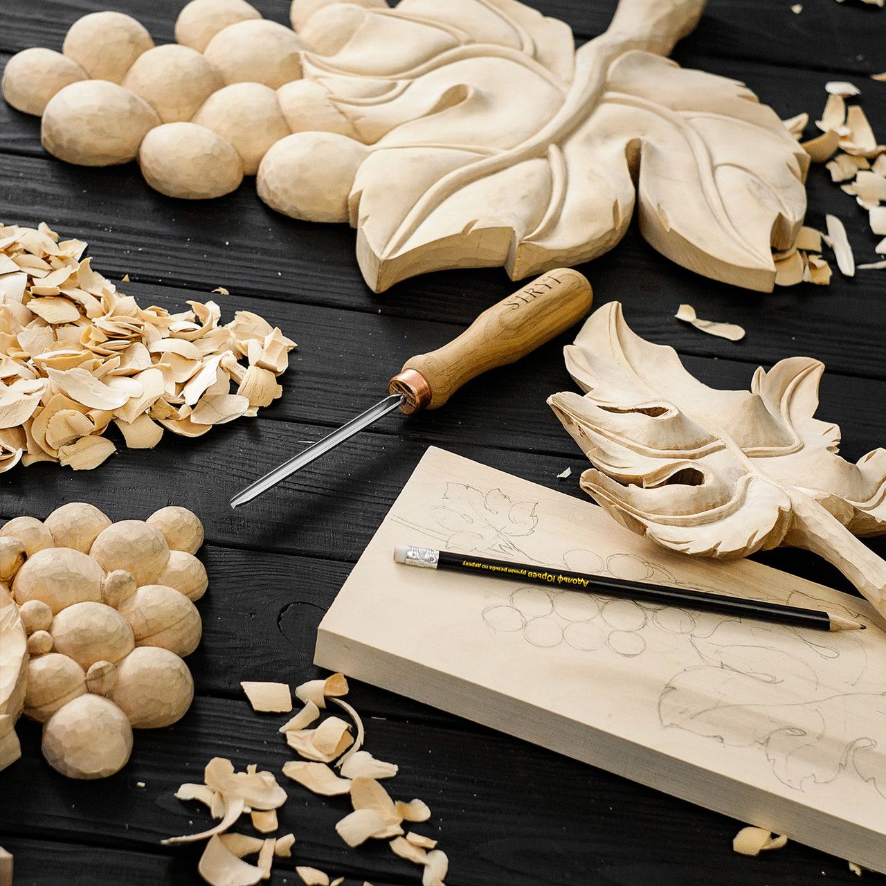 Набор для вырезания культи из дерева STRYI — 3 инструмента и заготовка из липы.