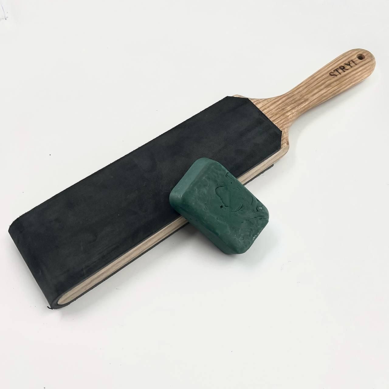 Брусок двусторонний STRYI с кожаным покрытием для правки и заточки, 360*70*25мм.
