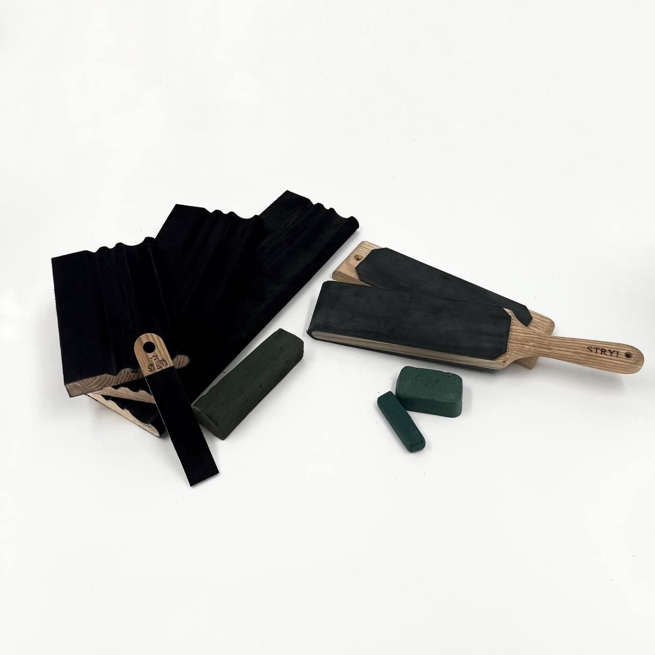 Комплект для заточки инструмента STRYI – профильный брусок 20см + паста ДОИ 25г