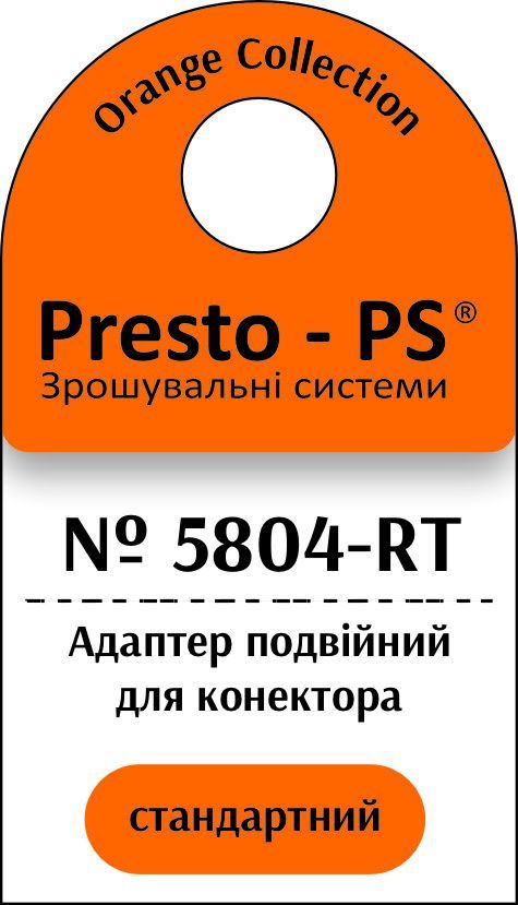 Прохідне з'єднання Presto-PS (5804-RT) застосовується в комбінації зі стандартними конекторами для швидкого з'єднання садових шлангів різних діаметрів і довжини між собою. Робочий тиск до 4 атмосфер. Виготовляється адаптер з якісного пластику, стійкого до механічних навантажень, дії розчинів добрив та ультрафіолетового випромінювання.