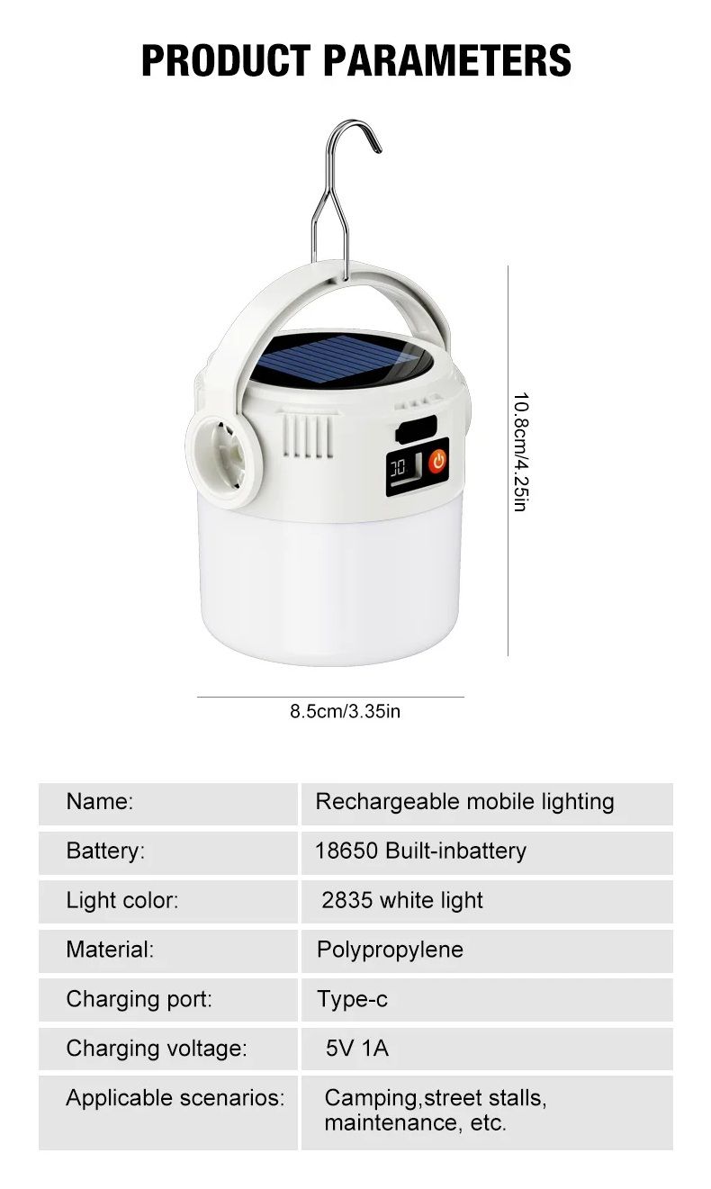 - Этот фонарь поддерживает зарядку от сети через разъём Type-C и от солнечной панели. Мультикристаллическая солнечная панель повышает эффективность преобразования света в энергию, позволяя подзаряжать устройство на открытом воздухе.