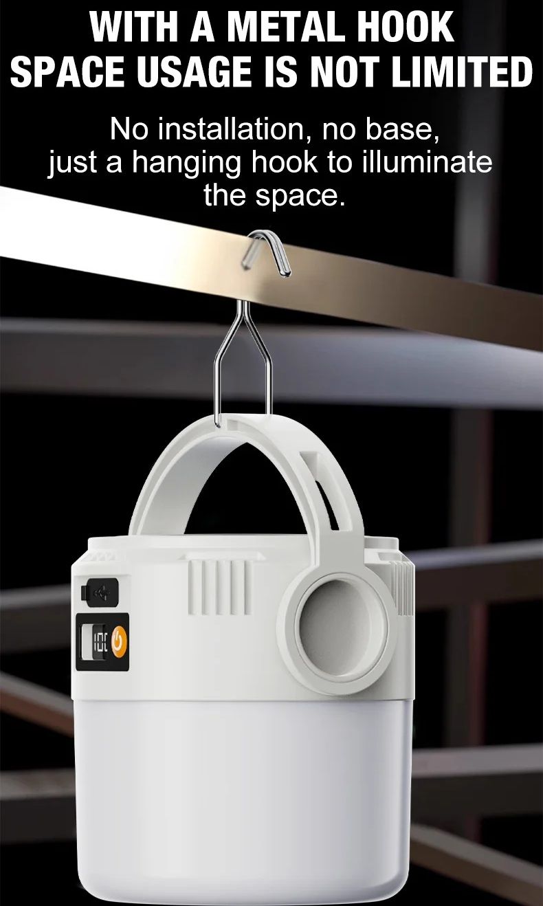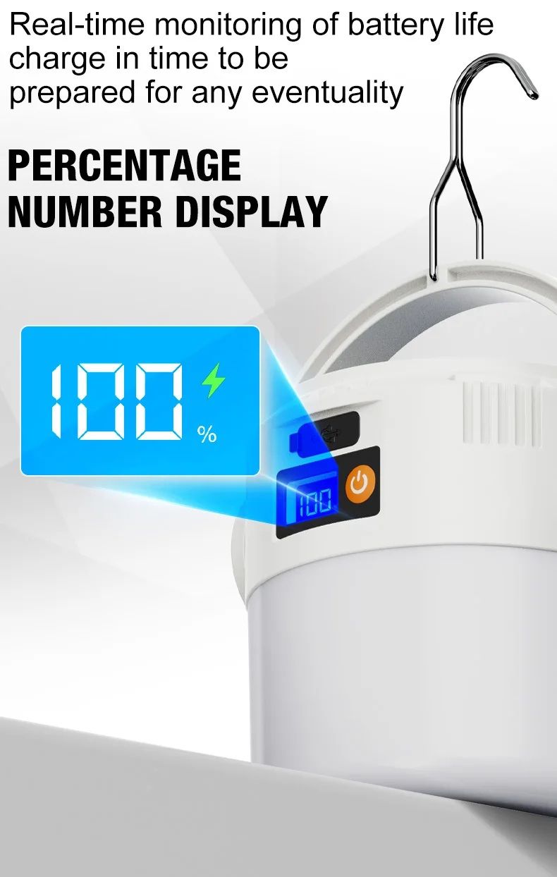 Компактный корпус, металлический подвесной крючок и цифровой индикатор заряда делают этот фонарь удобным для использования дома и на открытом воздухе.