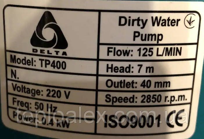 Насос дренажный погружной с поплавком Delta TP 400 Вт энергосберигающий 0,4 кВт
