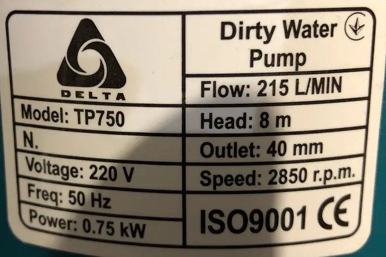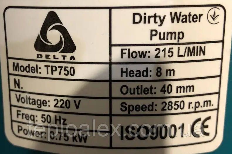 Насос дренажный погружной с поплавком Delta TP 750 Вт энергосберигающий 0,75 кВт
