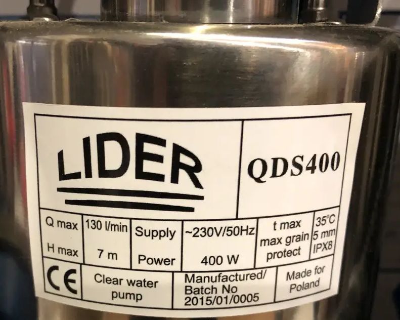 Насос дренажный Lider QDS 400 Вт из нержавейки с медной обмоткой двигателя 0,4 кВт