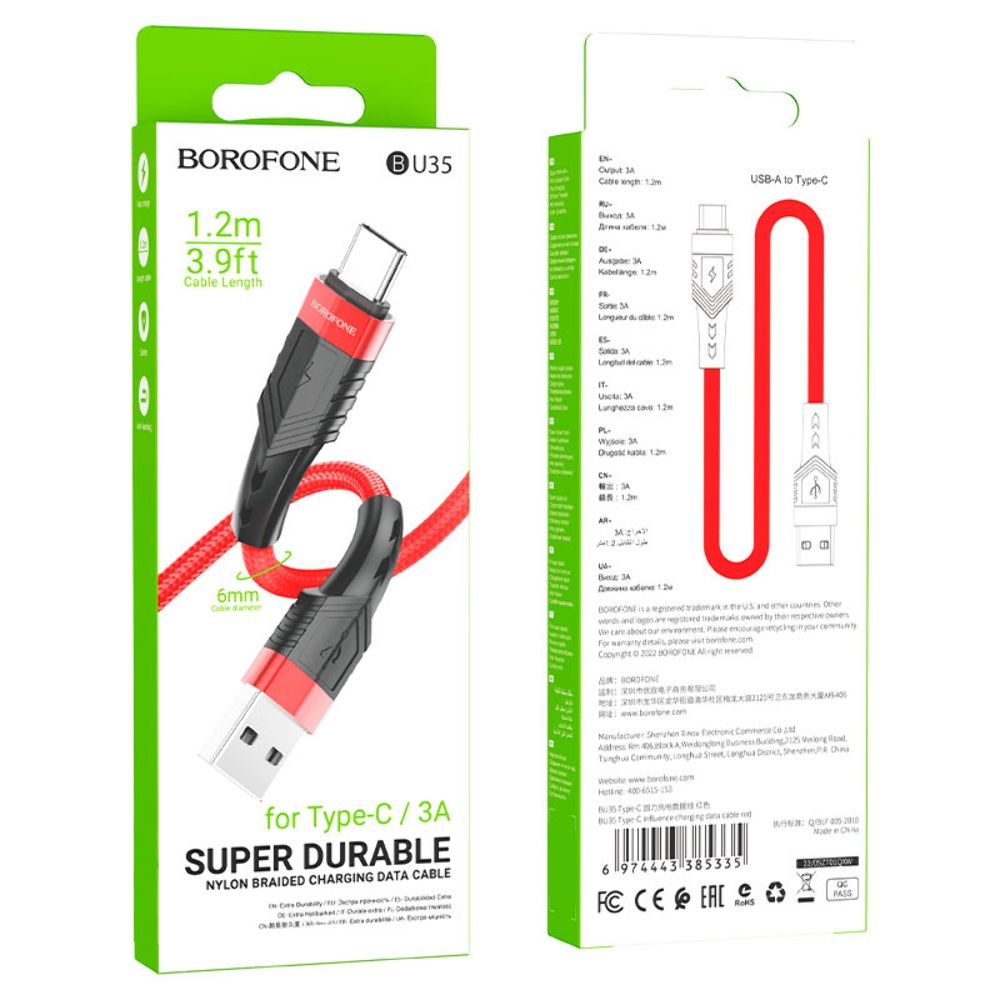 Кабель Borofone BU35 USB to Type-C — это прочный и надёжный аксессуар для зарядки и синхронизации устройств с разъёмом Type-C. Модель отличается утолщённой конструкцией, тканевой оплёткой и поддержкой силы тока до 3A, что обеспечивает стабильную работу и увеличенный срок службы даже при интенсивном использовании.