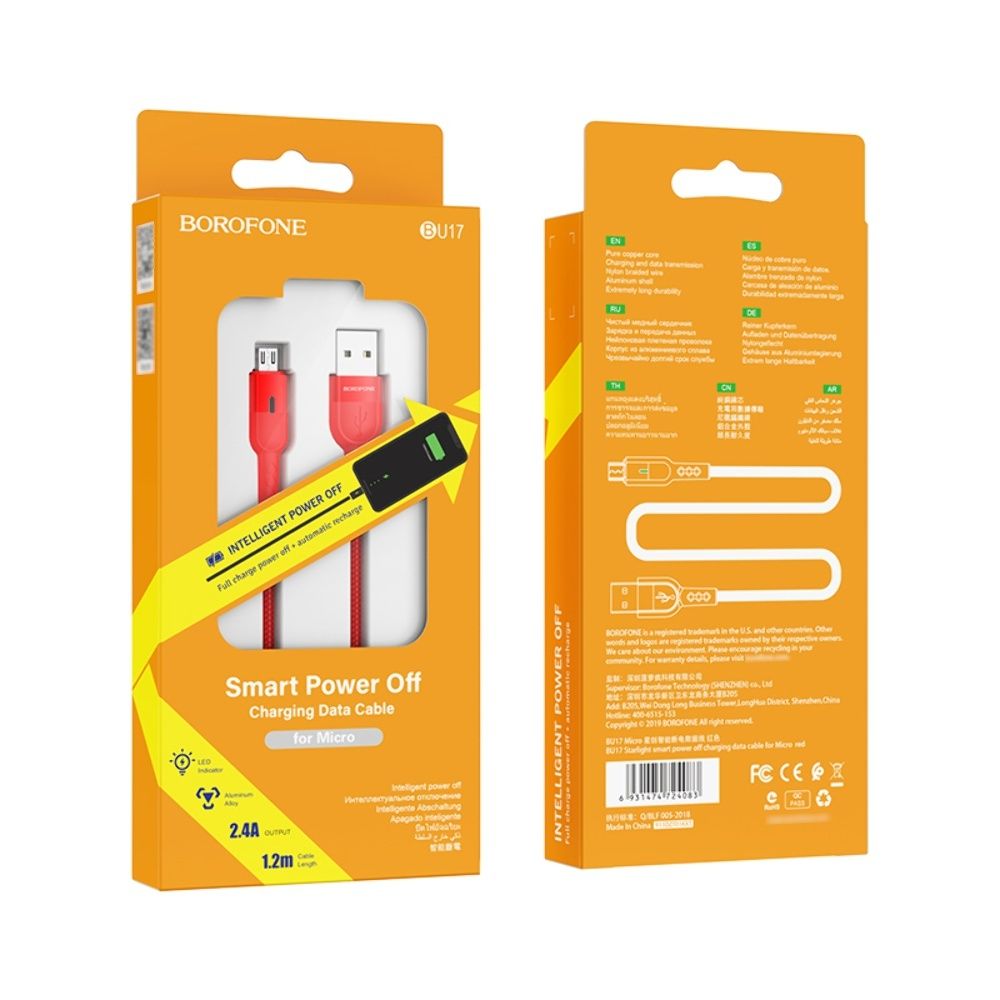 Кабель Borofone BU17 с индикатором USB to MicroUSB 1.2m красный