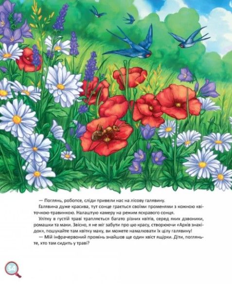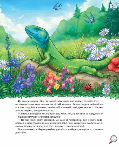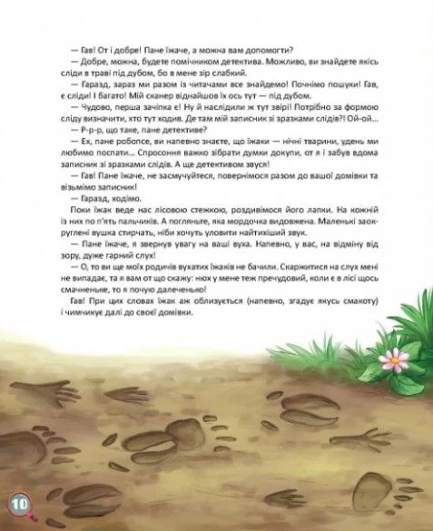 Детективная история для детей 3-6 лет Ян еще в детском саду, поэтому не может сам ходить повсюду, где ему интересно. Но у него есть робопс, способный отправиться куда угодно вместо хозяина. На этот раз — в гущу леса. А там переполох: у ящерицы исчез хвост! Что произошло? За дело берется детектив еж, и робопес становится его помощником. Давайте расследовать это дело вместе с героями! За записной книжкой детектива определим, кто из животных оставил следы. Также придется сочинить фоторобот, перерисовав детали по описаниям свидетелей. А чтобы найти пропавший хвост, нужно разобраться, кому принадлежащий! Что-то слишком много тайн! Распутывая «хвостатую» историю, случившуюся солнечного летнего дня в лесу где-то на Подолье, дети узнают об виде и характерных особенностях животных, птиц и растений. Книга содержит дополненную реальность — видео, «фильмированное» робопесом, поэтому маленькие читатели могут наглядно увидеть жителей леса в природной среде.