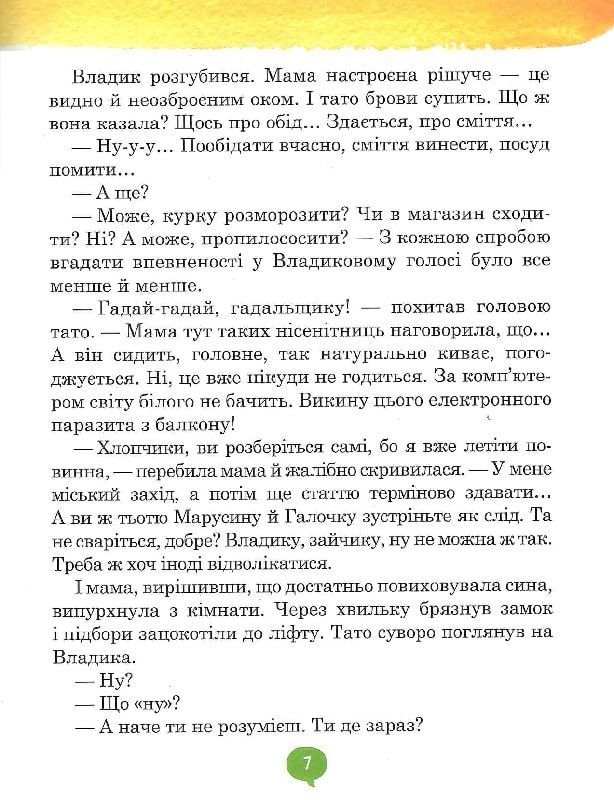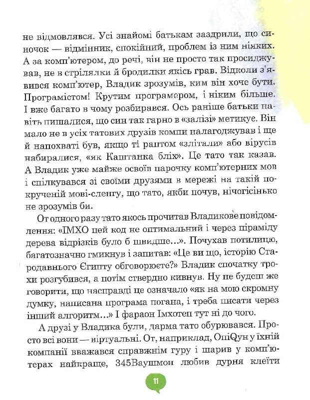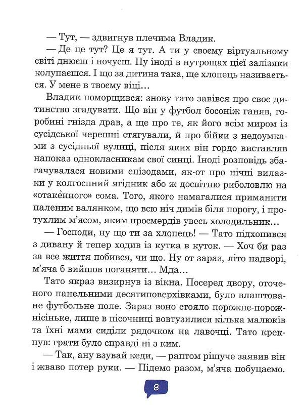 Оказывается, чтобы найти себя в этом зеленом, солнечном, шумном мире, полном приключений и неожиданностей, стоит лишь нажать кнопку «Выключить компьютер» и сделать шаг навстречу лету. Владык вырос в городе типичным «компьютерным червем», которому даже неделю в селе без компьютера и Интернета кажется настоящей каторгой, прихотью взрослых, которую придется как-то претерпеть… Но уже через несколько дней он вместе с компанией новых друзей будет стоить на тайных тренировках, покушаться школьный компьютерный класс и будет придумывать кучу причин, чтобы остаться в селе до конца каникул и осуществить тайный план «Сто шагов».