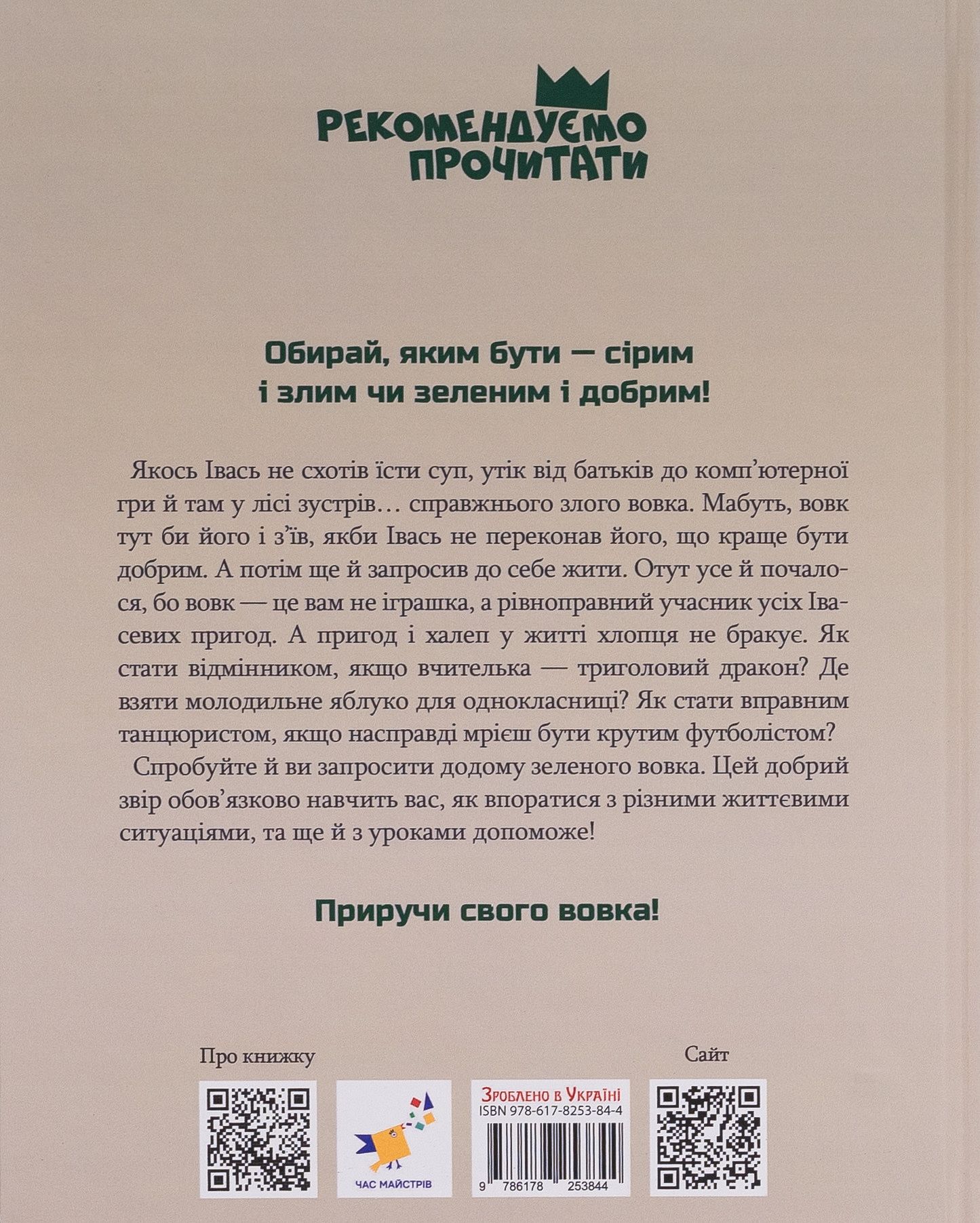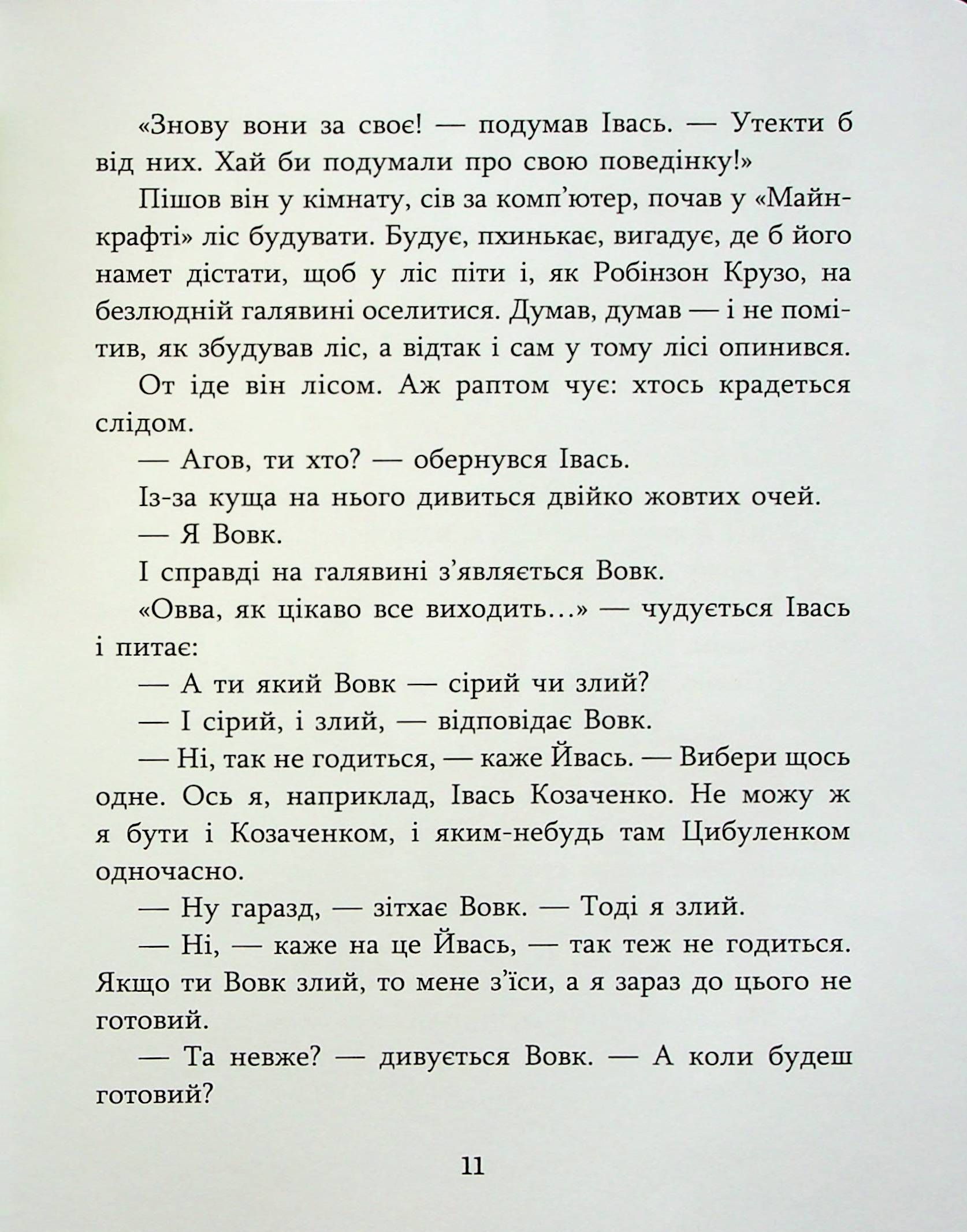 Однажды Ивась не захотел есть суп, убежал от родителей в компьютерную игру и там в лесу встретил... настоящего злого волка. Видимо, волк бы здесь его и съел, если бы сообразительный Ивась не убедил его, что лучше быть добрым. А потом еще пригласил к себе жить. Вот тут-то и начались настоящие сказочные приключения! А еще куча неприятностей. Как Ивасю стать отличником, если его учительница – трехглавый дракон? Где взять молодильное яблоко для одноклассницы? Как дальше жить, если учиться танцевать, хотя на самом деле мечтаешь играть в футбол? Как получить игрушку, если даже завыть из тоски нельзя, и что такое пожертвования? заразна ли болезнь эта «зеленуха»? Почему же Ивасю никто не верит, что у него есть домашний волк, и не помешает ли это дружбе с девочкой, которая ему нравится?