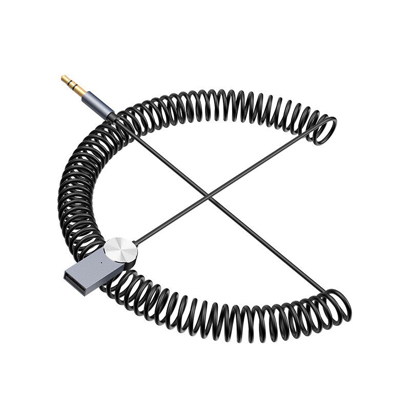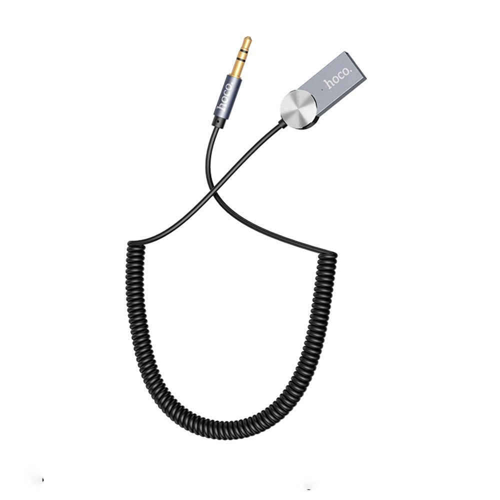AUX кабель Hoco DUP02 Bluetooth to Jack 3.5 пружинный автомобильного аудиоресивера черный