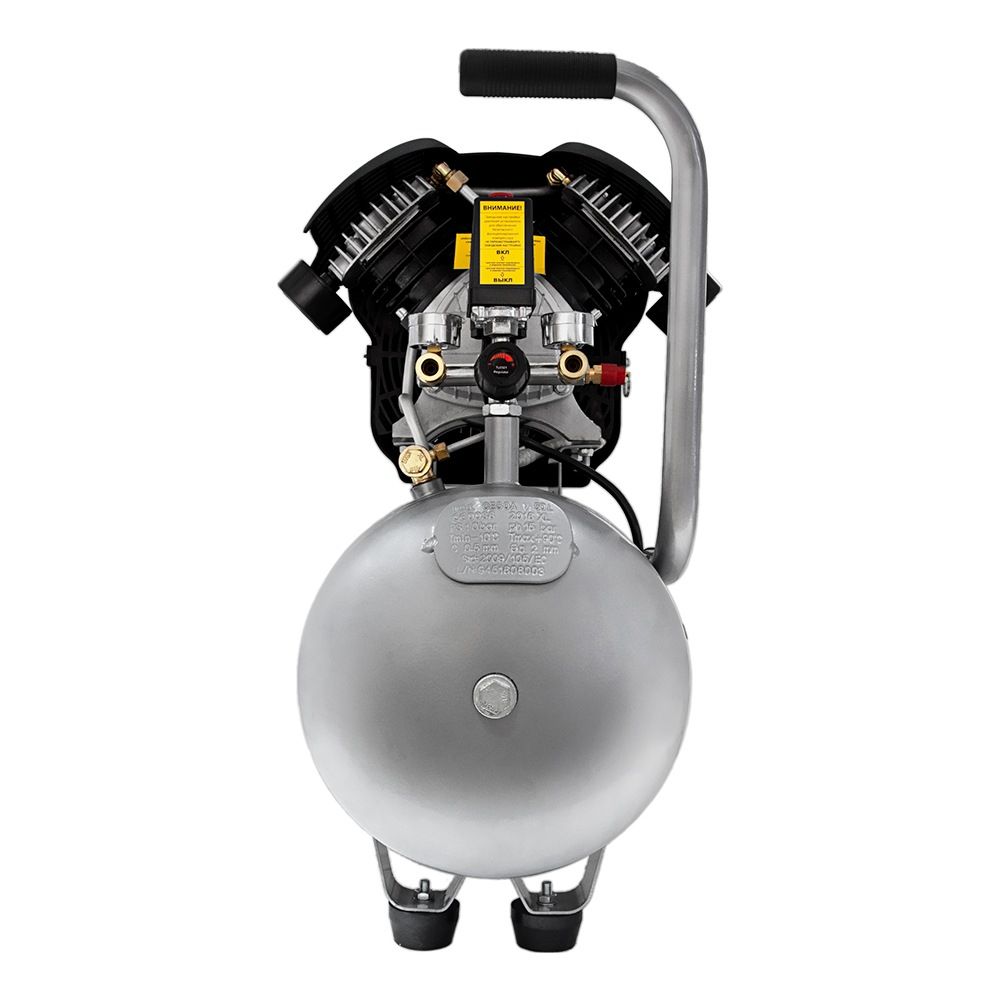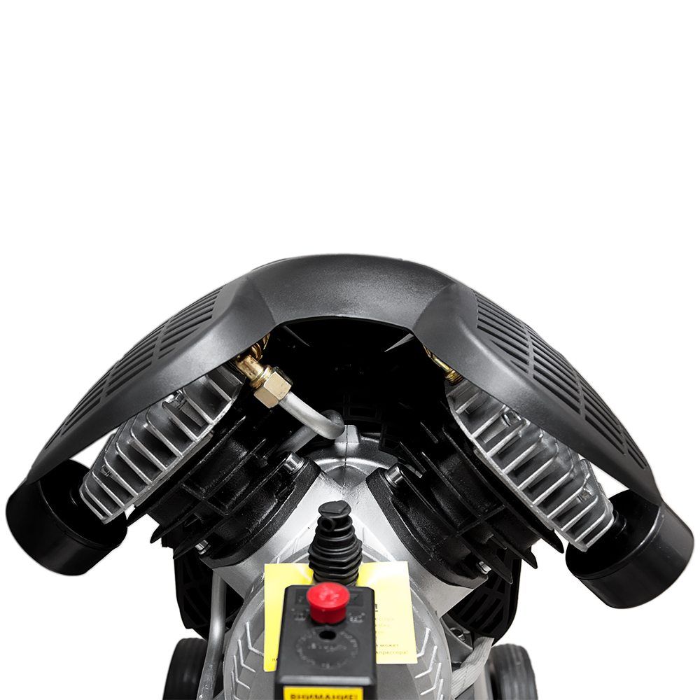 Двигатель компрессора закрыт специальным кожухом, который предотвращает его повреждение и загрязнение. Опорная ножка обеспечивает устойчивое положение на поверхности, а резиновая подушечка снижает уровень вибрации.