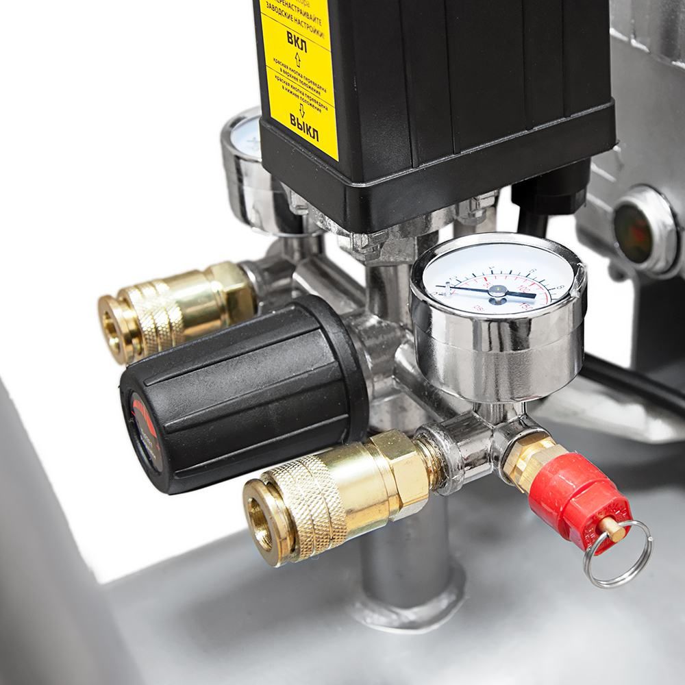 - Два манометра позволяют контролировать давление внутри ресивера и давление на выходе